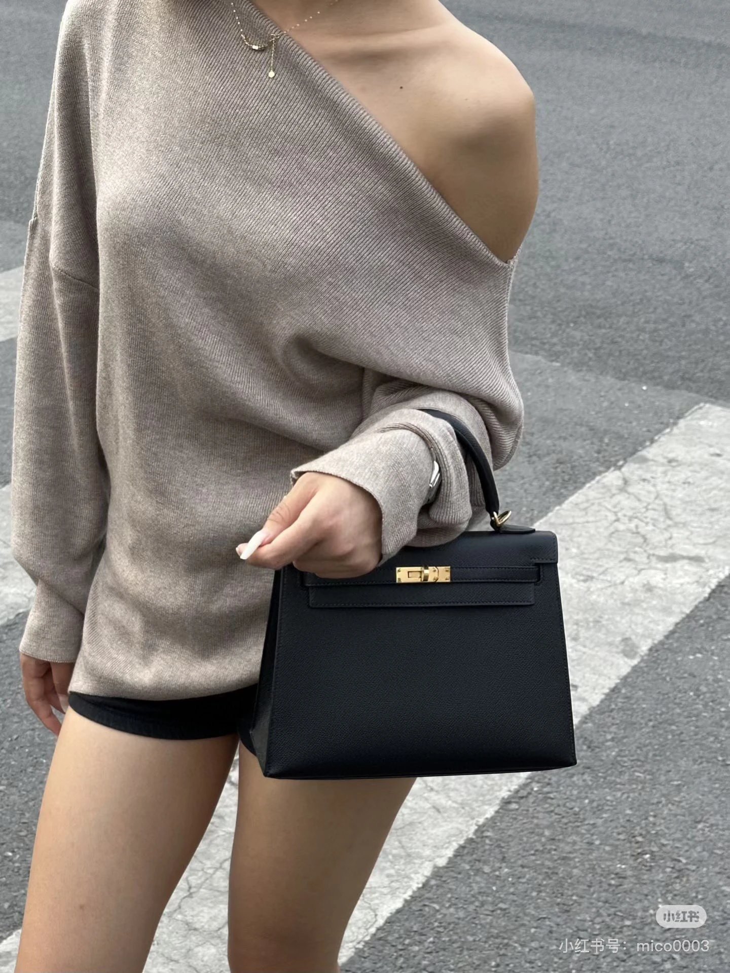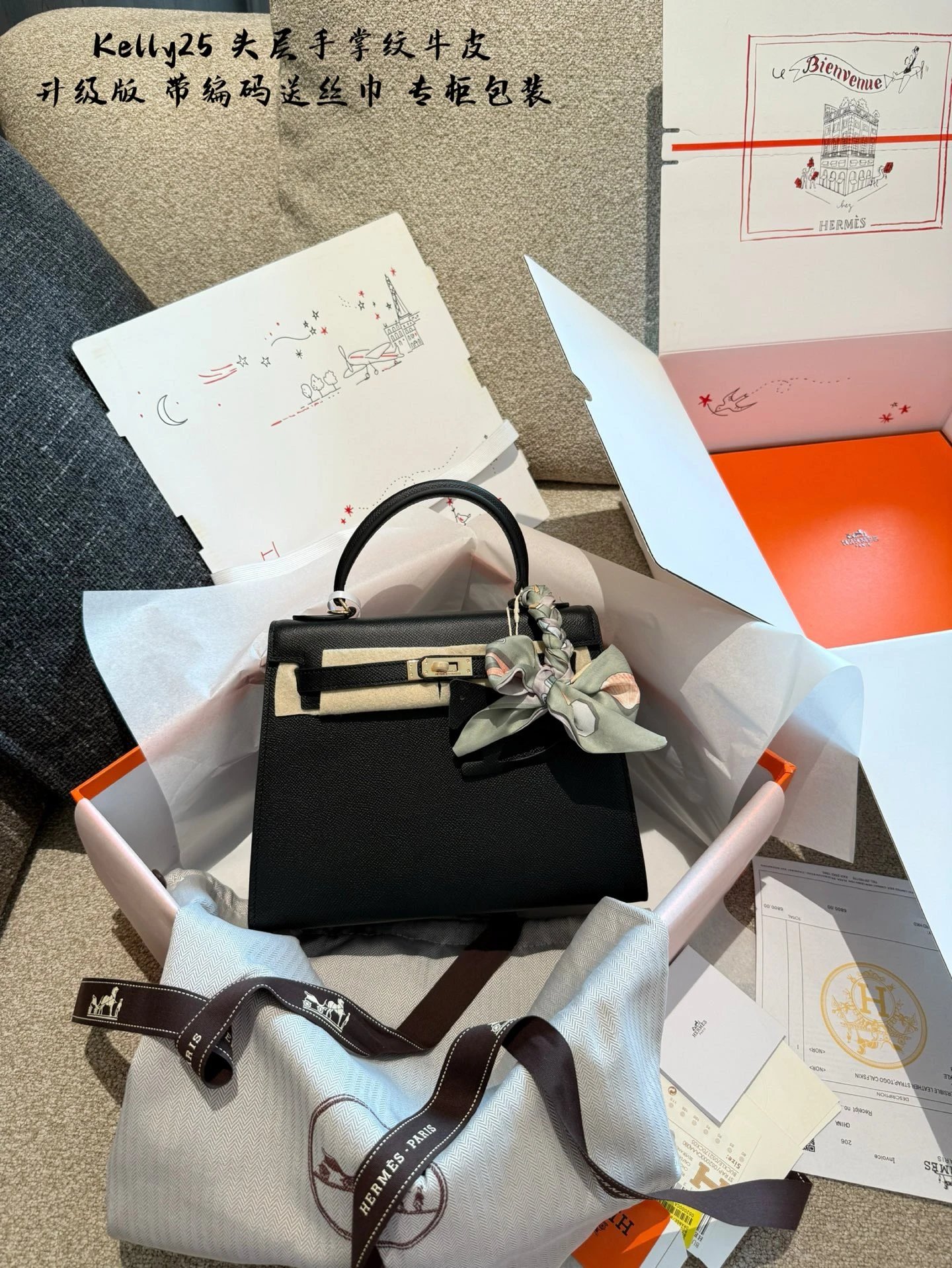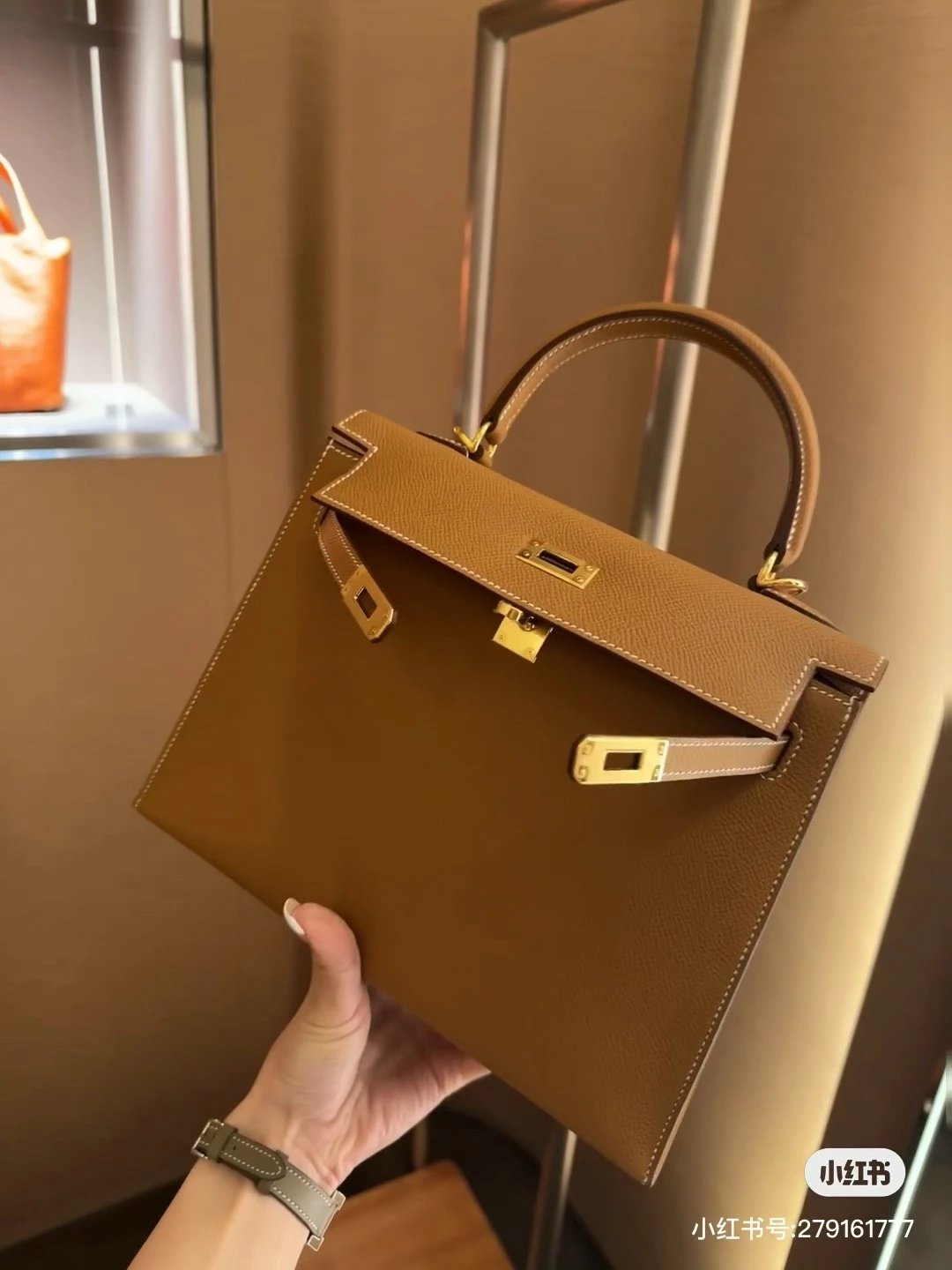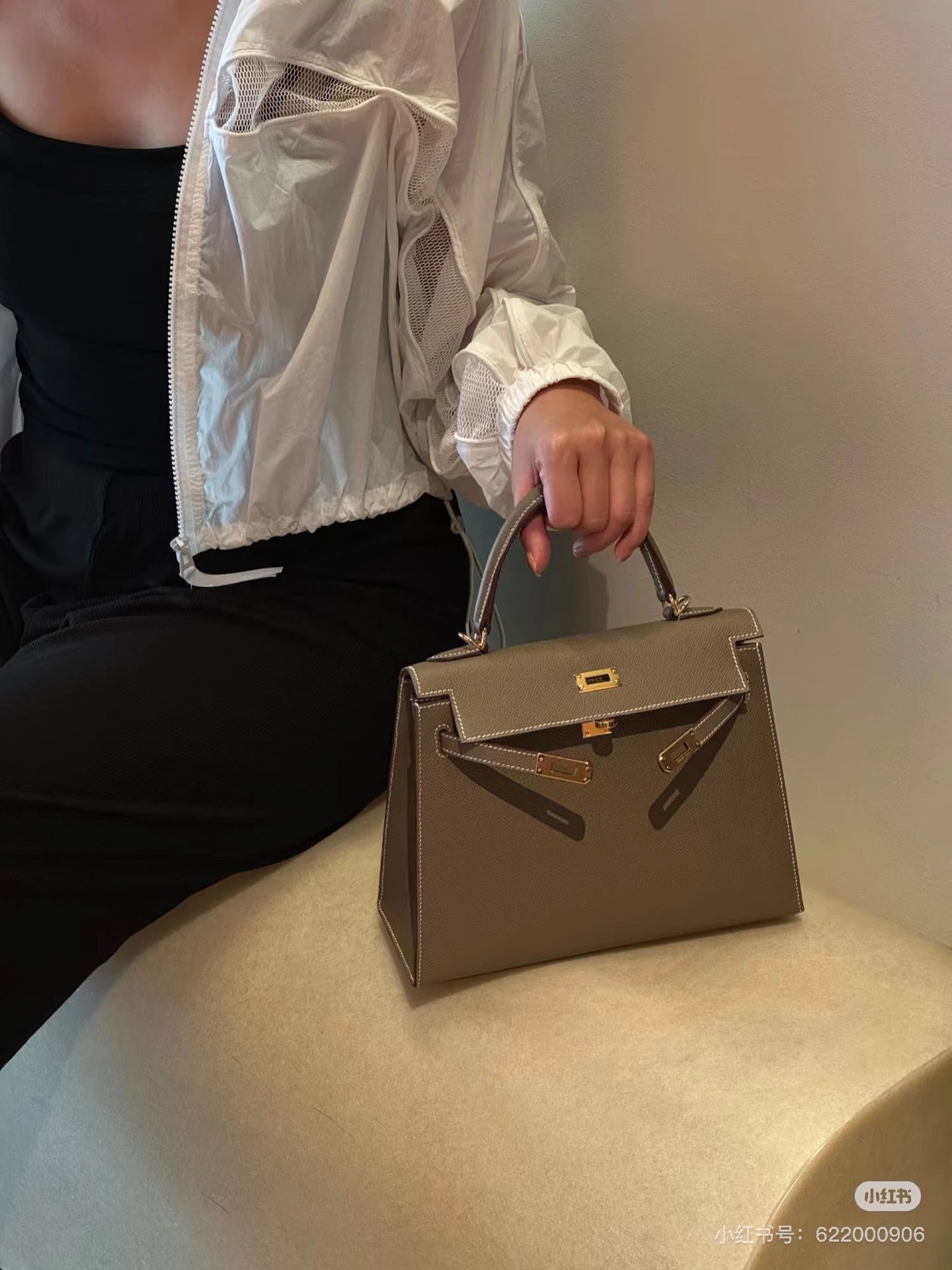Kelly bag H family crossbody bag Kelly 25** pure leather hand bag pure leather shoulder bag details perfect real shot goddess bag **original order hardware exquisite gift original hardware logo