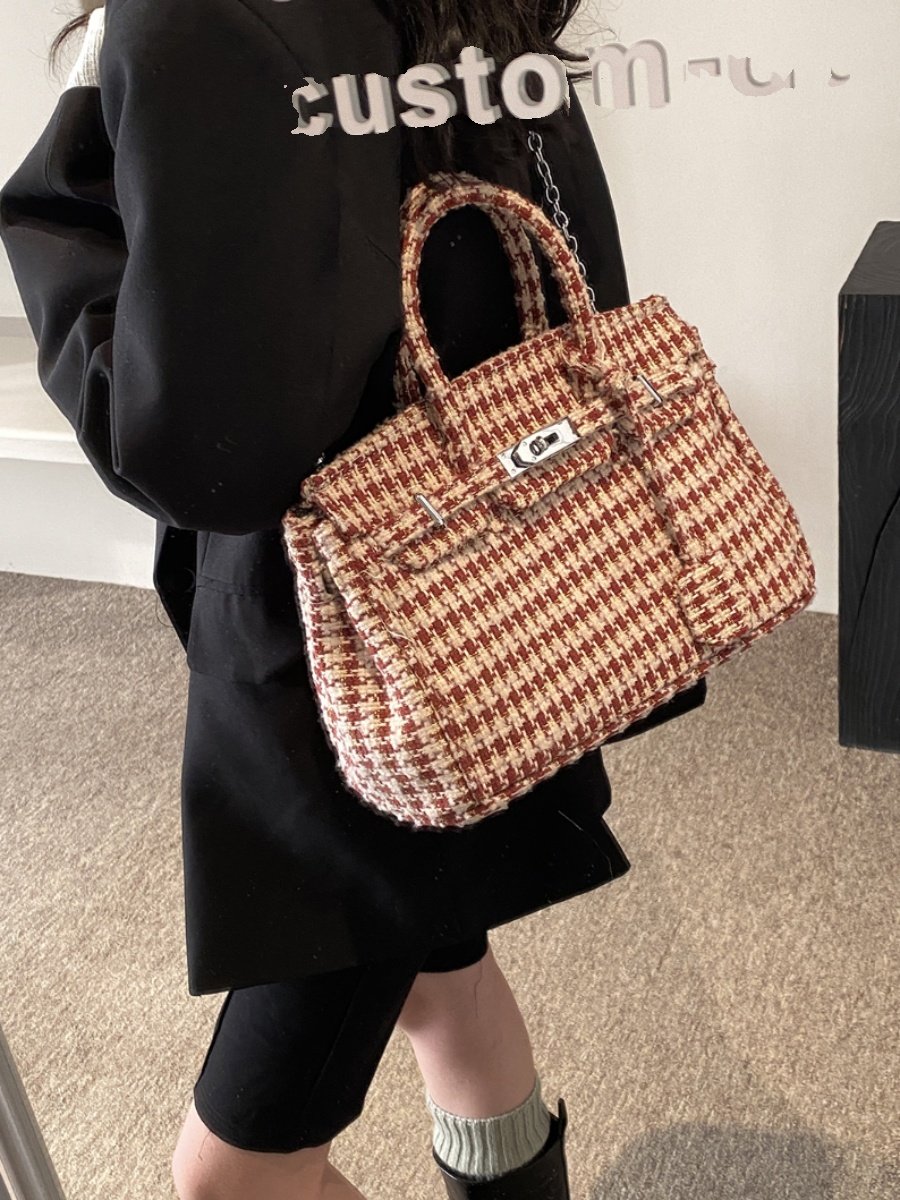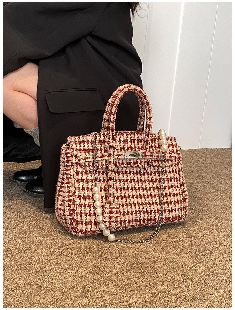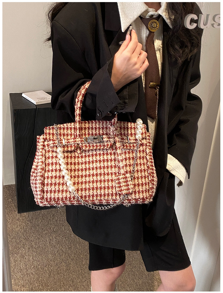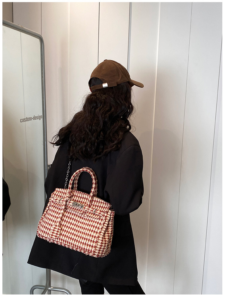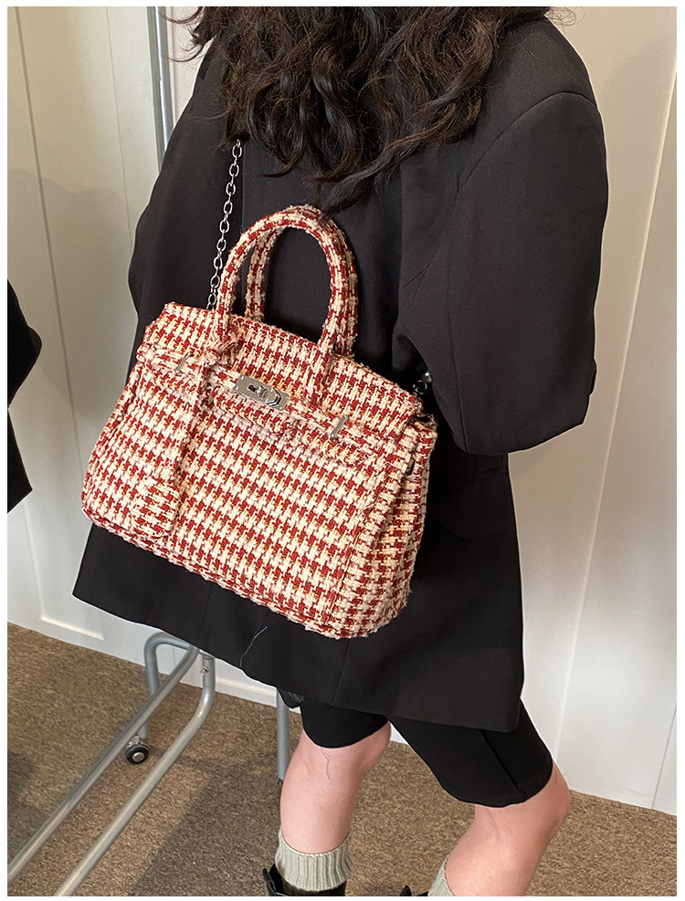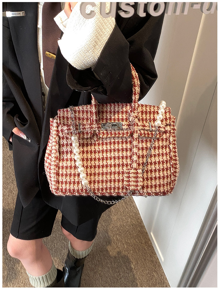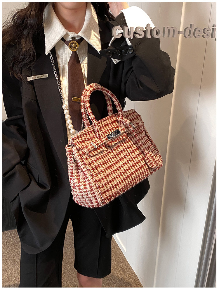 Korean ins retro hand-held platinum bag women's 2024 winter new plaid tote bag premium one-shoulder crossbody bag