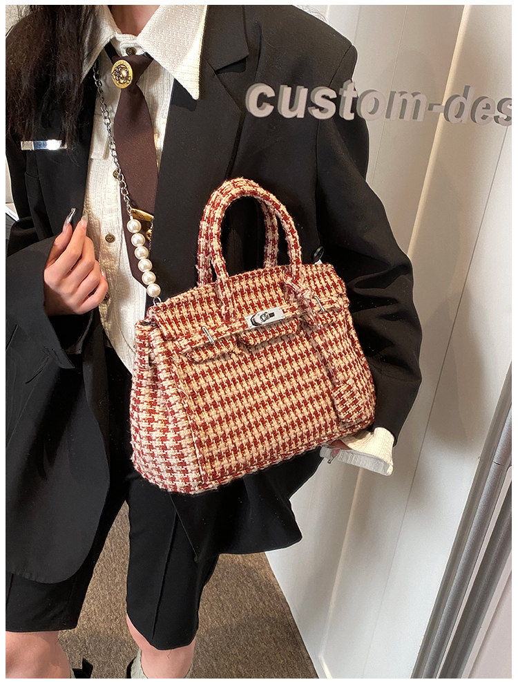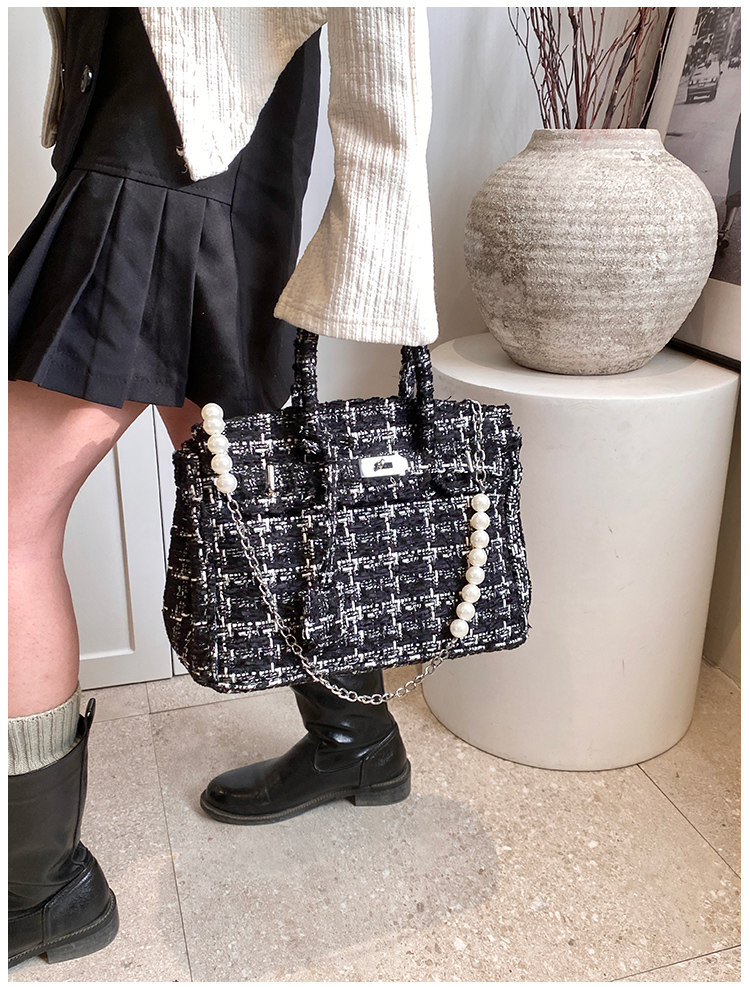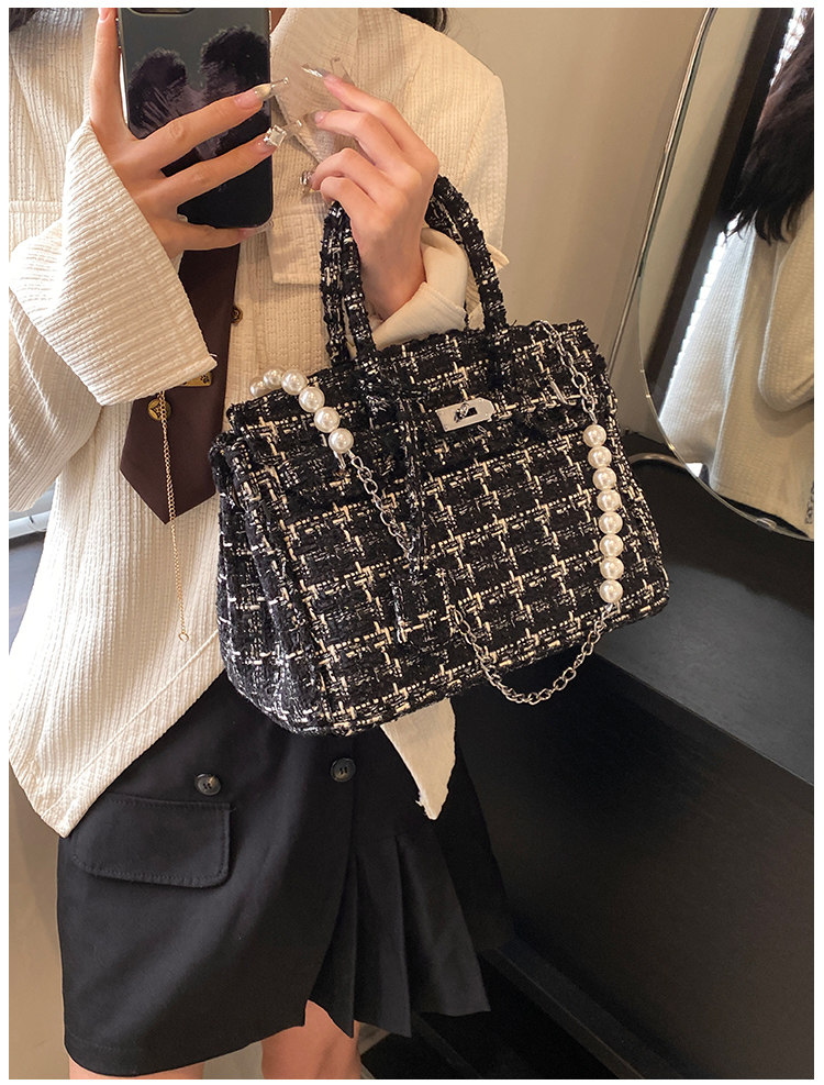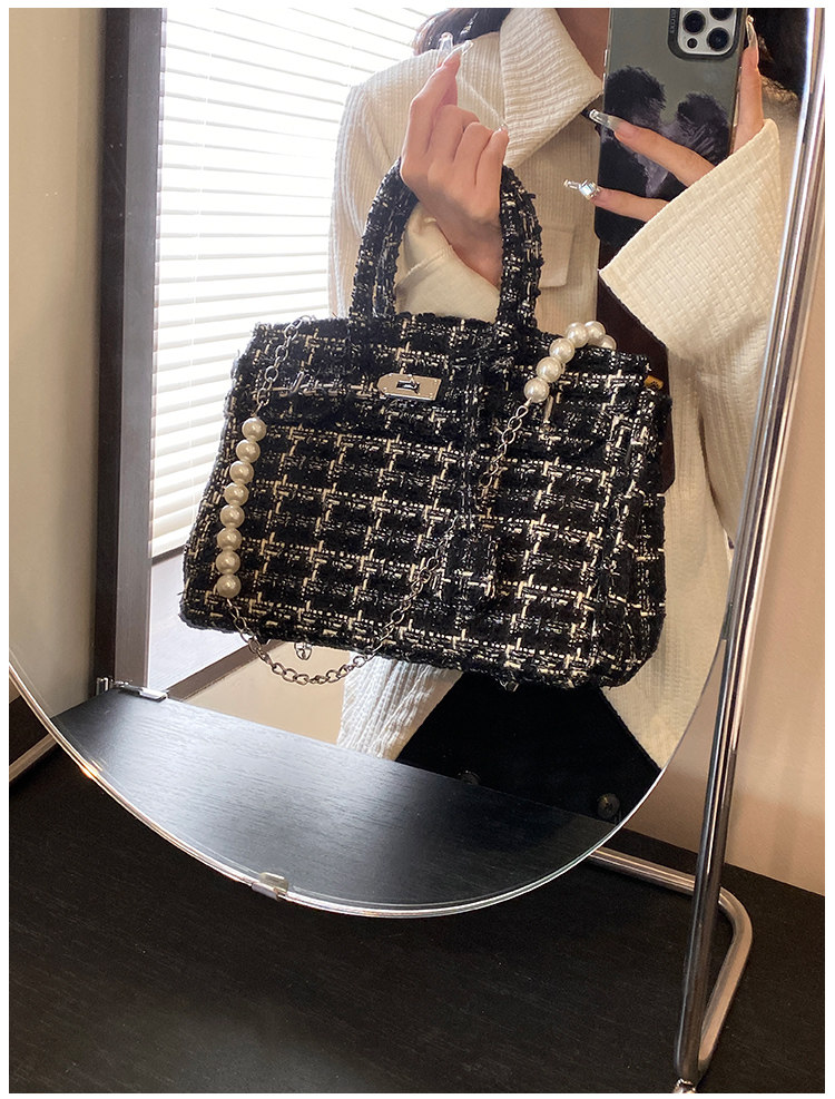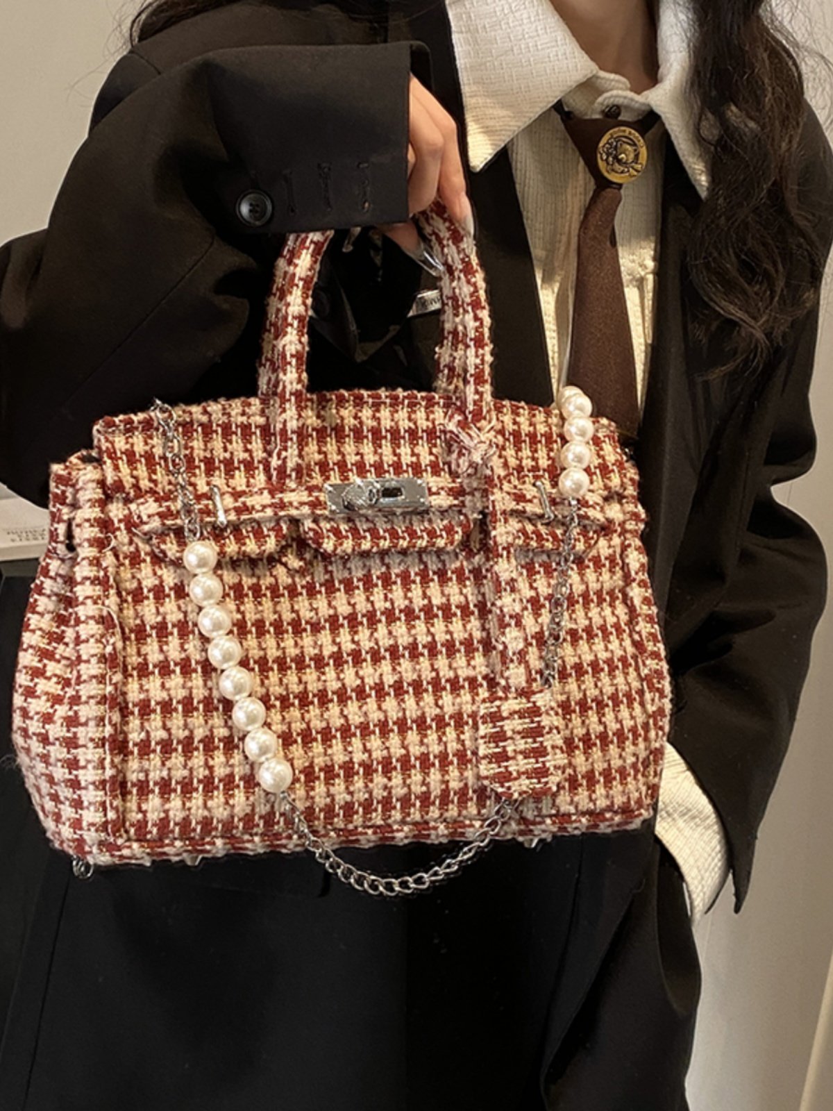 Korean ins retro hand-held platinum bag women's 2024 winter new plaid tote bag premium one-shoulder crossbody bag