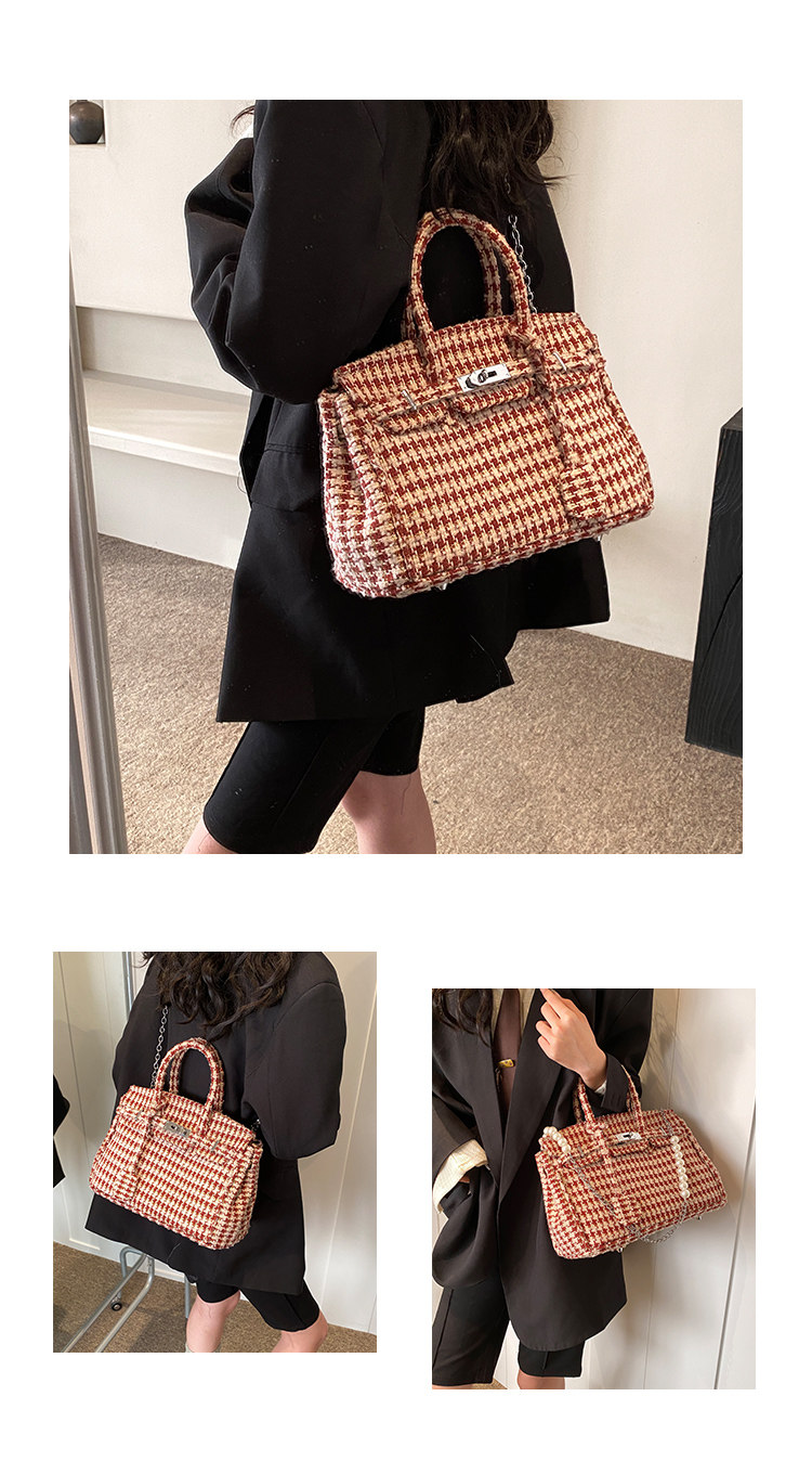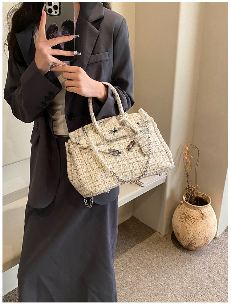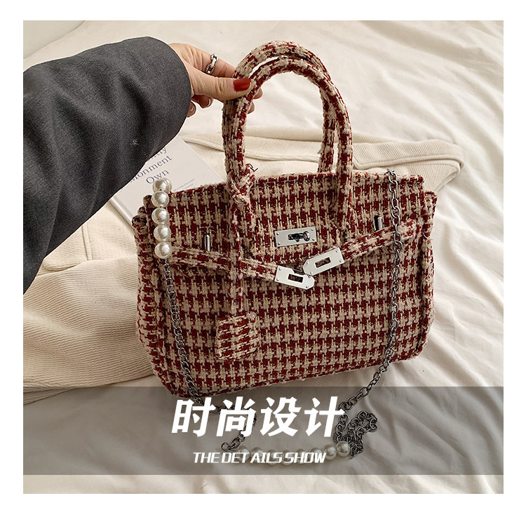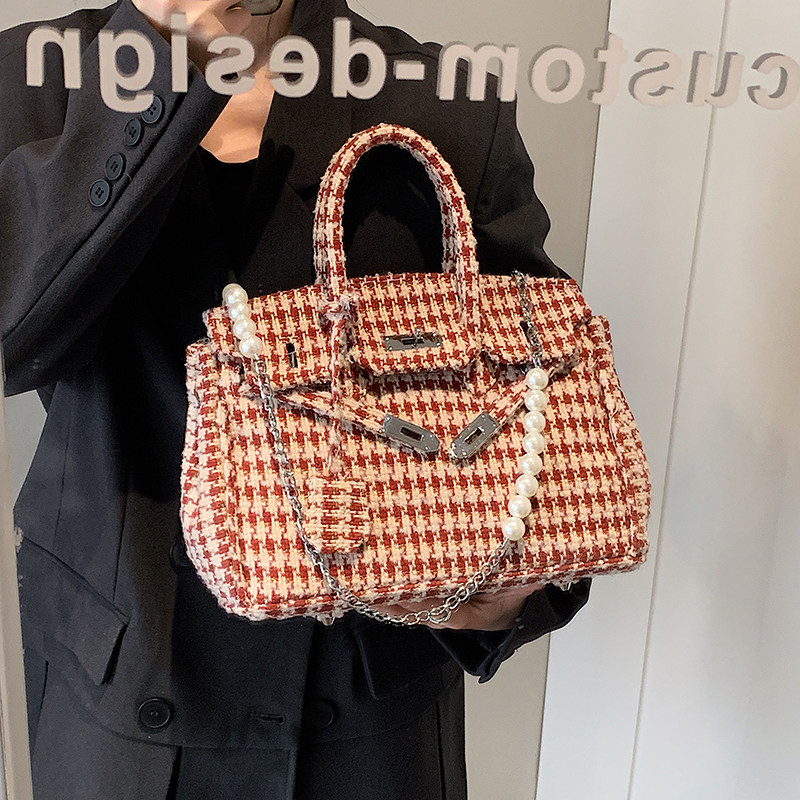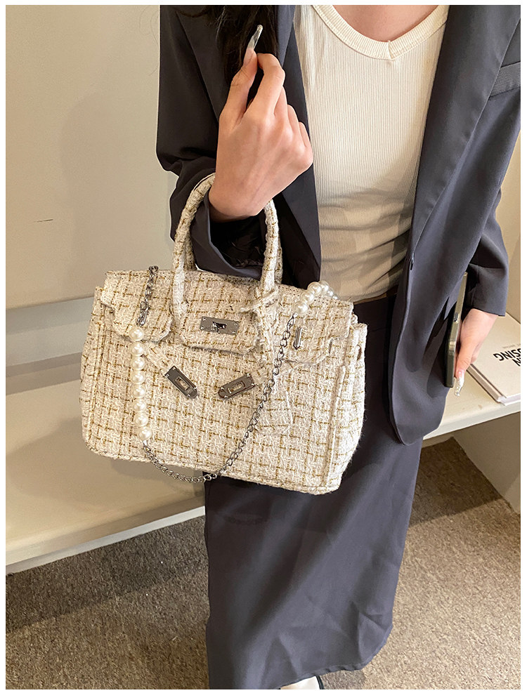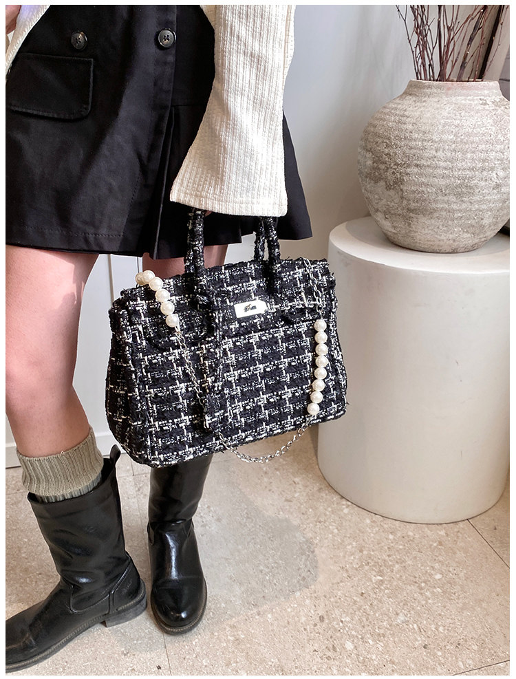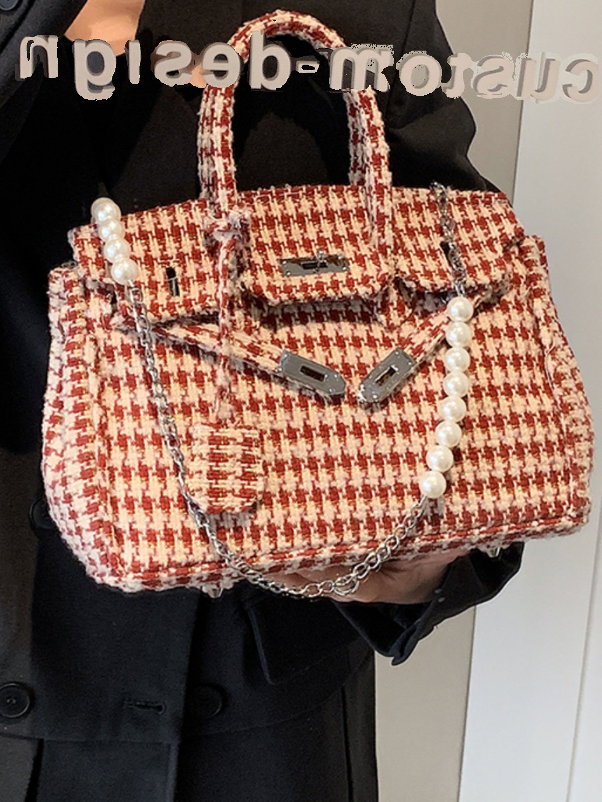 Korean ins retro hand-held platinum bag women's 2024 winter new plaid tote bag premium one-shoulder crossbody bag
