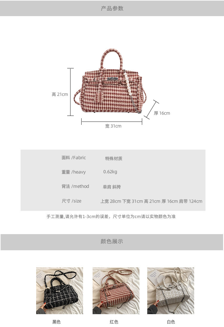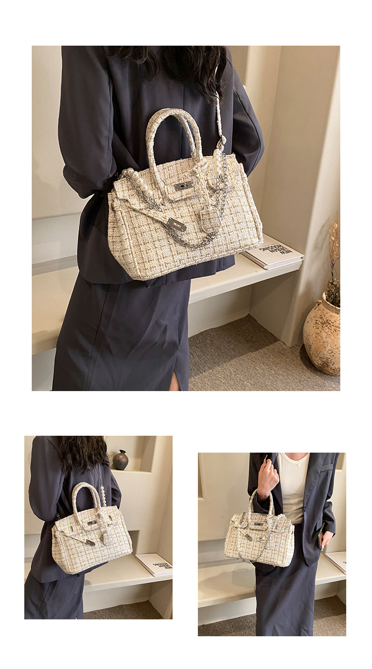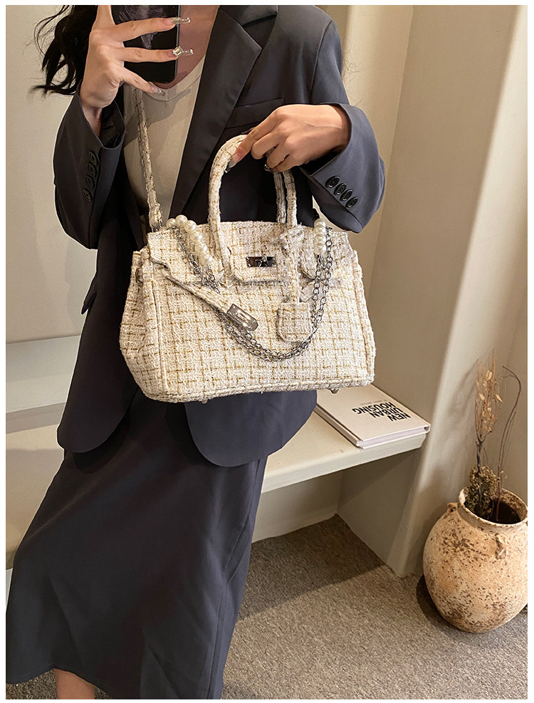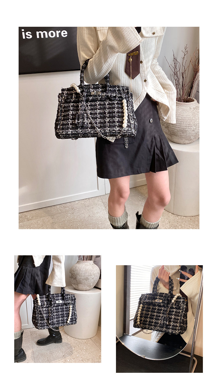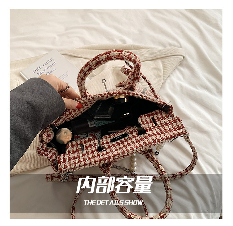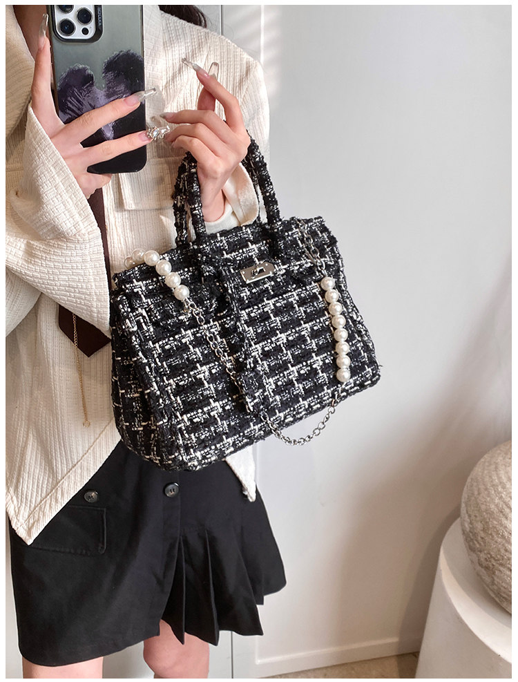 Korean ins retro hand-held platinum bag women's 2024 winter new plaid tote bag premium one-shoulder crossbody bag