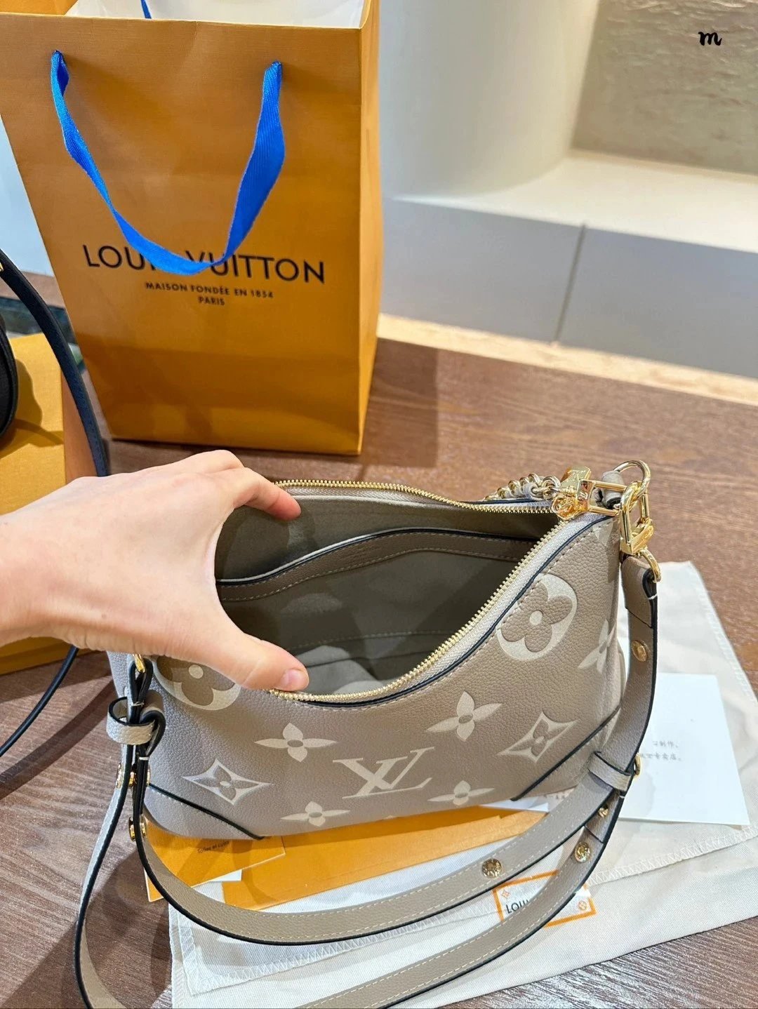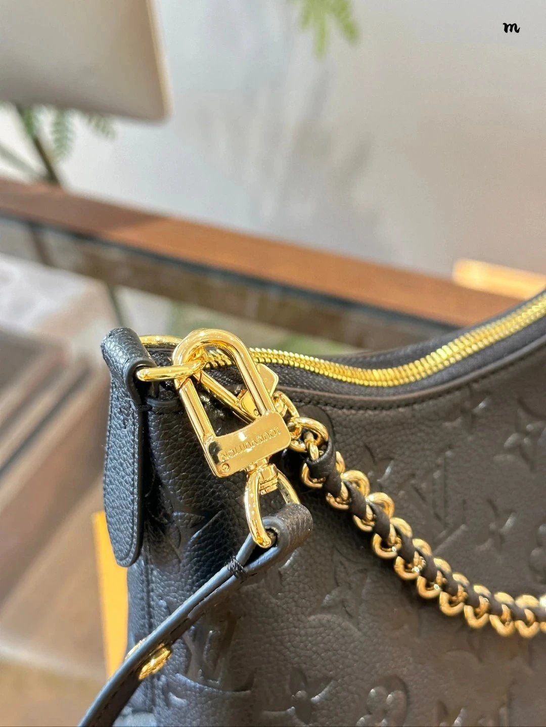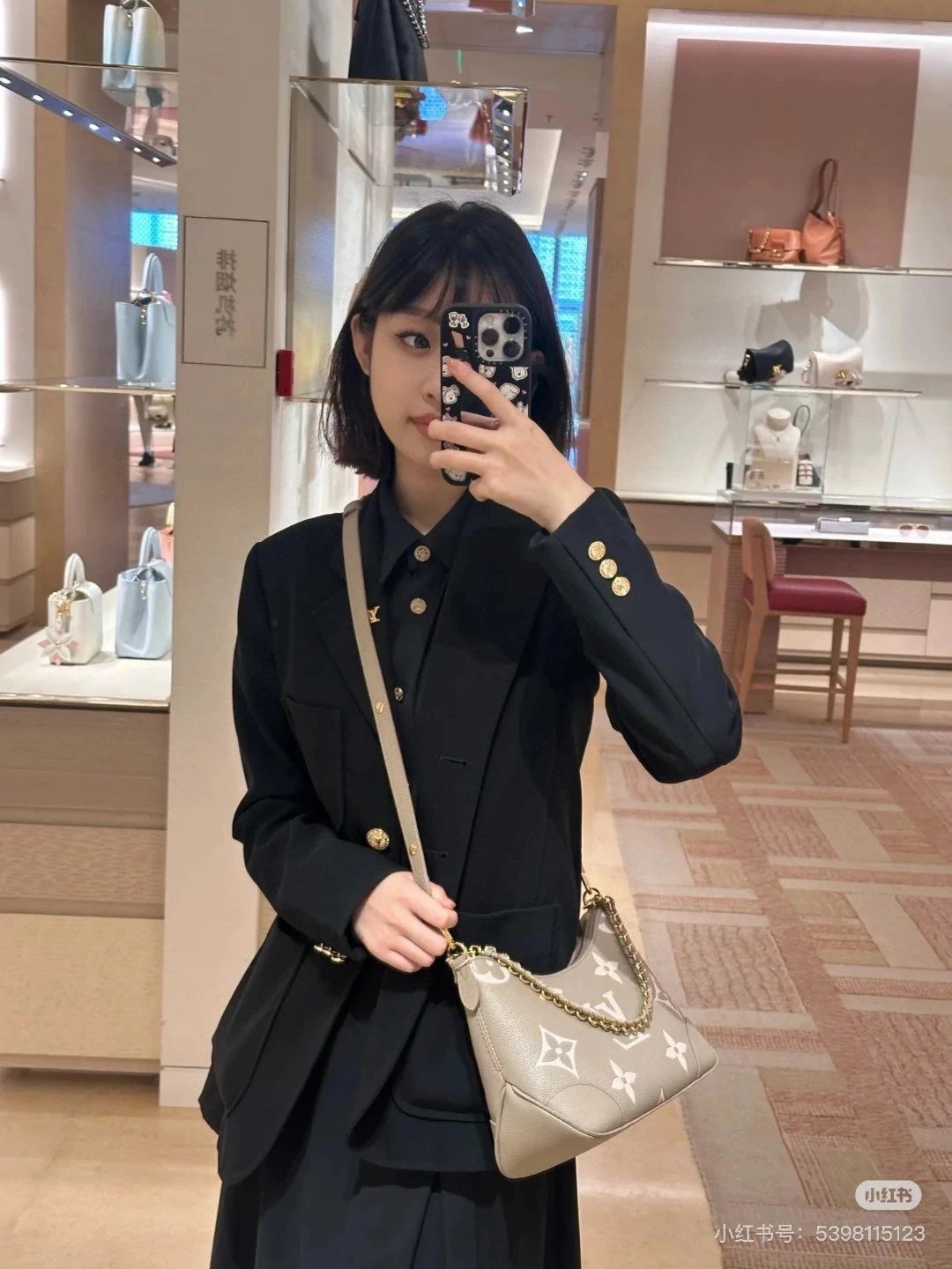 Lu Jia [**Original Order] 24 Autumn and Winter New Croissant Bag Black Embossed Full Leather Underarm Handbag Classic Shoulder Bag Crossbody Bag Pair Flower One-to-One Exquisite and Elegant Lightweight and Large-capacity Commuter Bag Stress-free