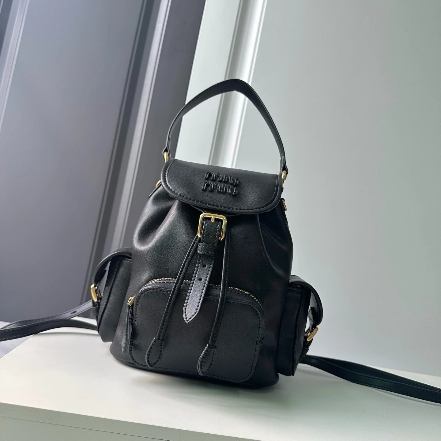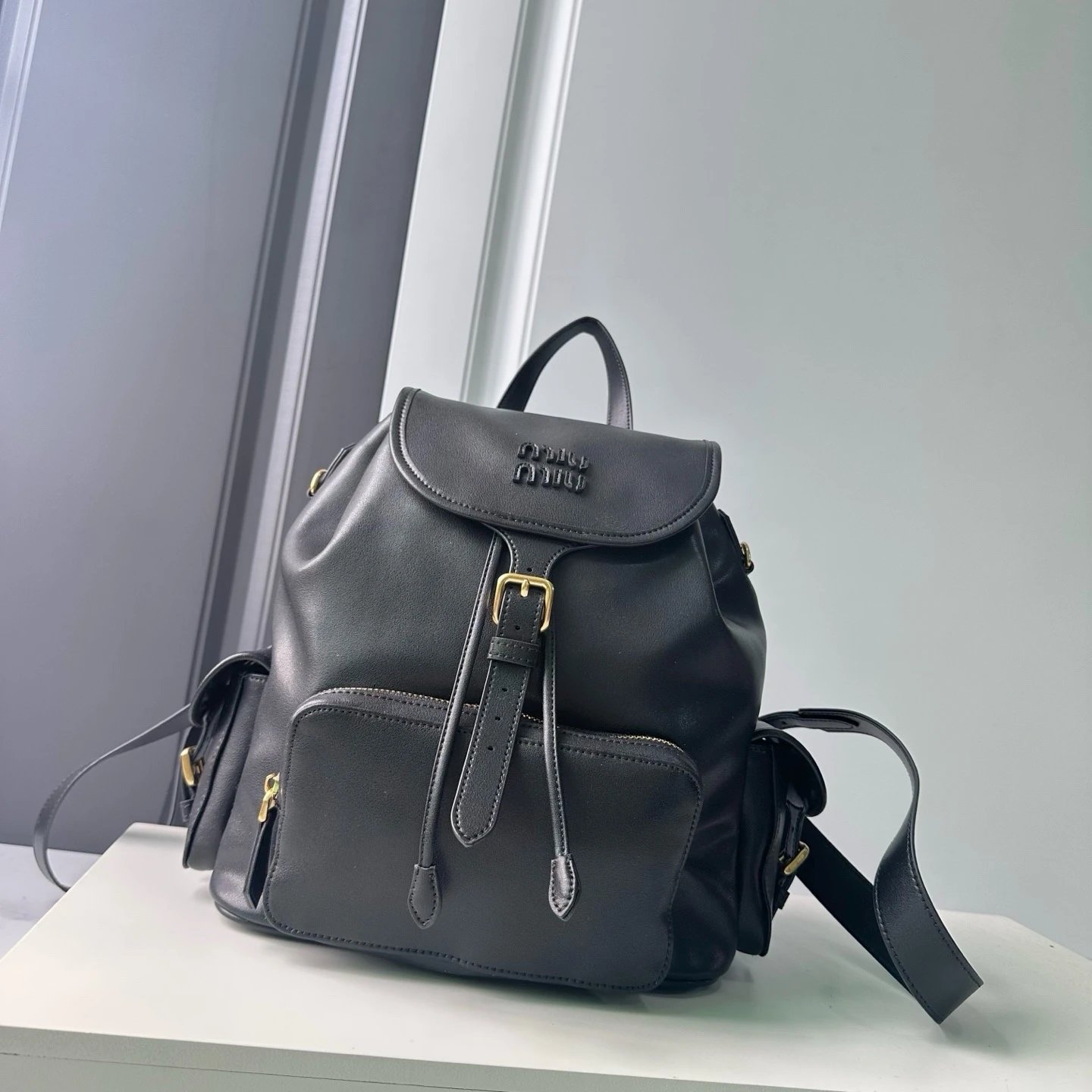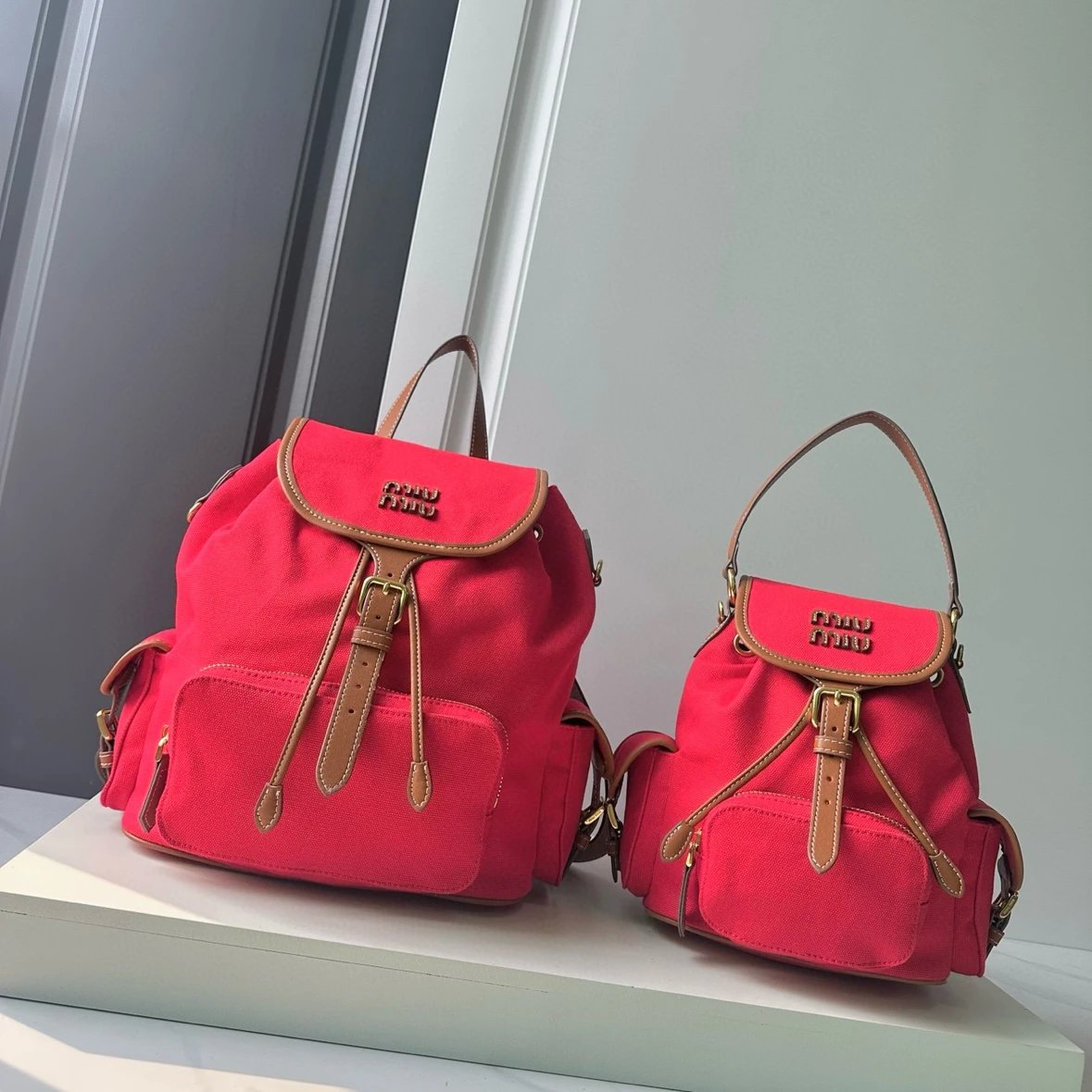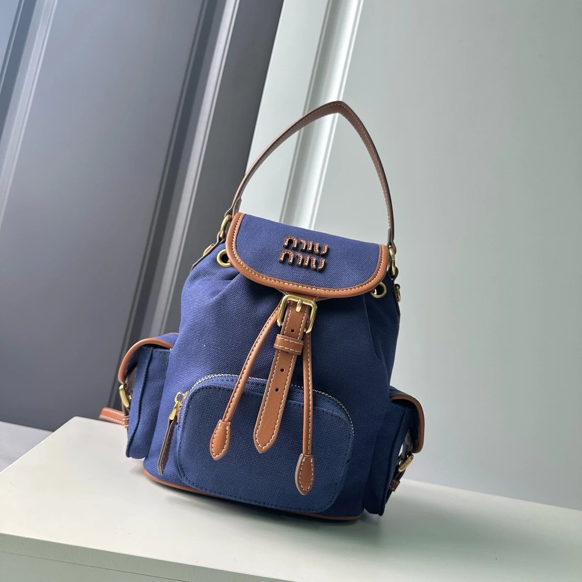 M Logo Gold hardware Calf leather backpack Women's brandy