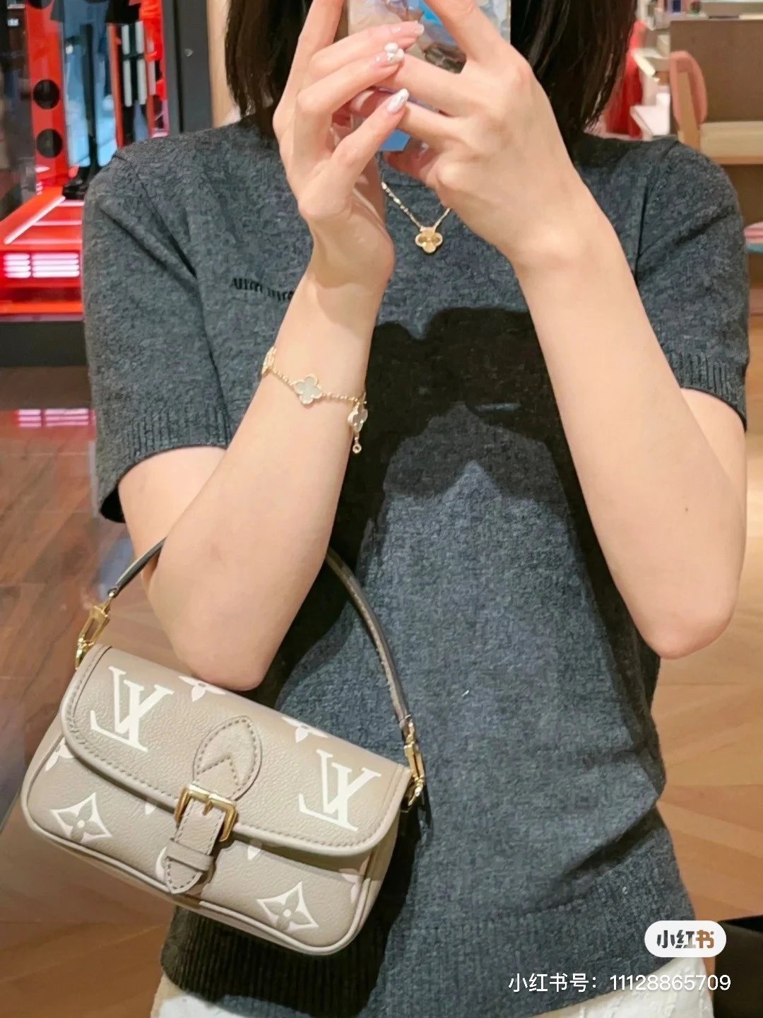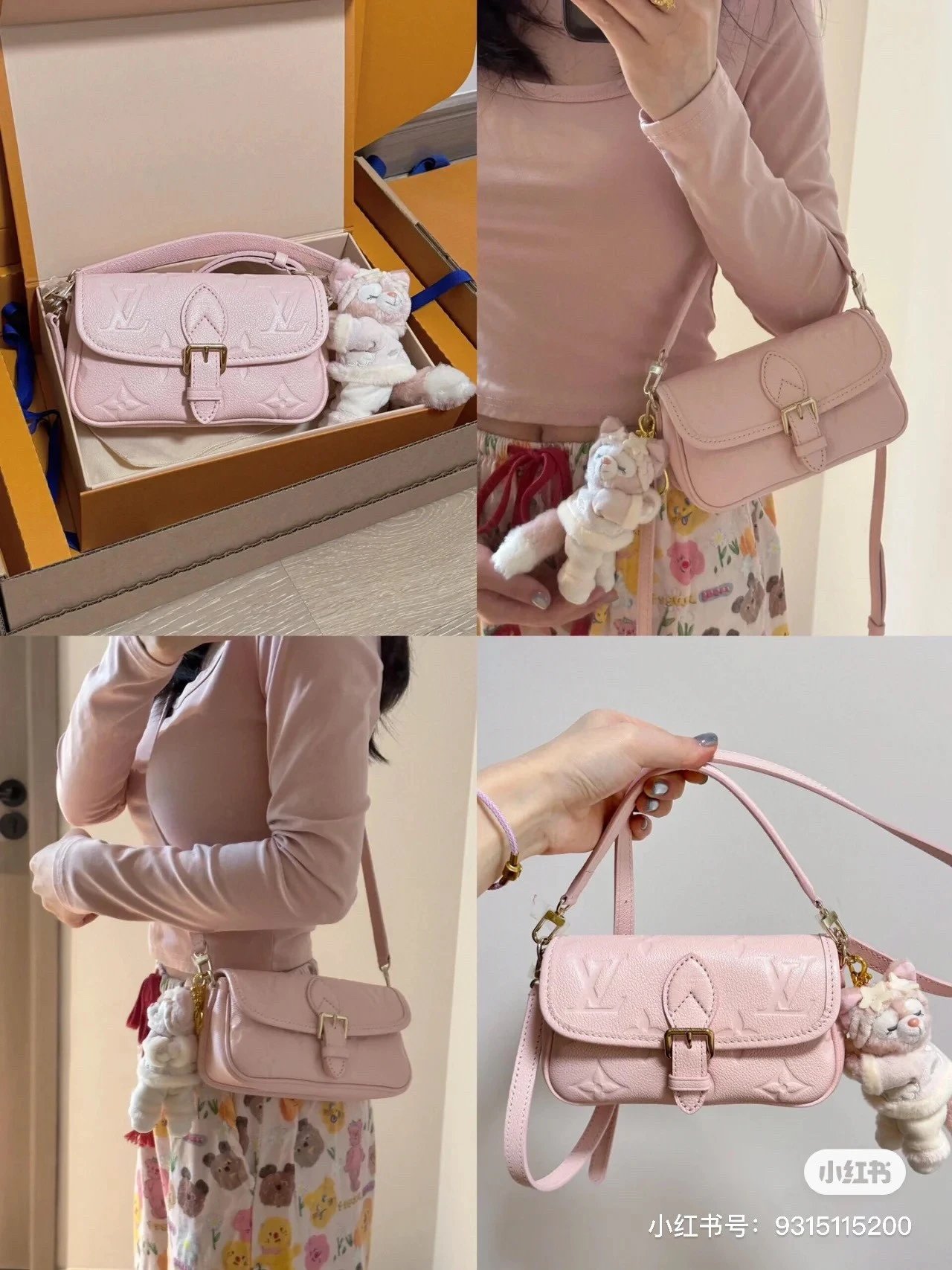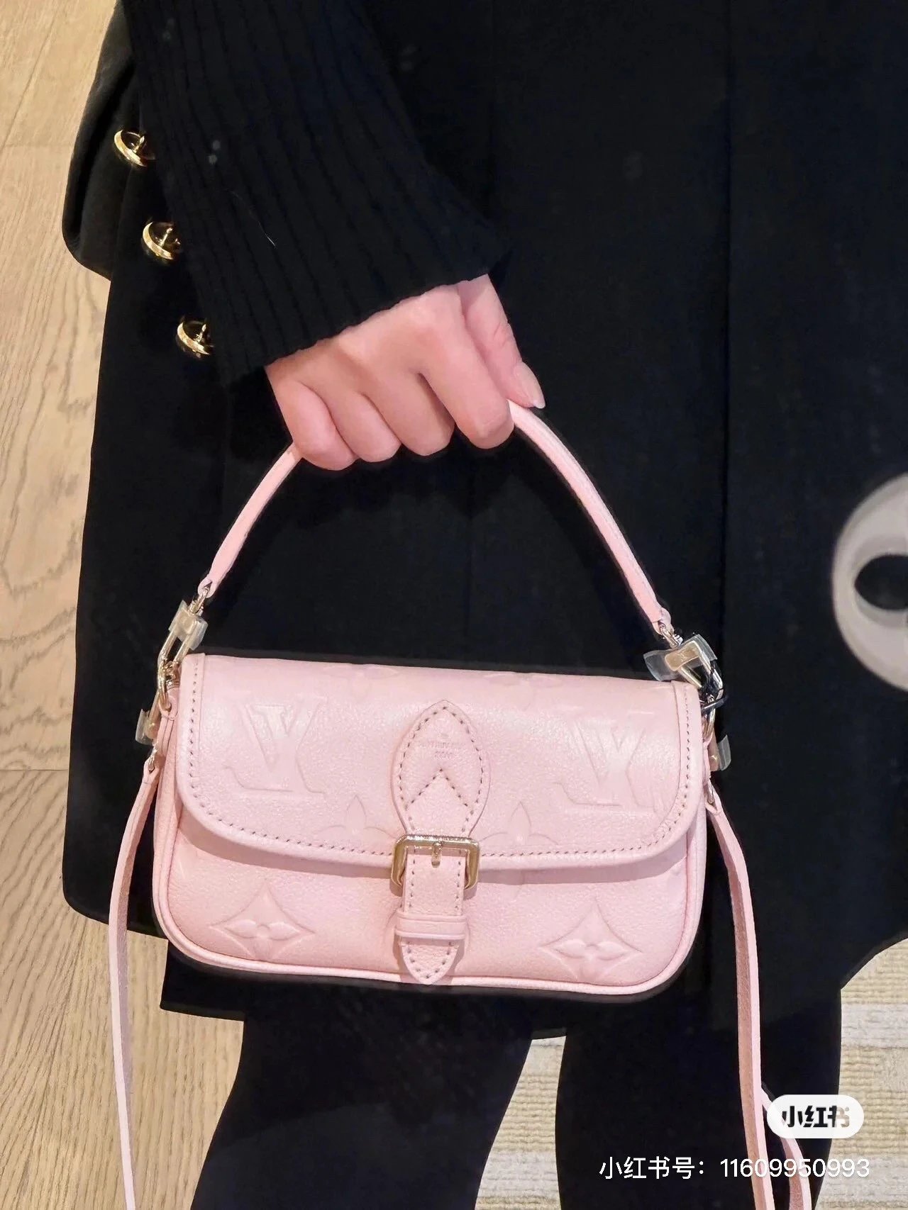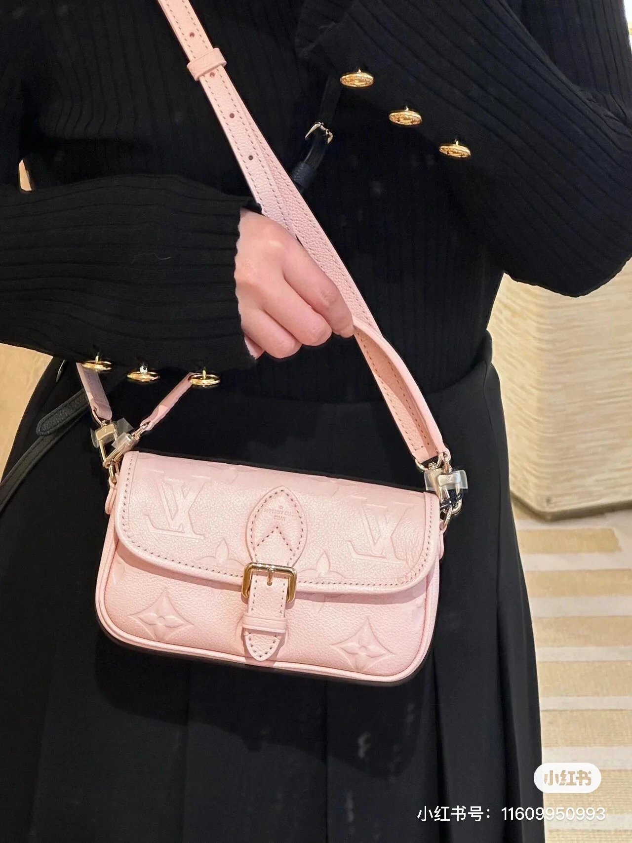 Nano Diane baguette bag top layer cowhide all-steel hardware ice cream color matching crossbody bag shoulder bag commuter bag configuration two shoulder straps sweet and salty suitable for summer Super Fairy original one-to-one