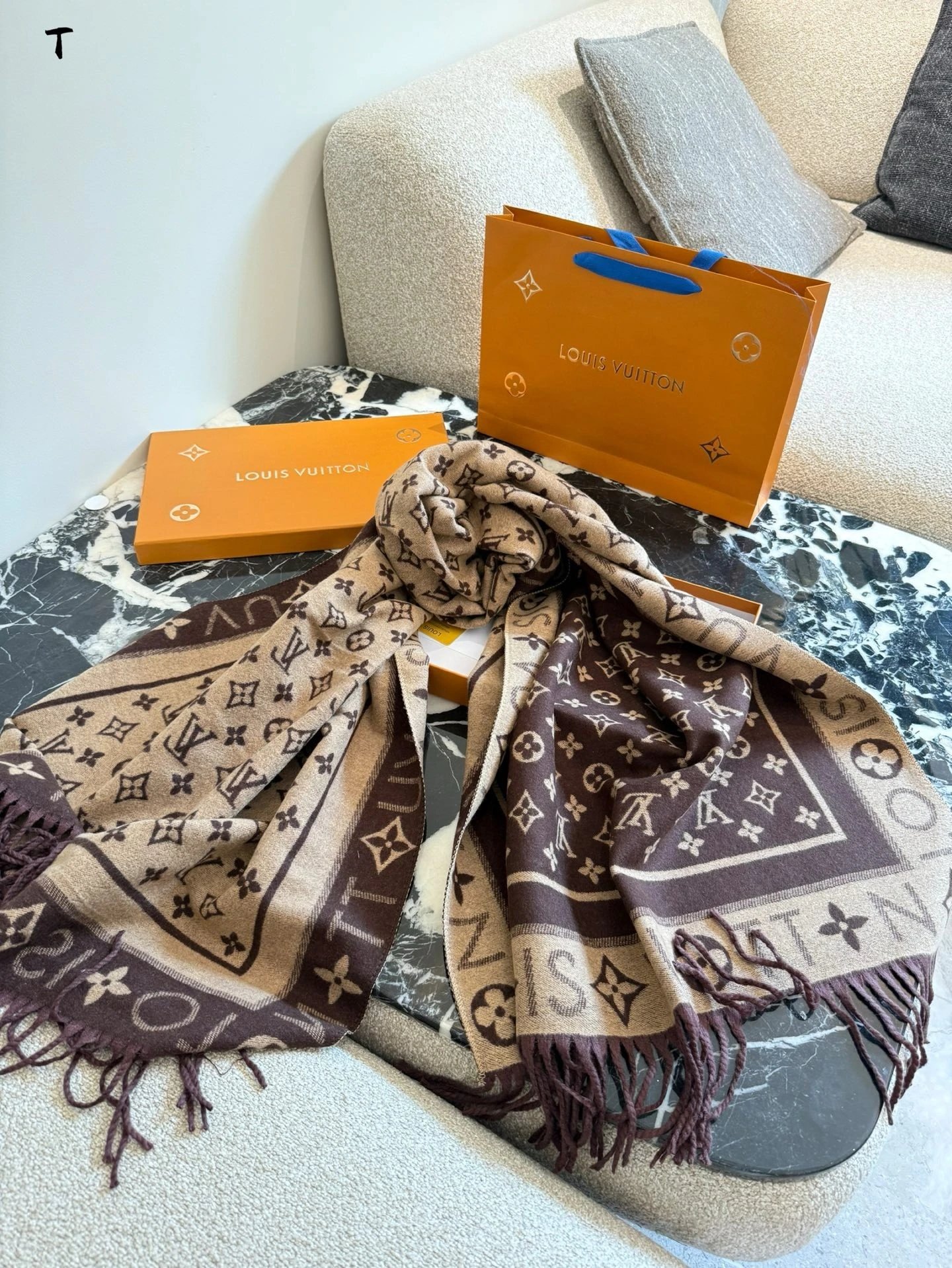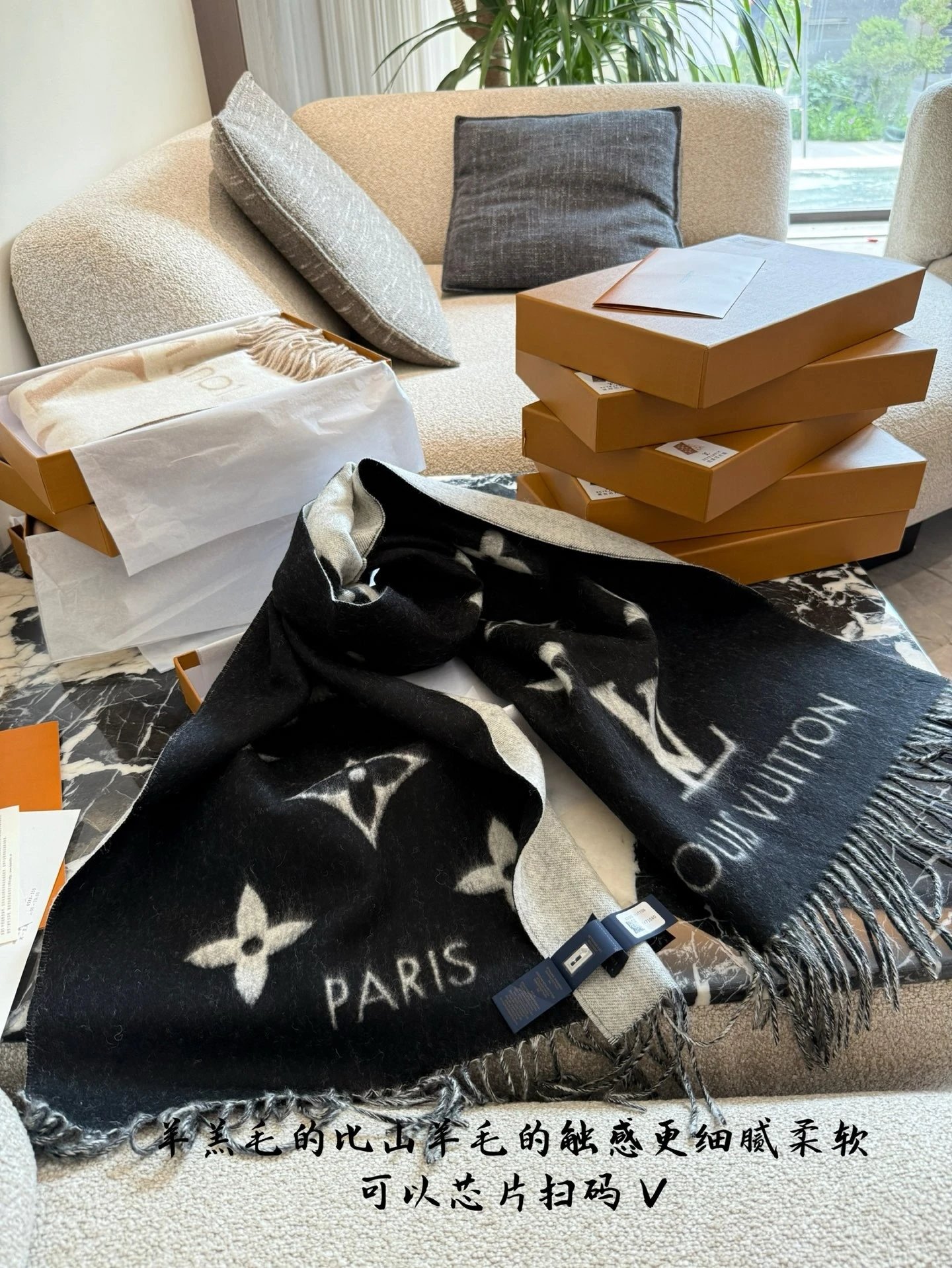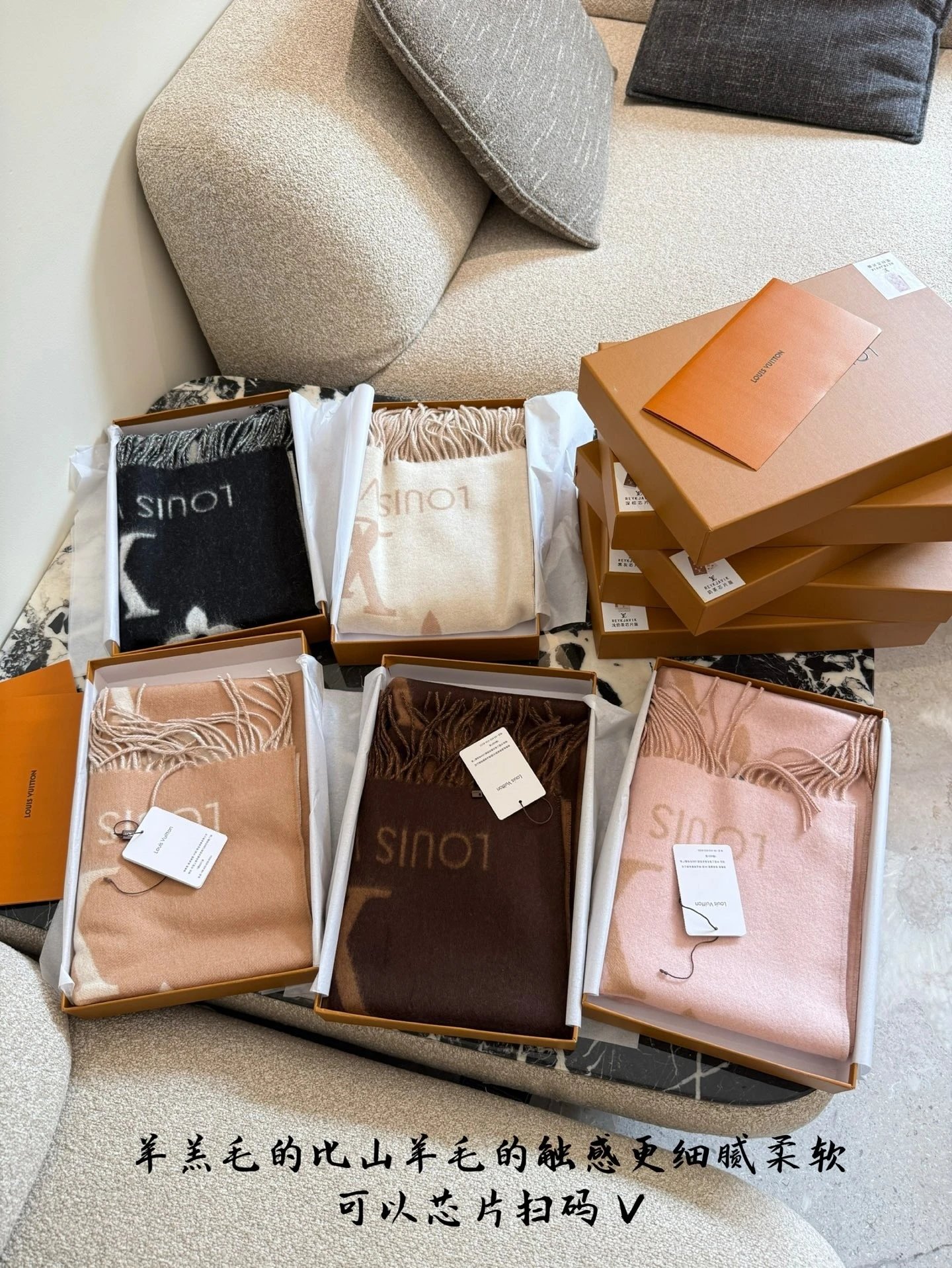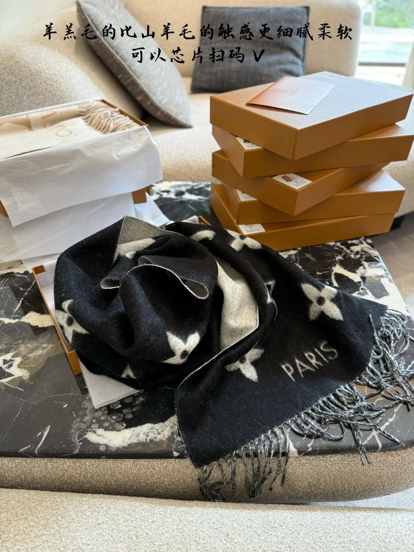 New cashmere scarf 100% cashmere scarf women's L double-sided cashmere shawl warm scarf temperament vintage scarf heavy industry quality autumn and winter scarf scarf neck 🧣95% wool + 5% silk with counter gift box packaging