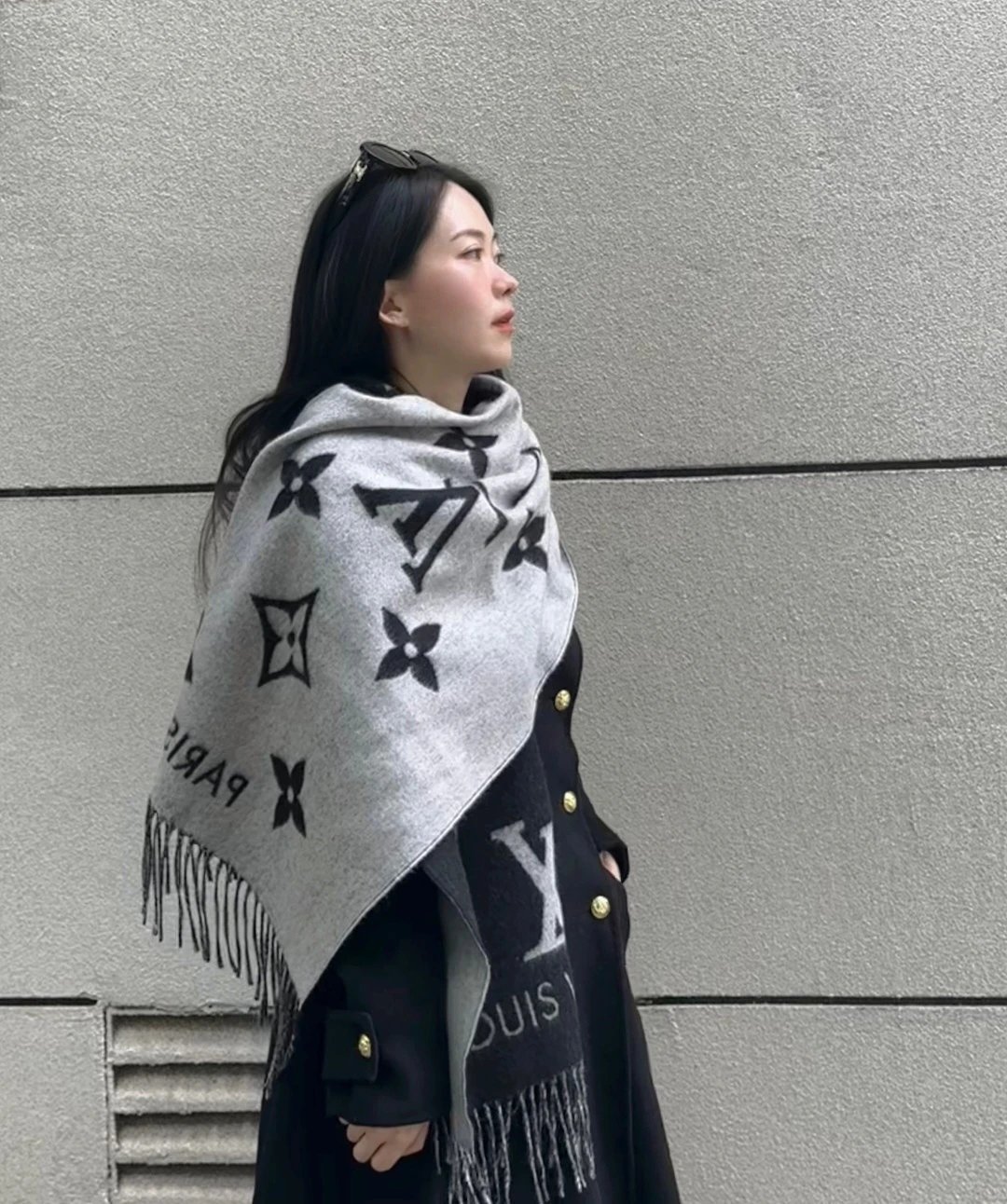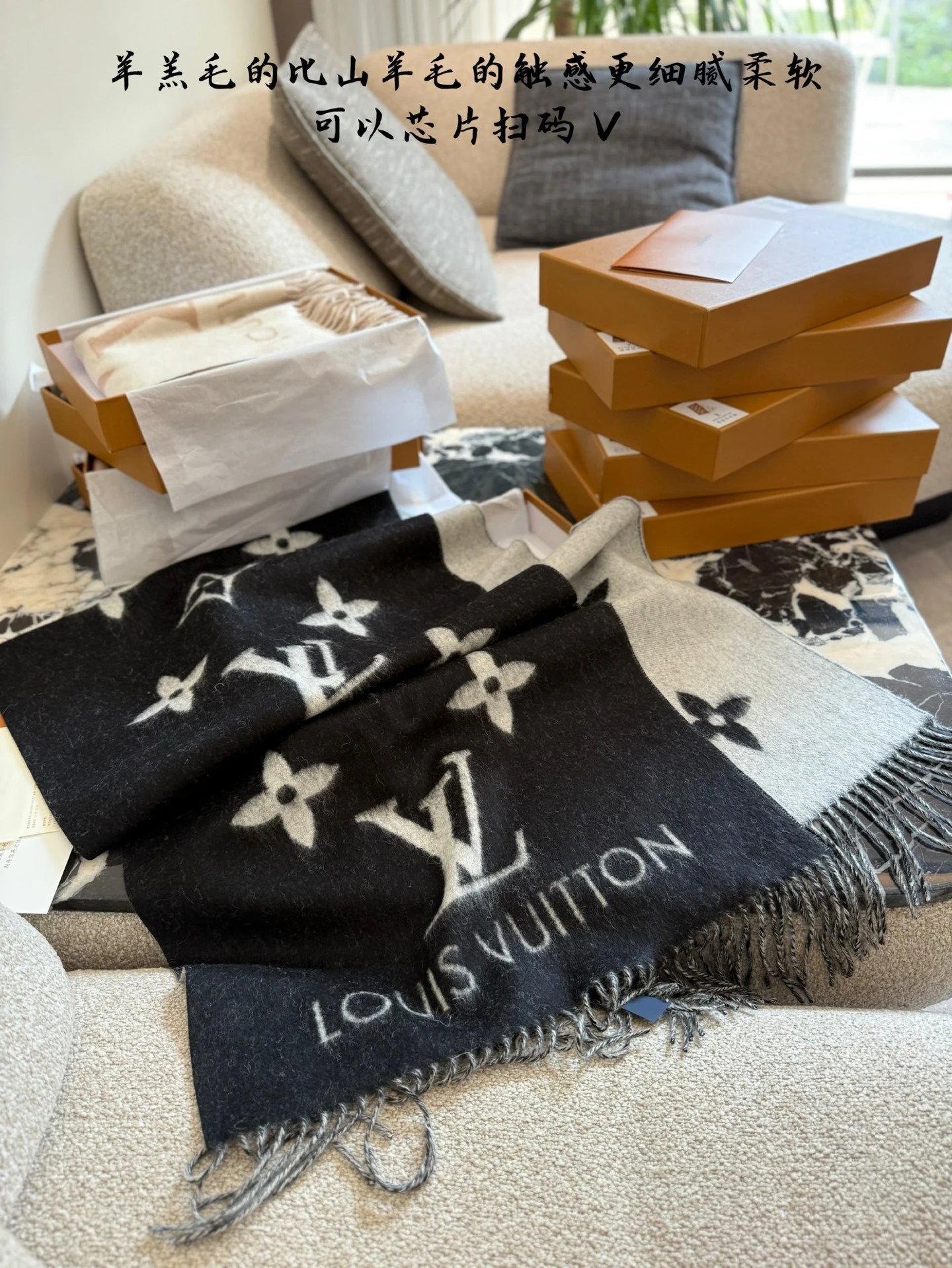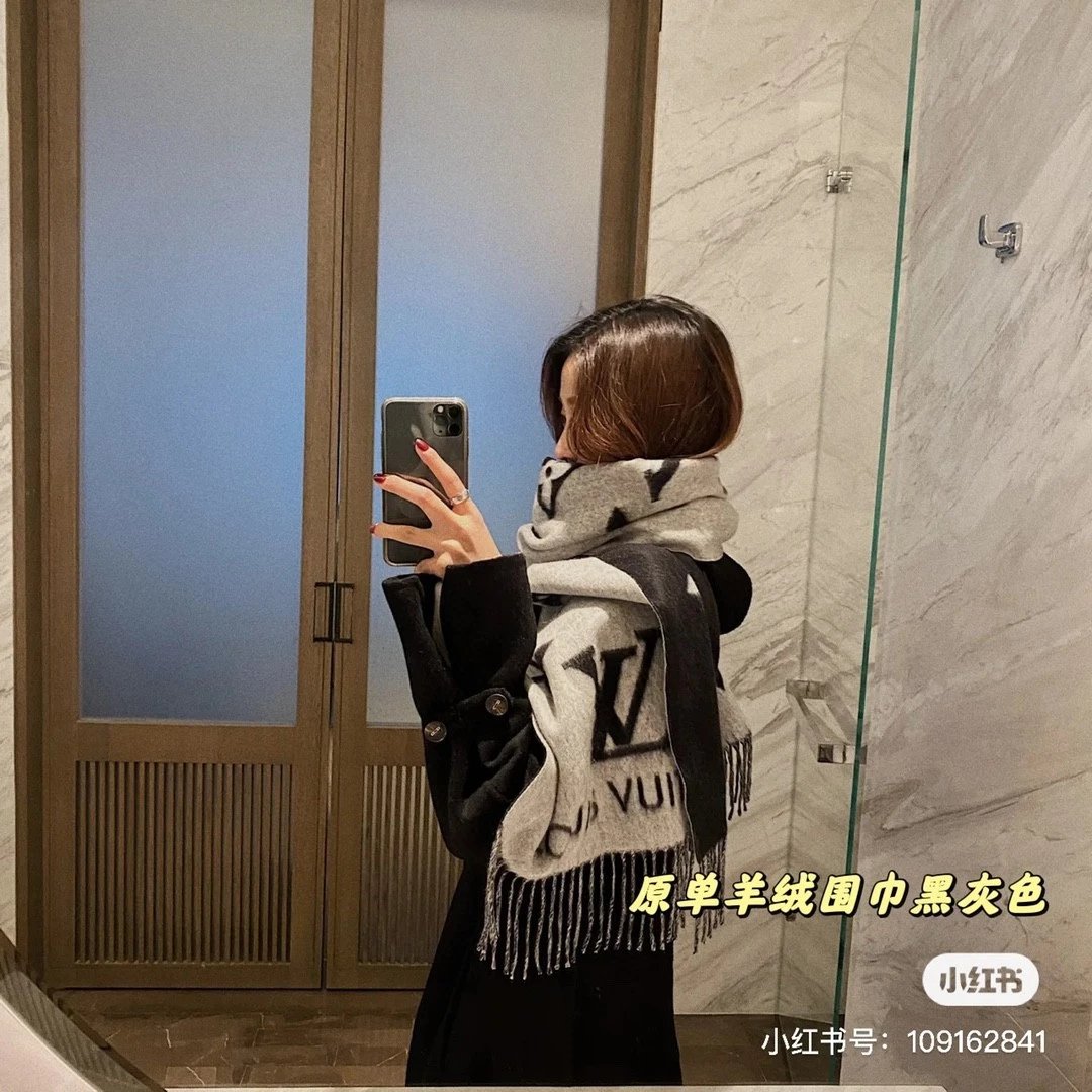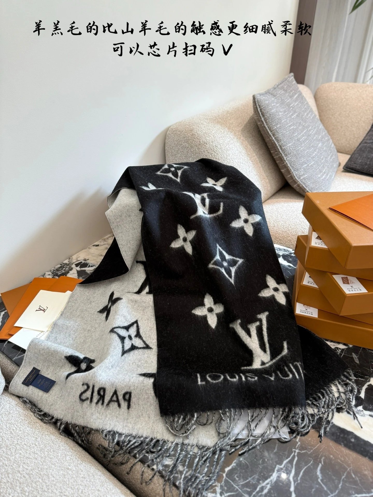 New cashmere scarf 100% cashmere scarf women's L double-sided cashmere shawl warm scarf temperament vintage scarf heavy industry quality autumn and winter scarf scarf neck 🧣95% wool + 5% silk with counter gift box packaging