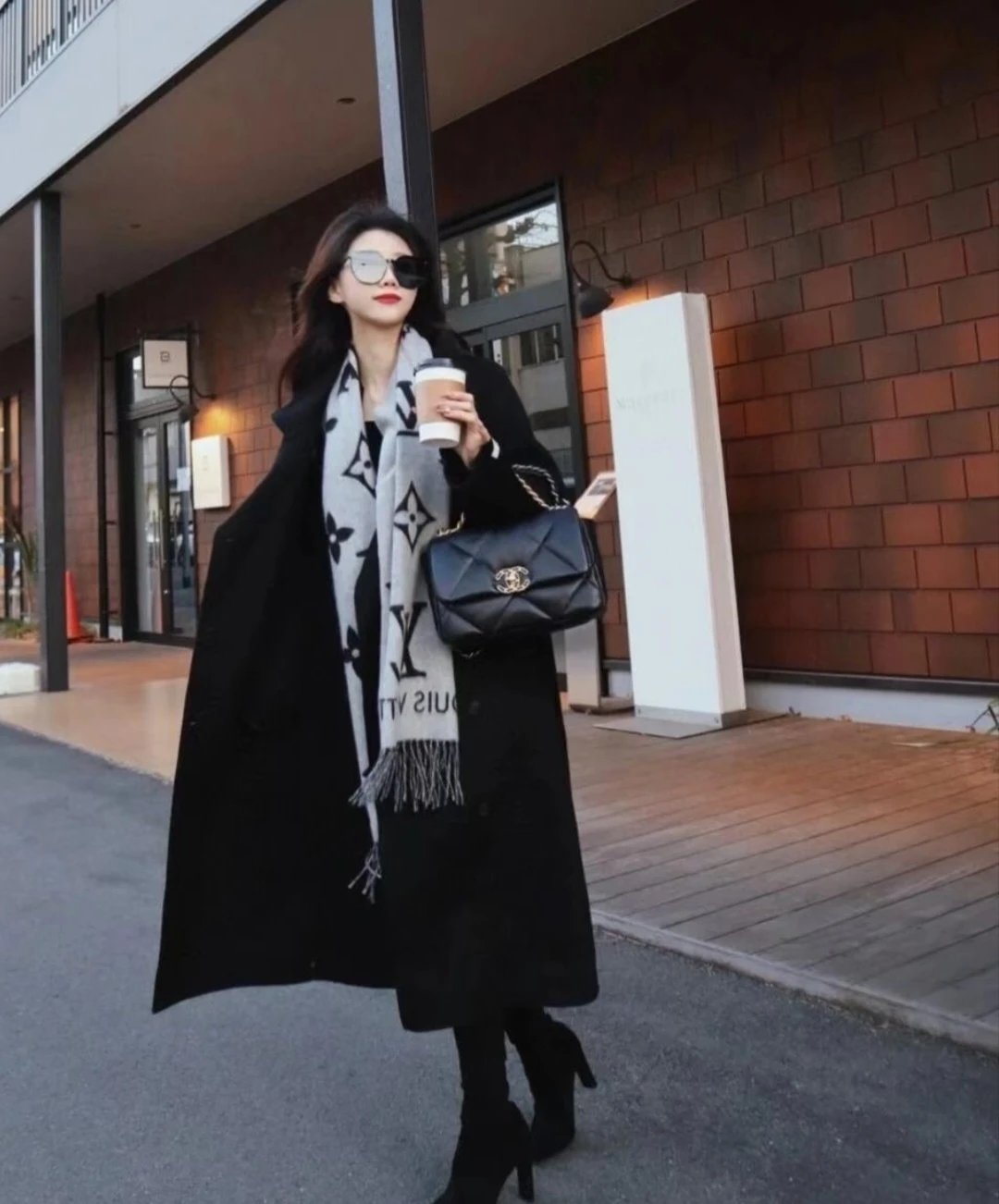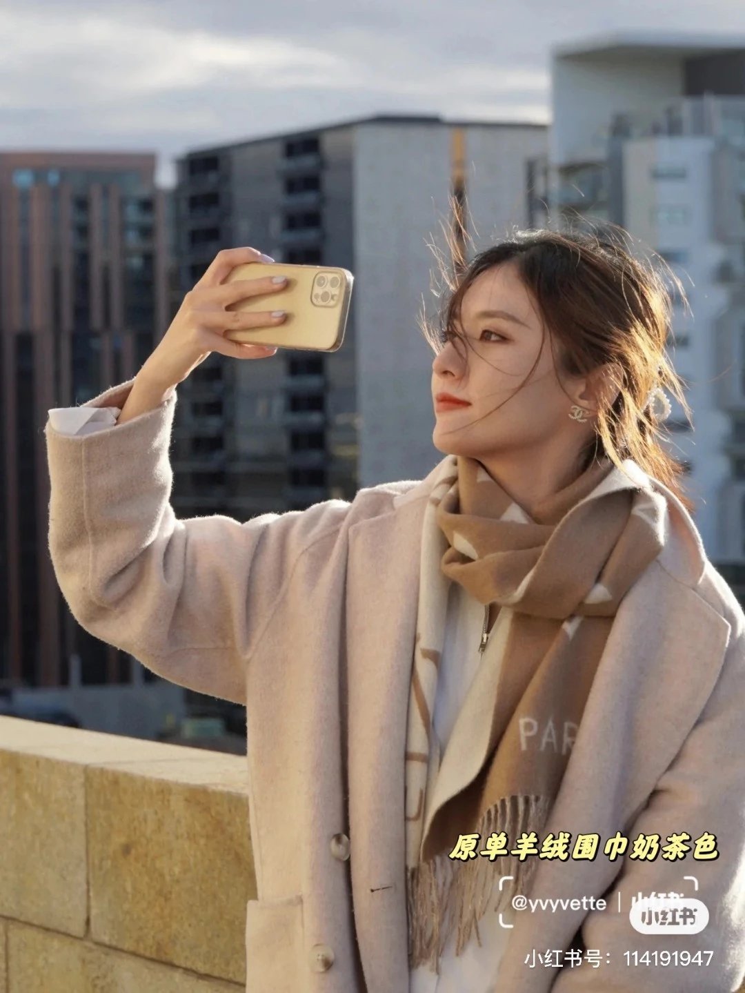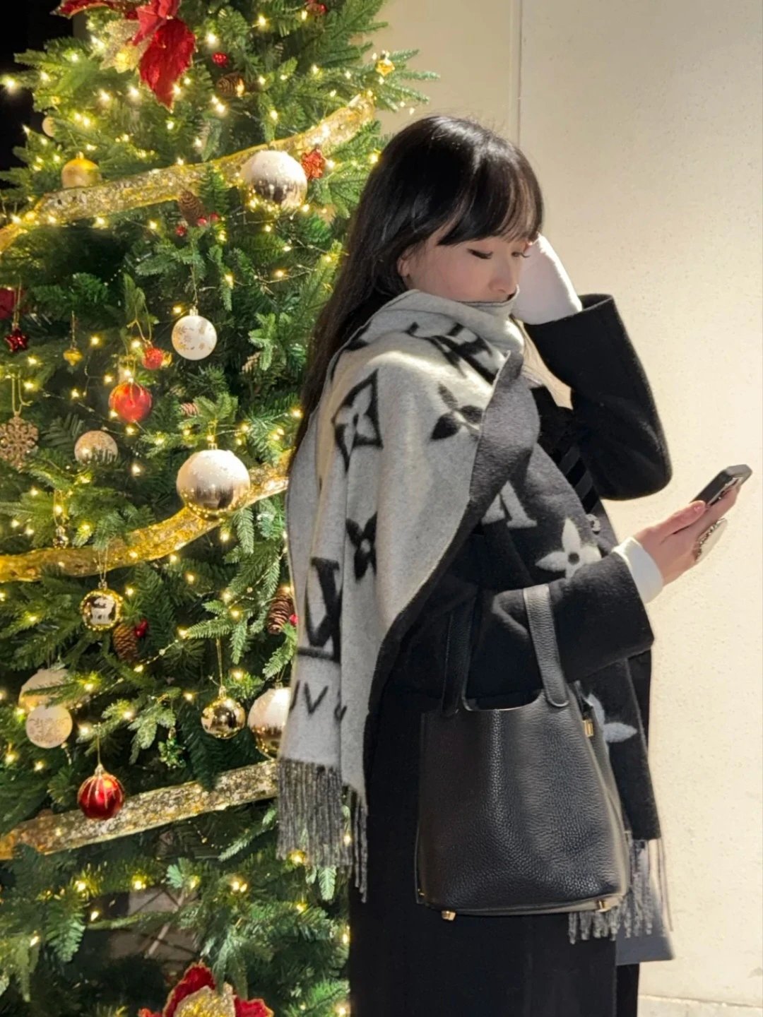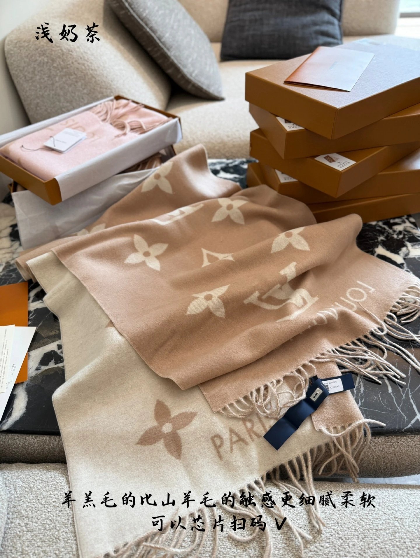 New cashmere scarf 100% cashmere scarf women's L double-sided cashmere shawl warm scarf temperament vintage scarf heavy industry quality autumn and winter scarf scarf neck 🧣95% wool + 5% silk with counter gift box packaging