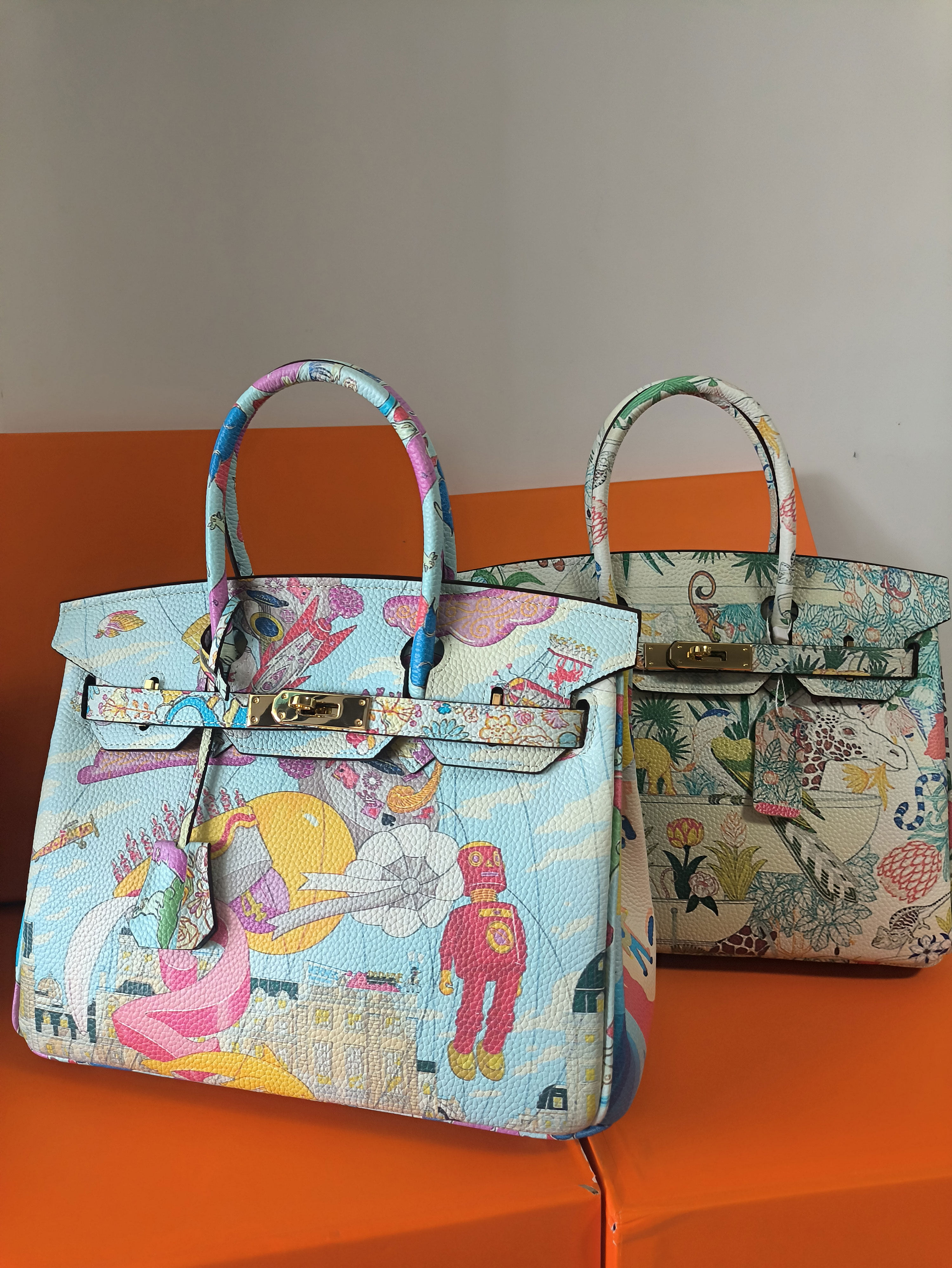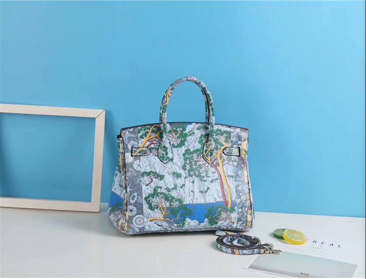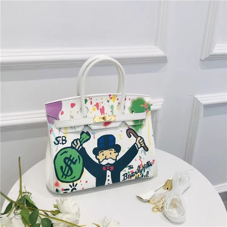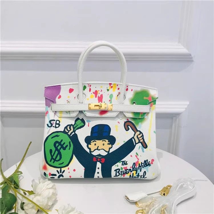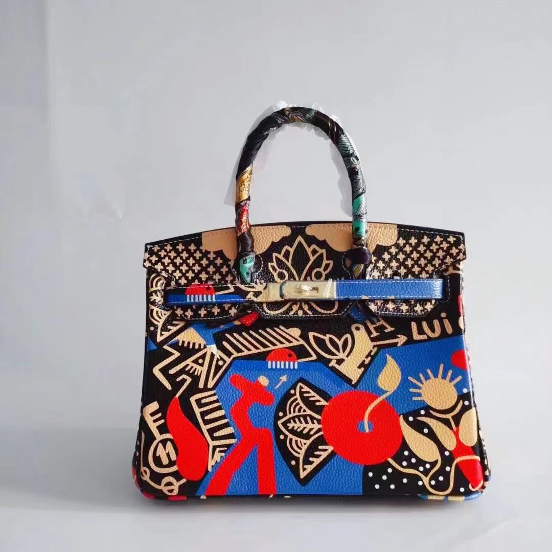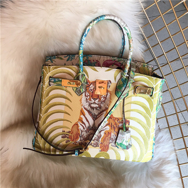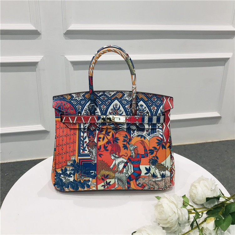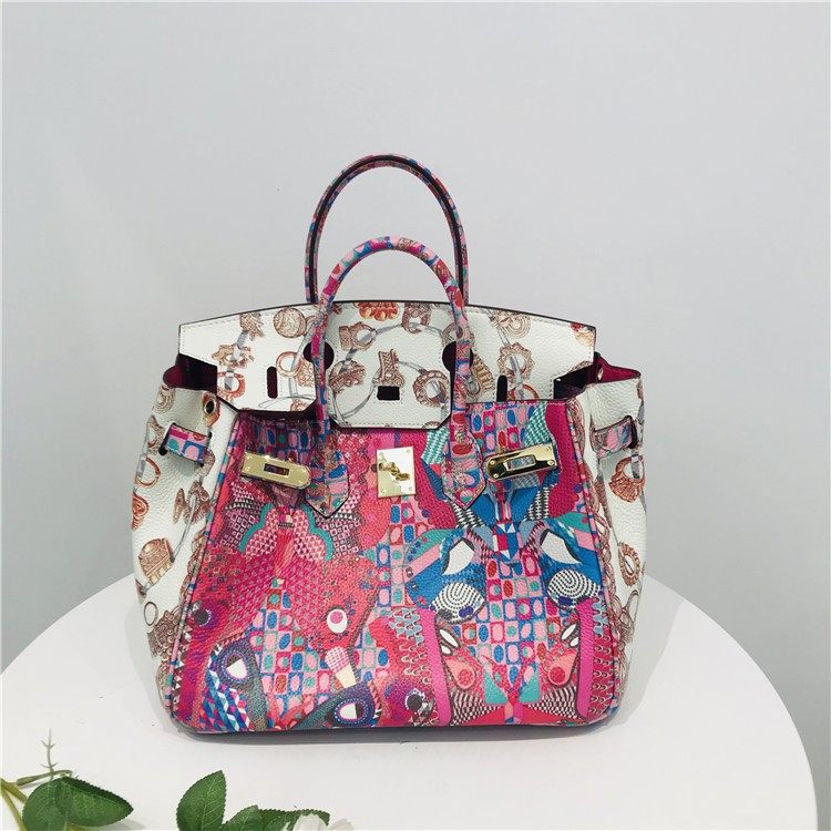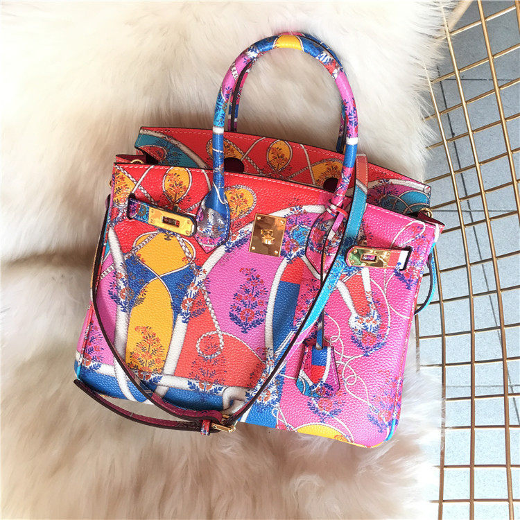 New painted graffiti Platinum bag hit color leather handbags lychee layer suede leather shoulder diagonal handbag