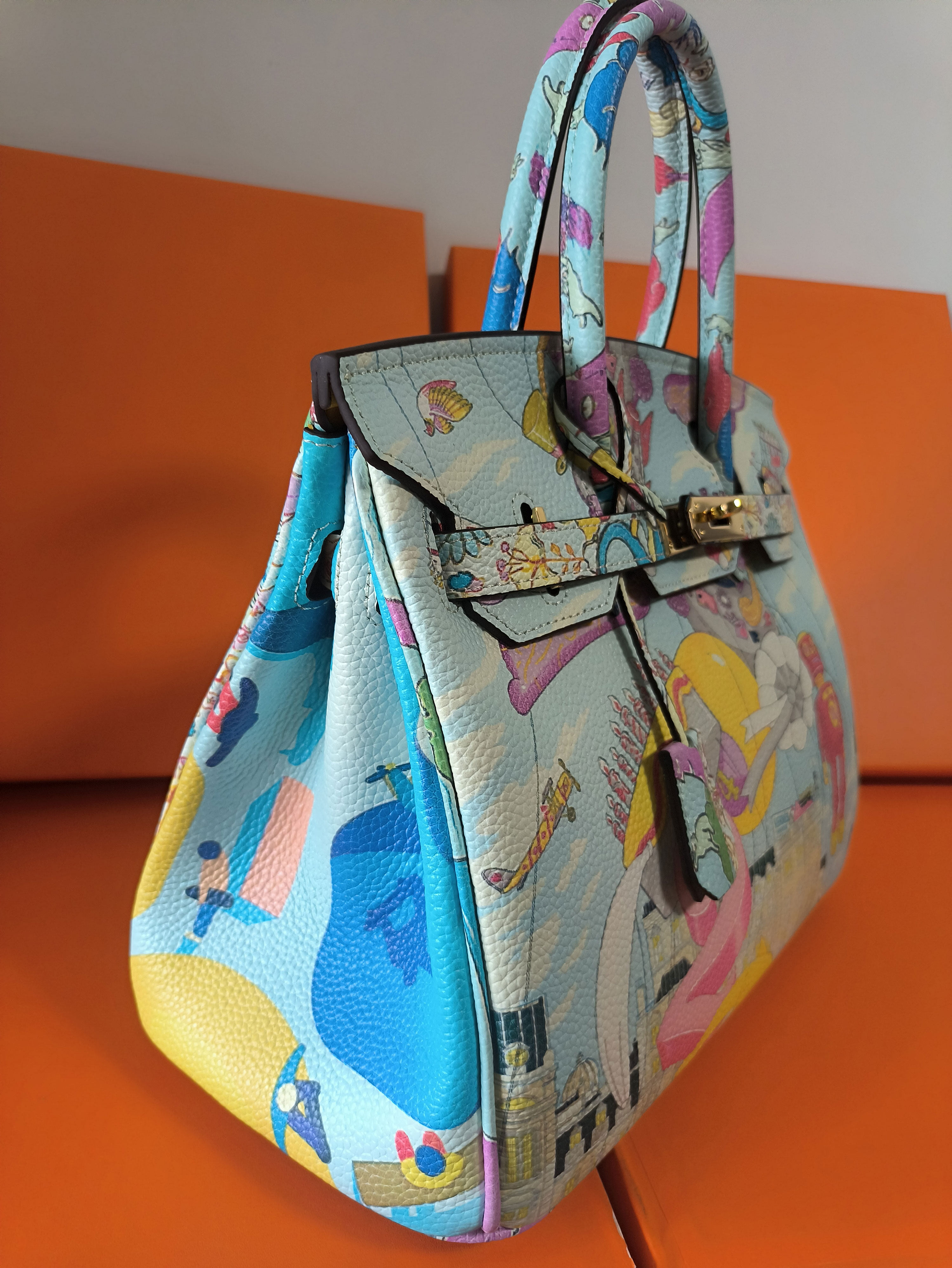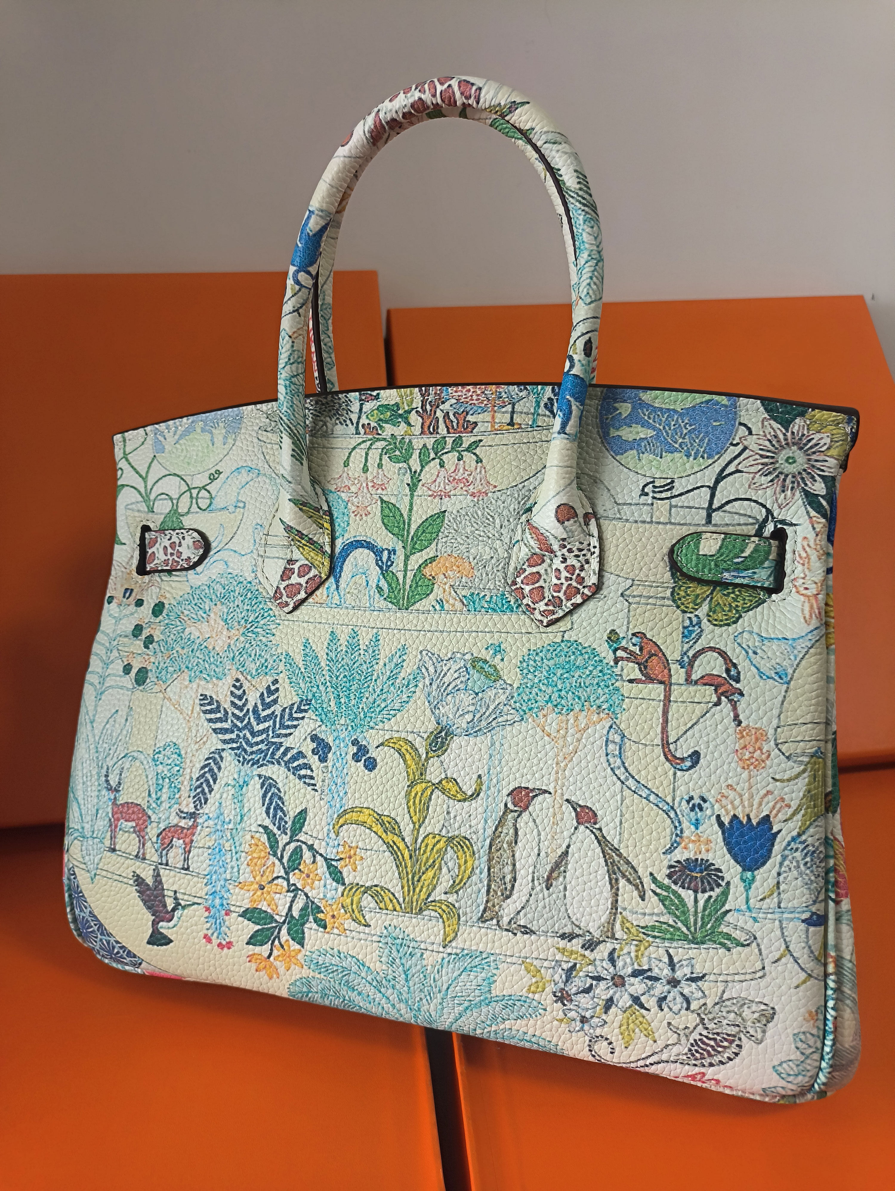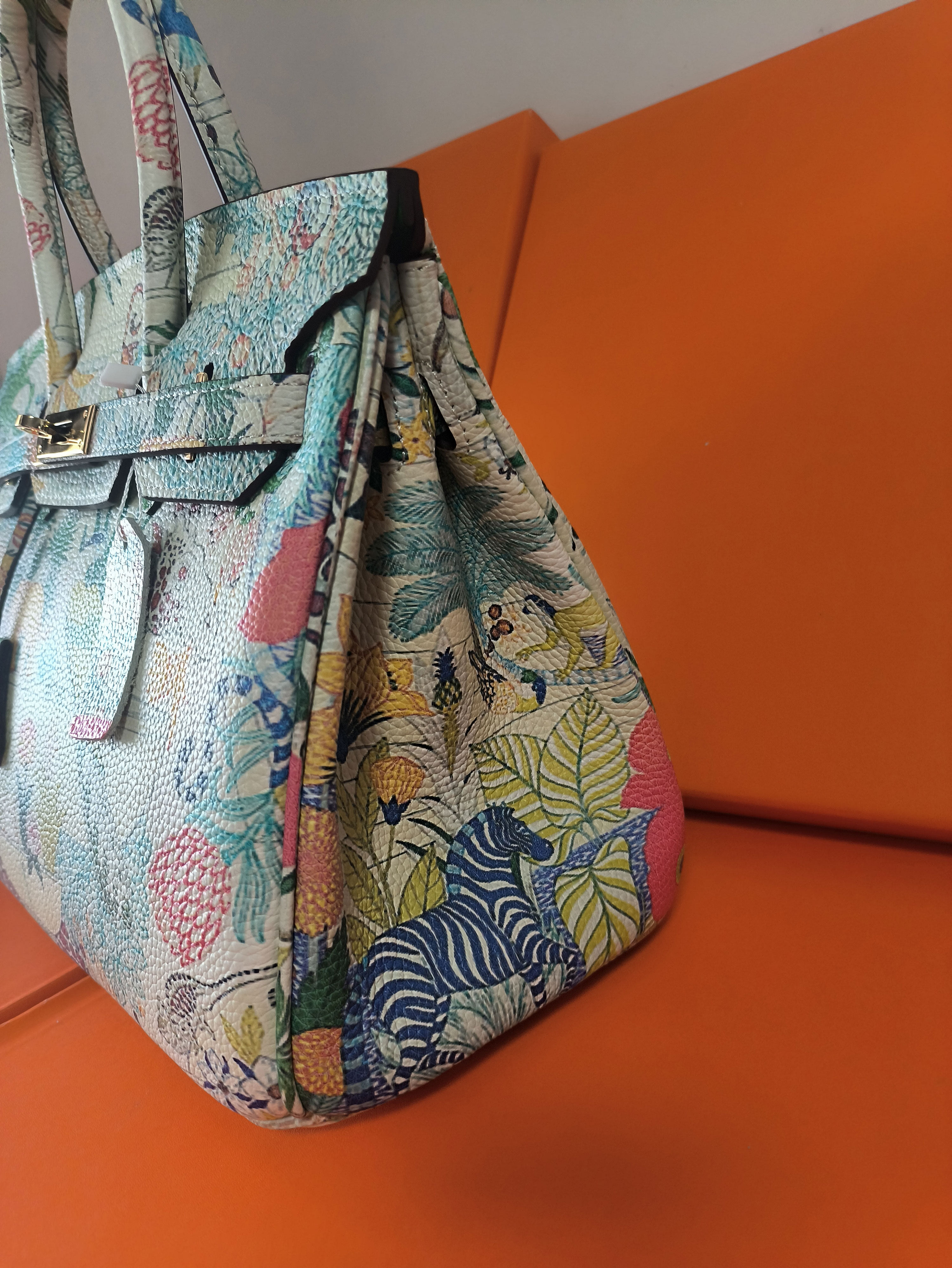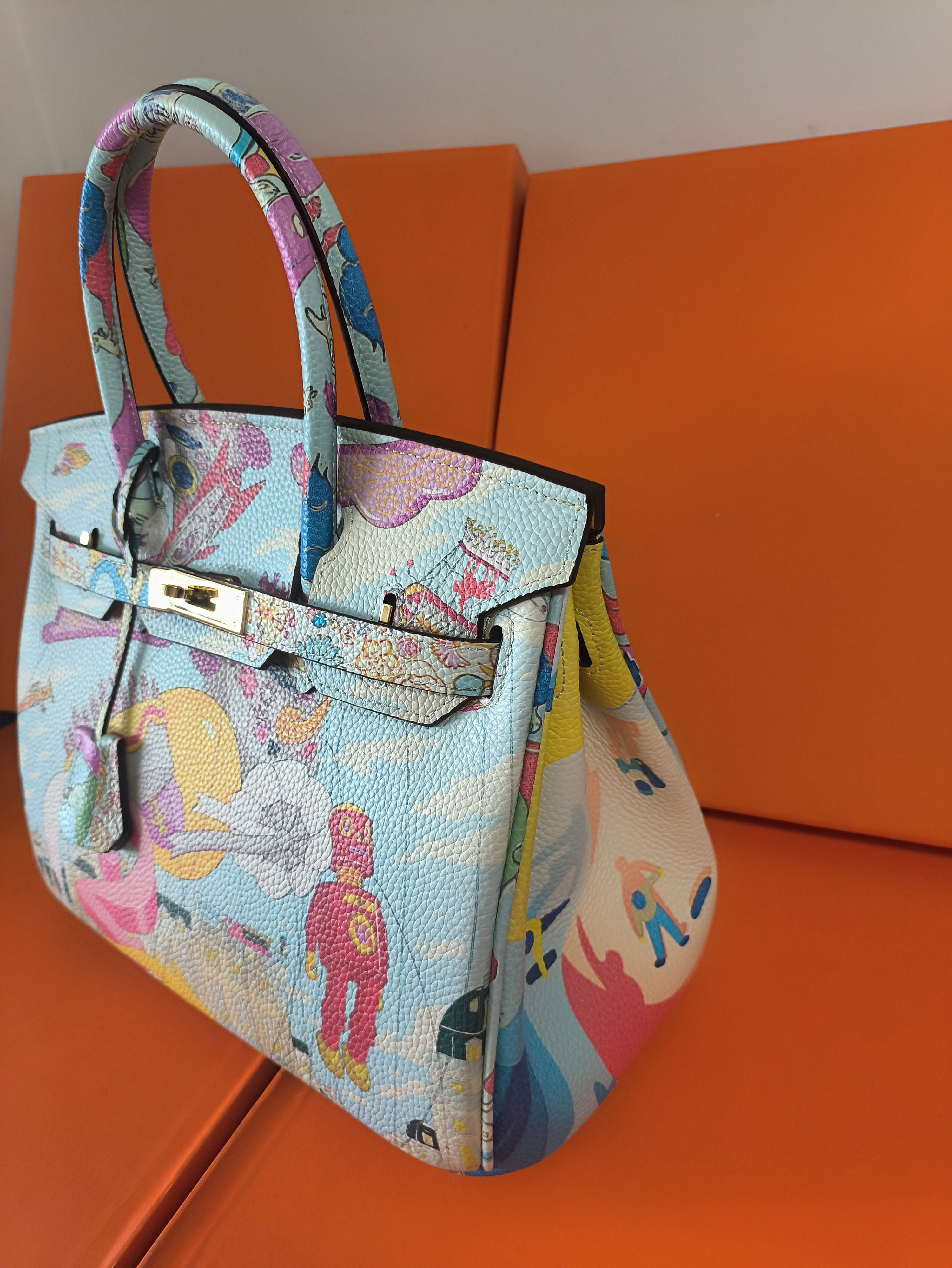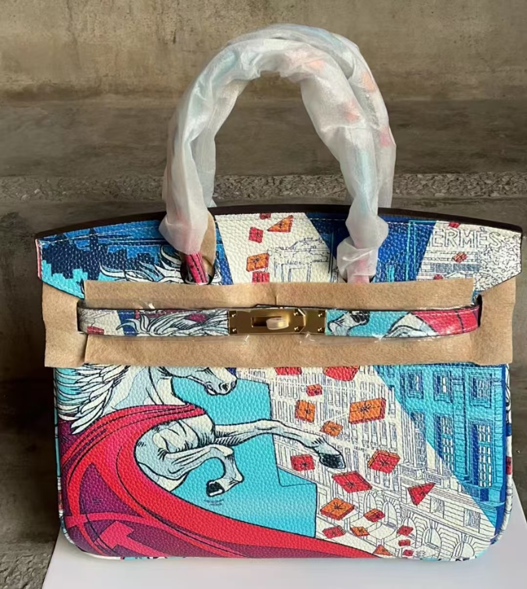 New painted graffiti Platinum bag hit color leather handbags lychee layer suede leather shoulder diagonal handbag