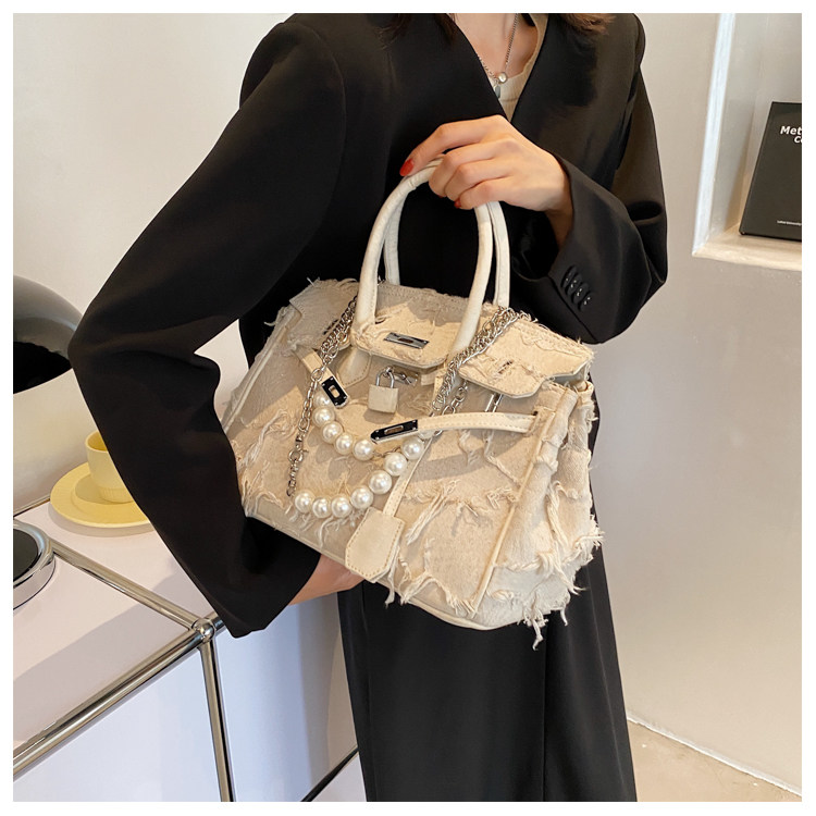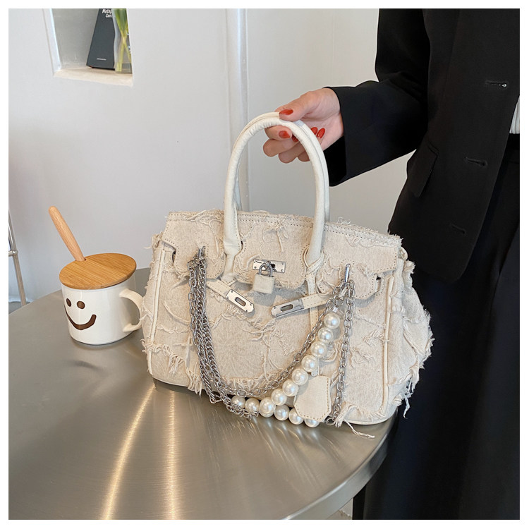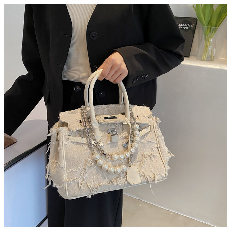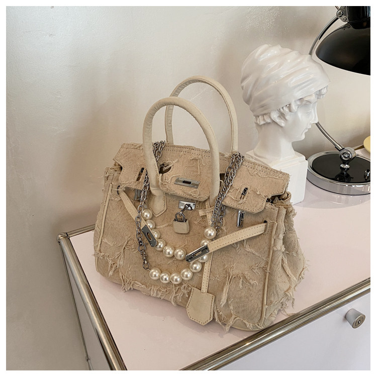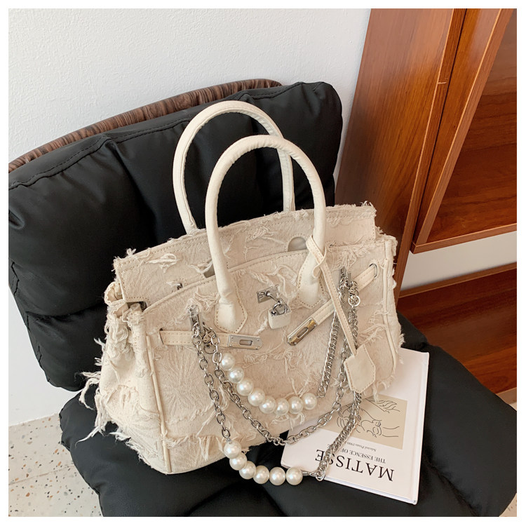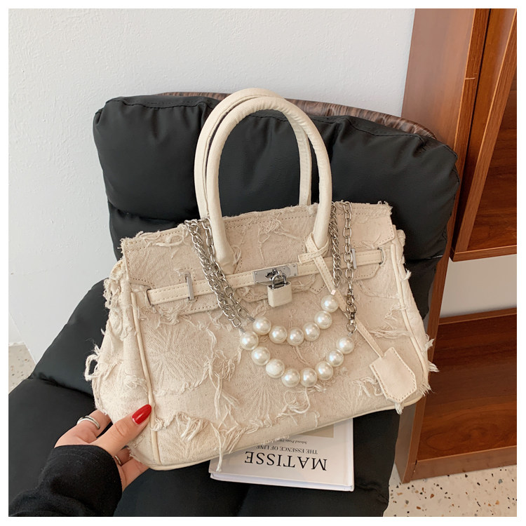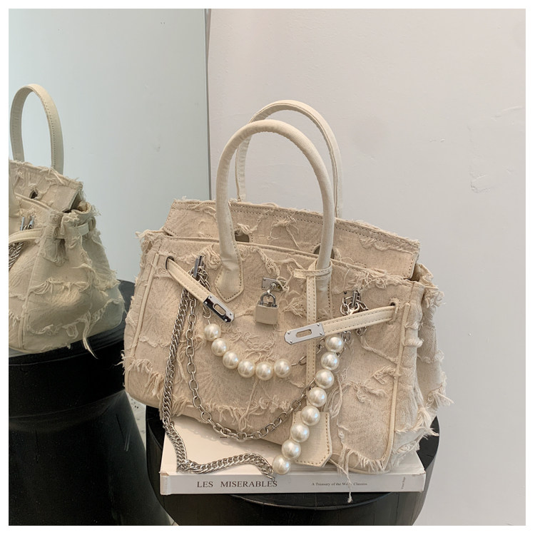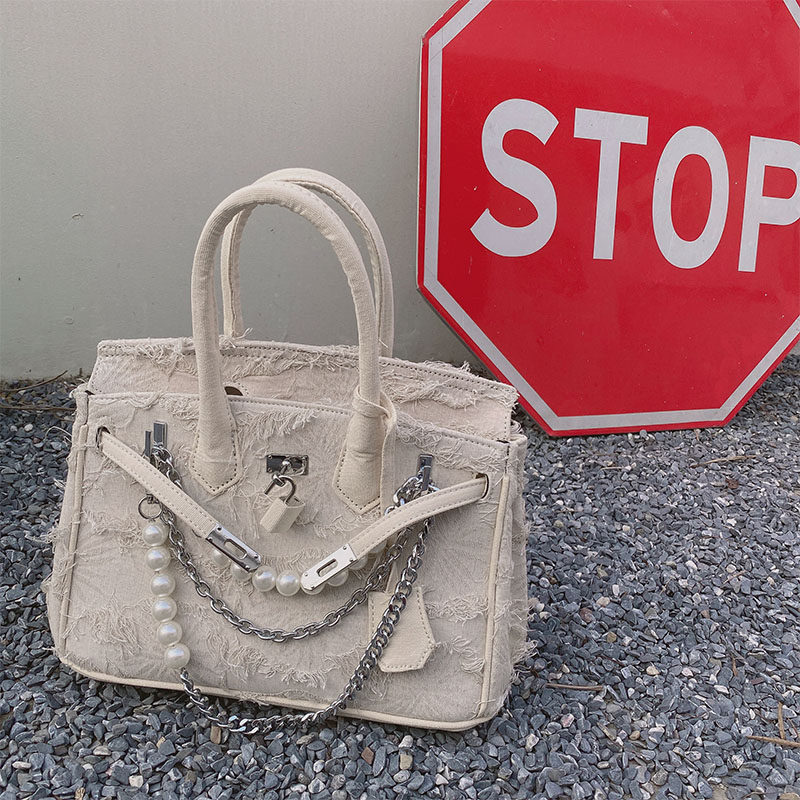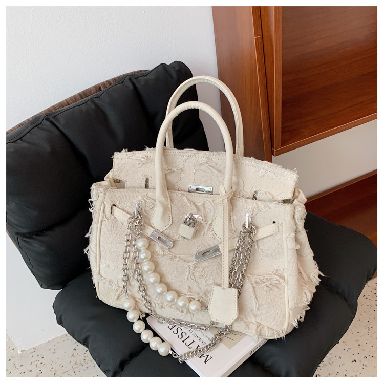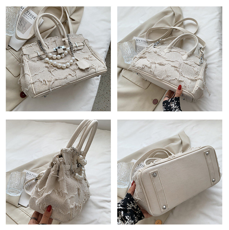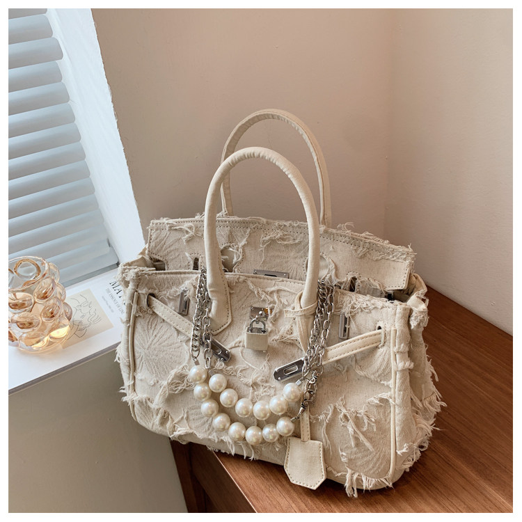 Niche retro platinum women's canvas tote bag hand-held messenger bag