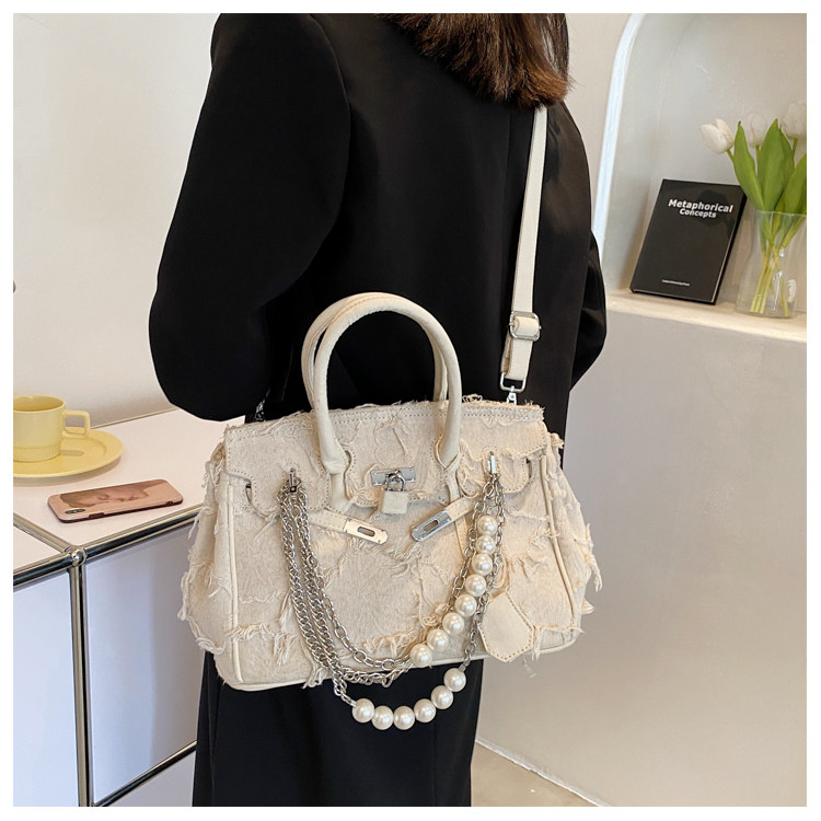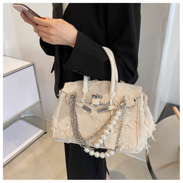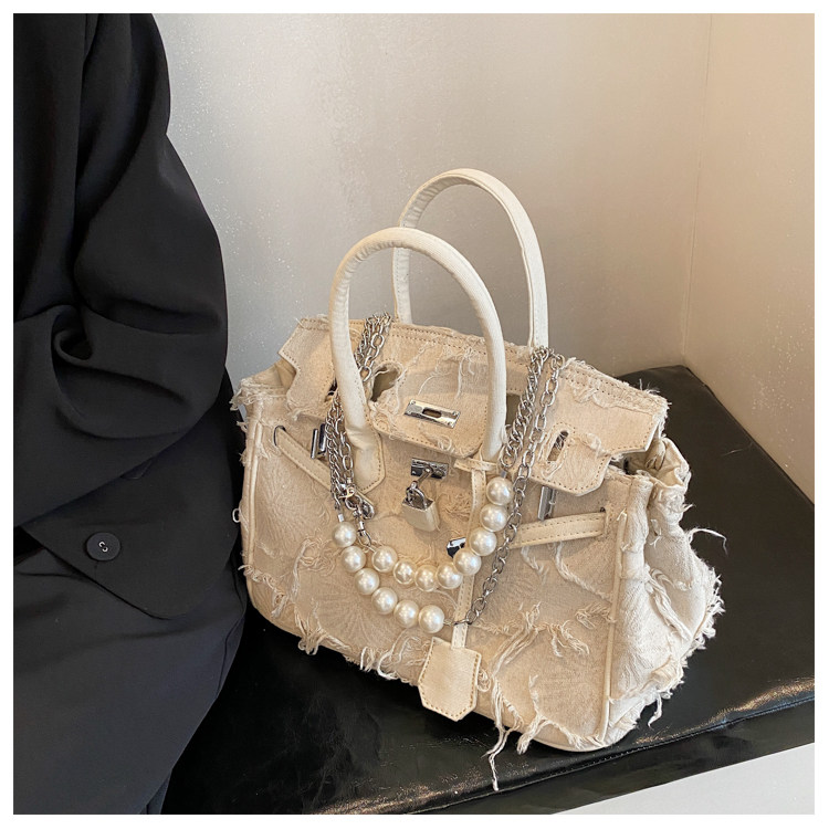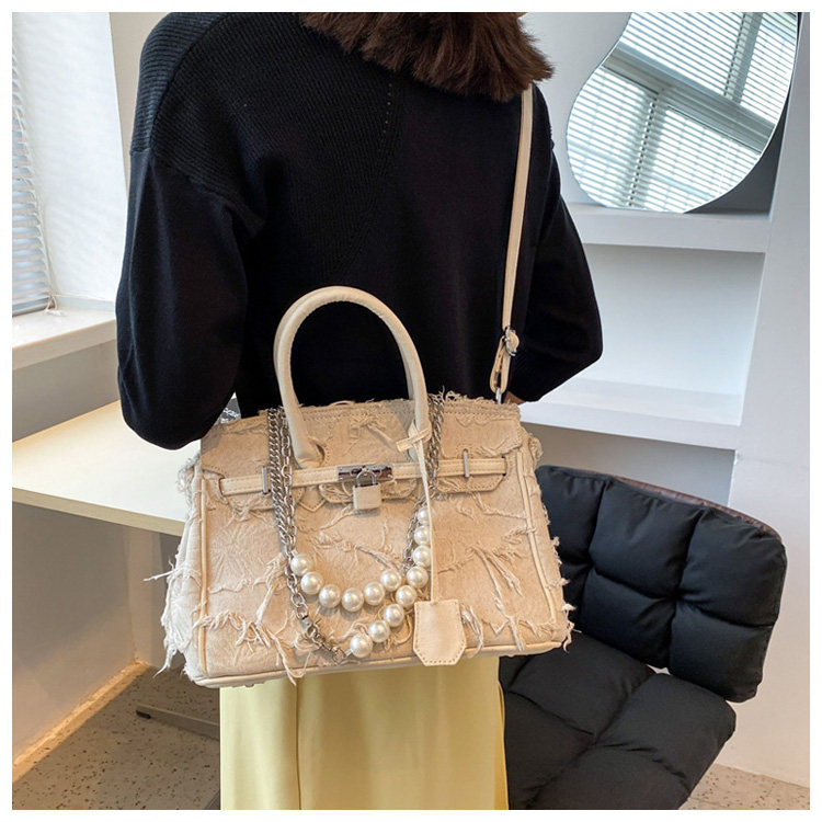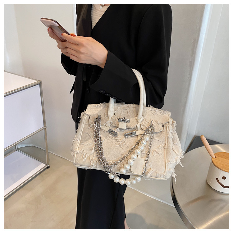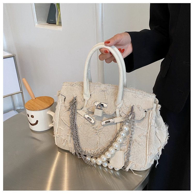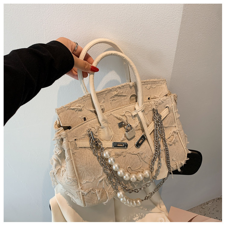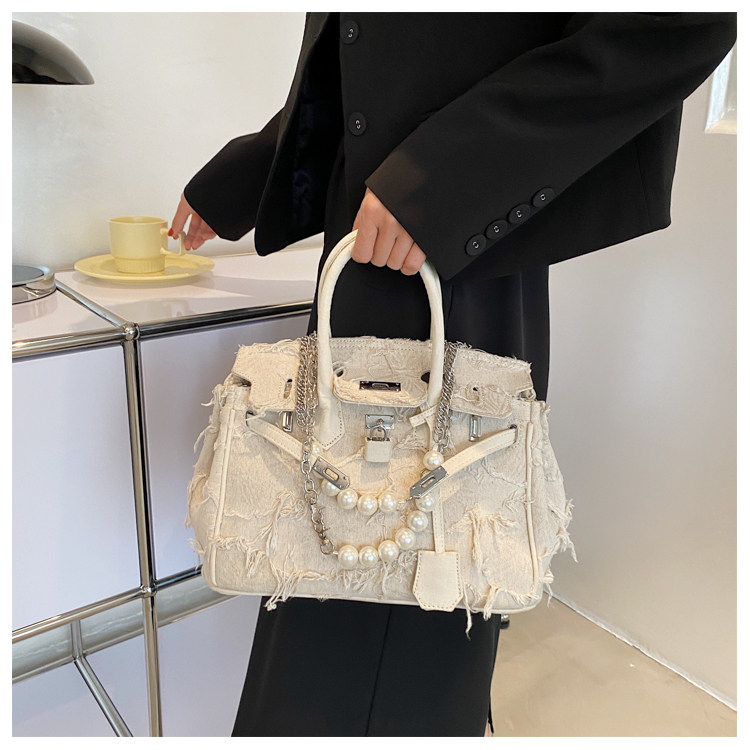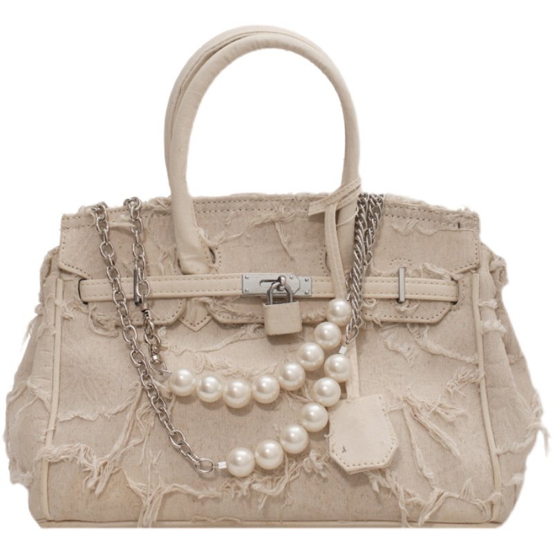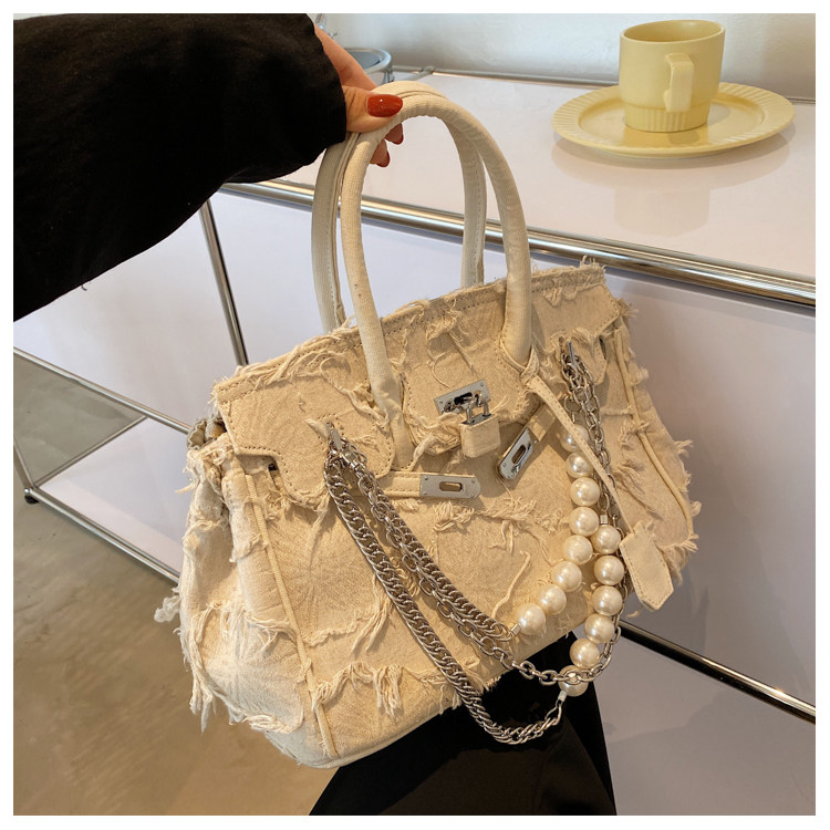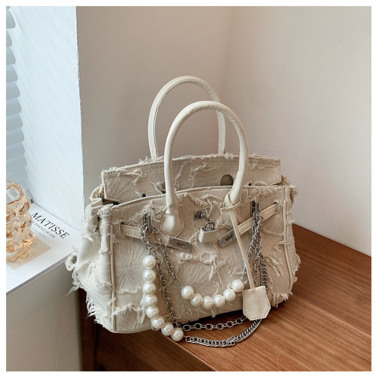 Niche retro platinum women's canvas tote bag hand-held messenger bag