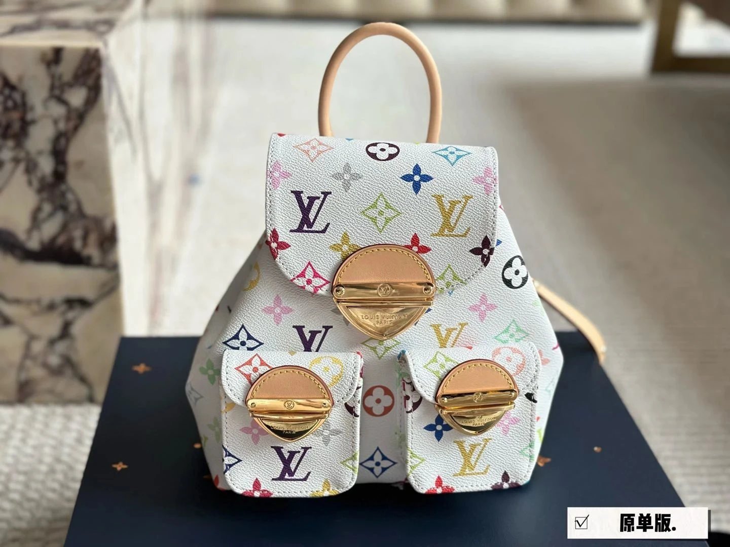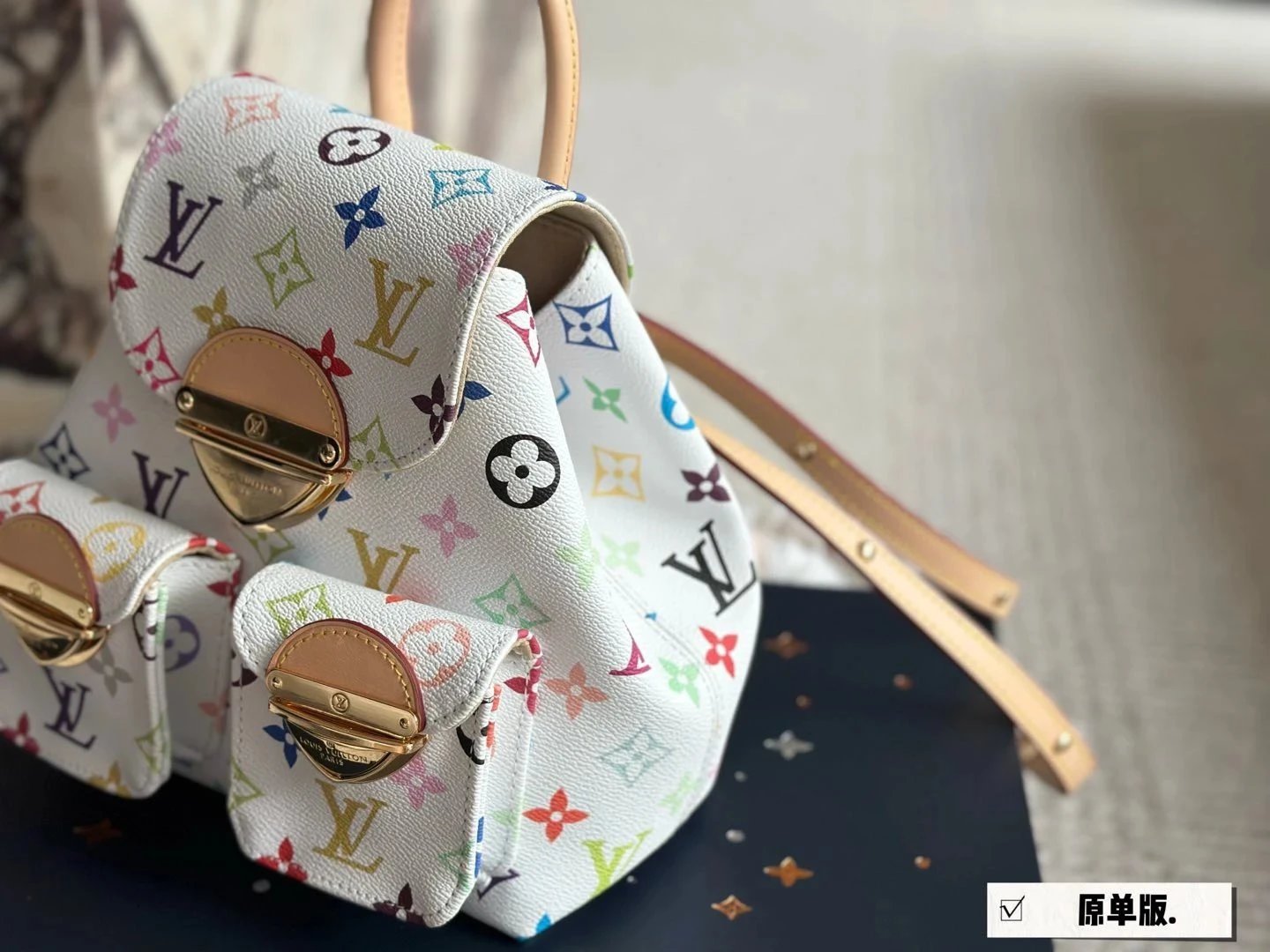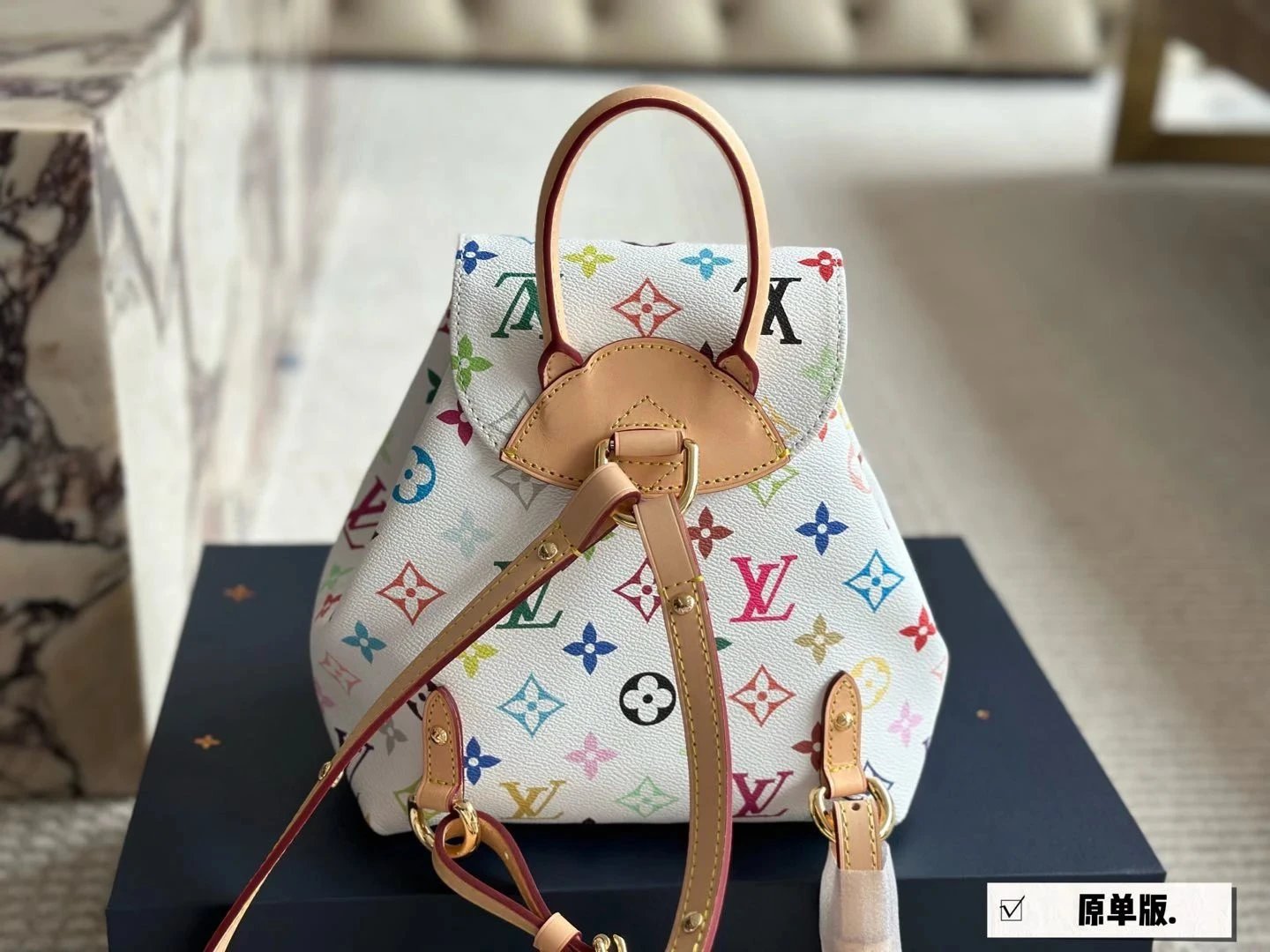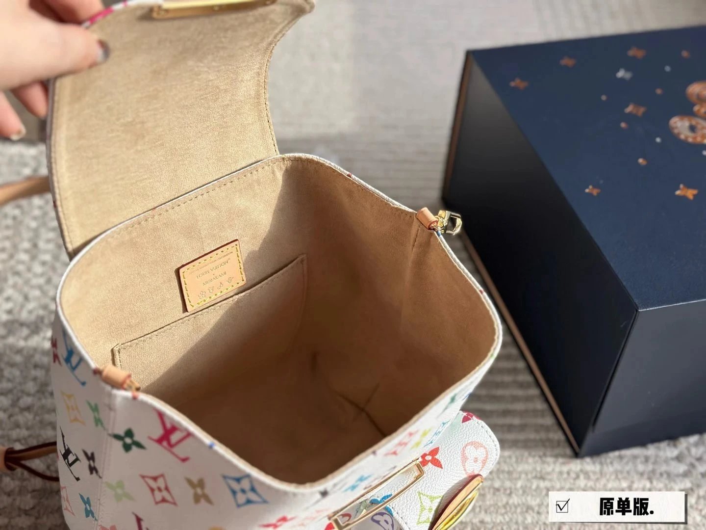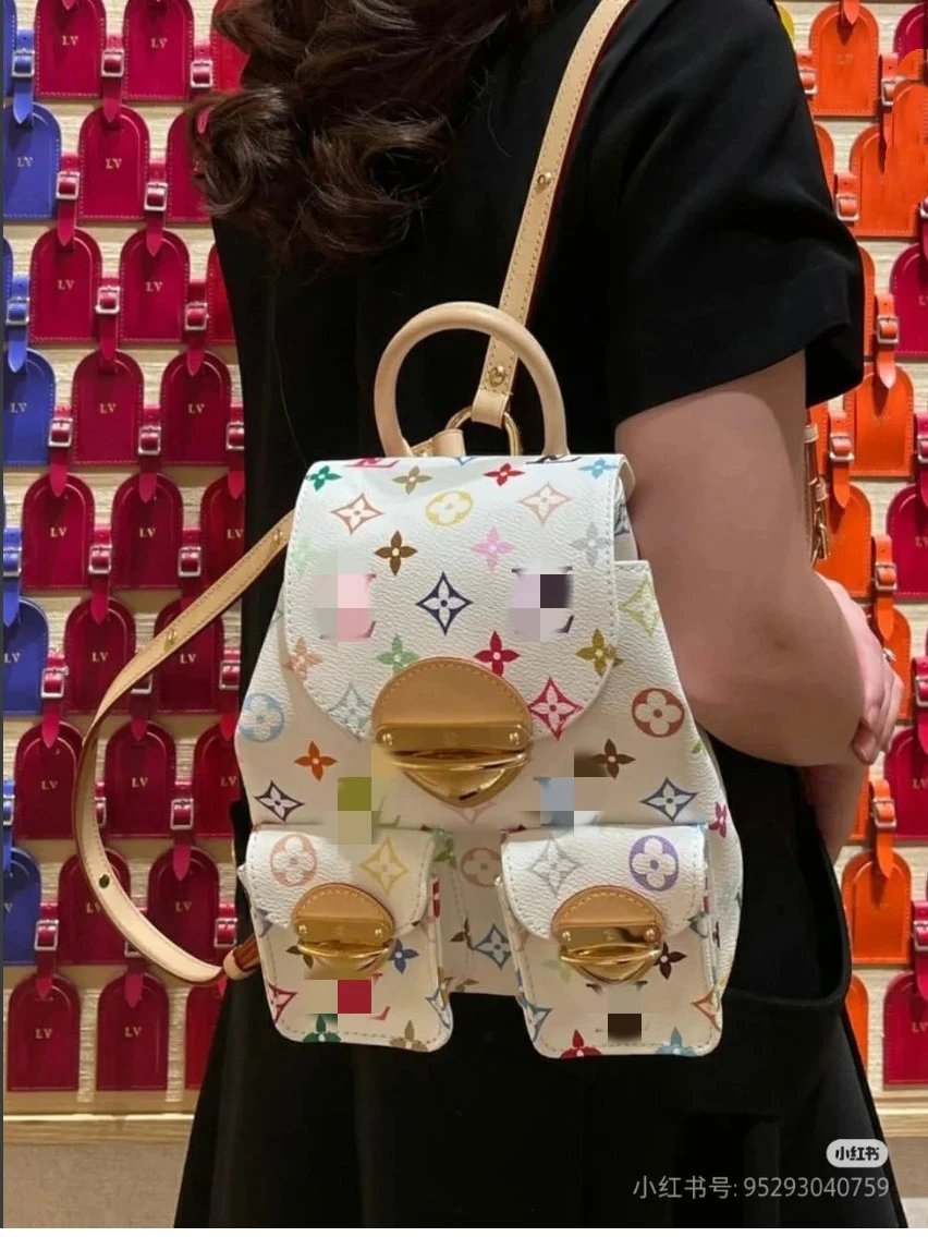 [**Original Order] 2024 TM Mur*k*mi T*k*shi Co-branded Small School Bag White Sancai Backpack Top Layer Cowhide Handbag Shoulder Bag Simple and High-end Full of Texture Xiaohongshu Heavy Industry Hardware Original Leather Gift Box Packaging
