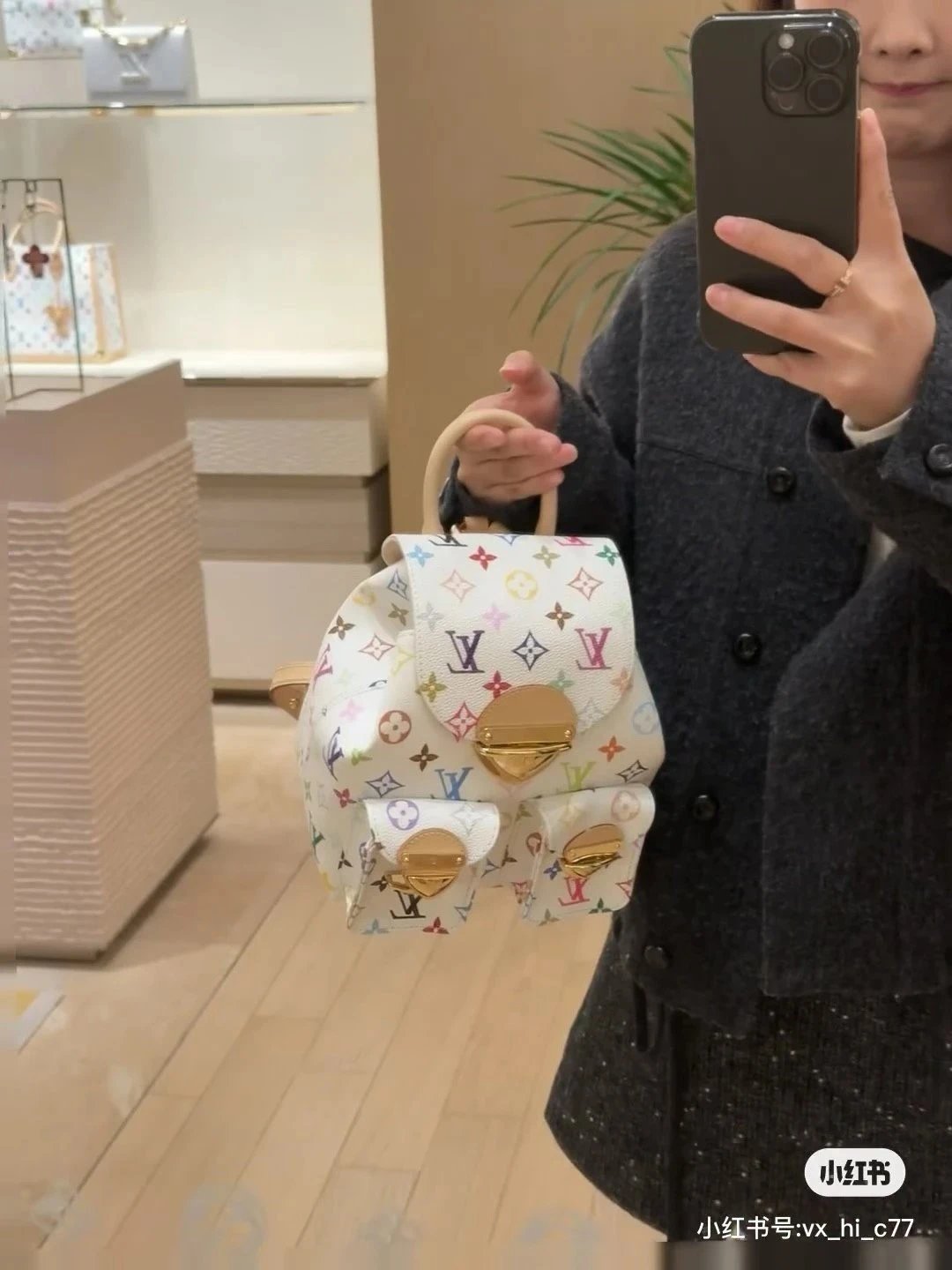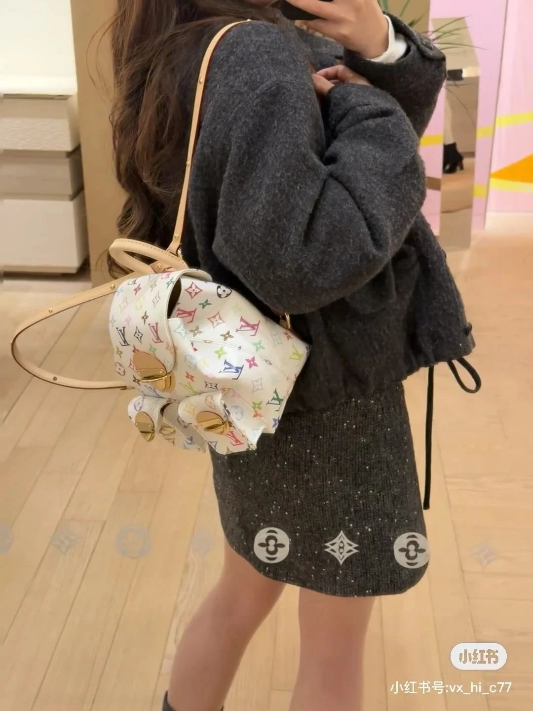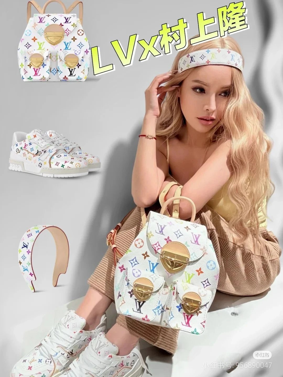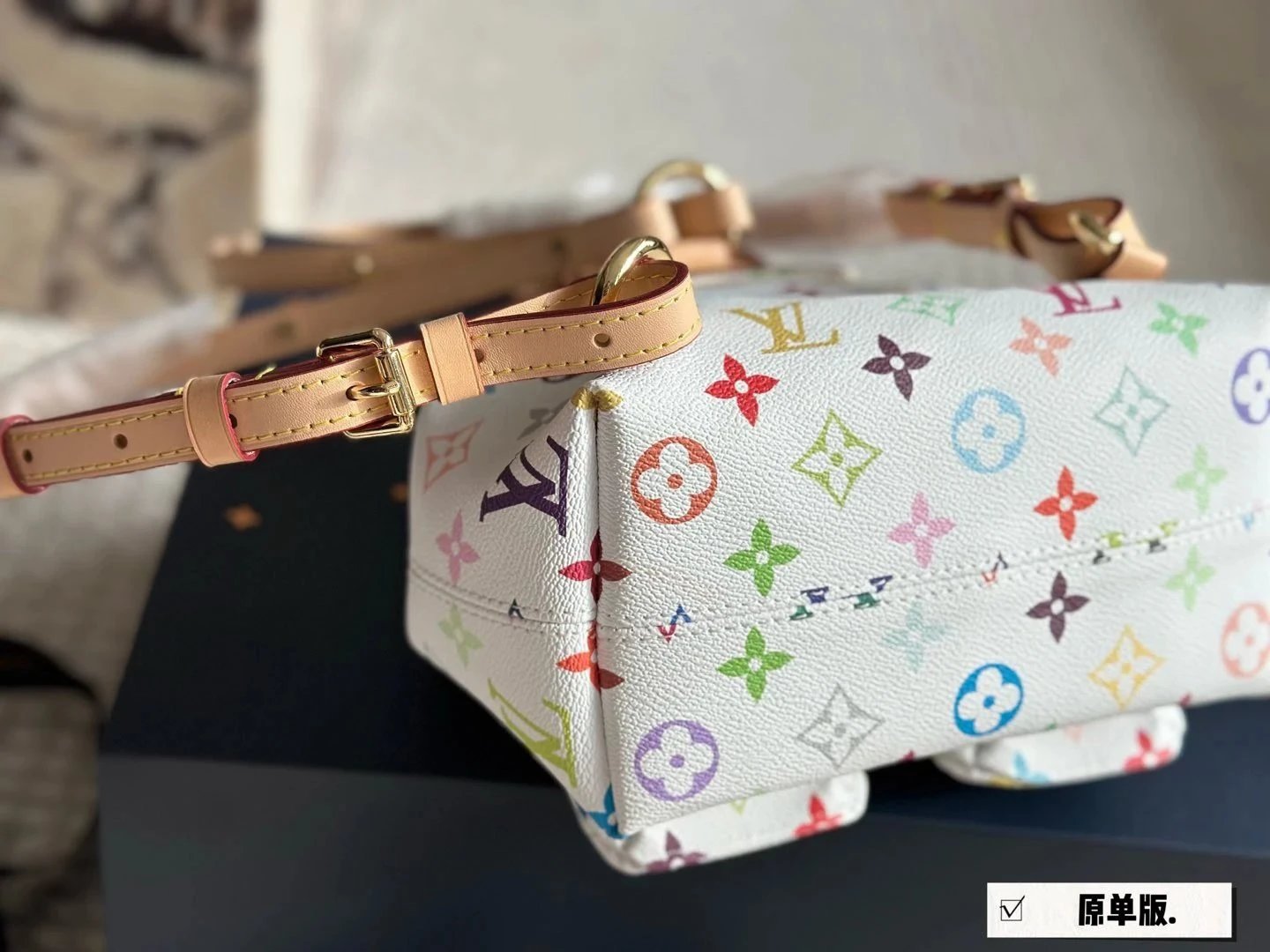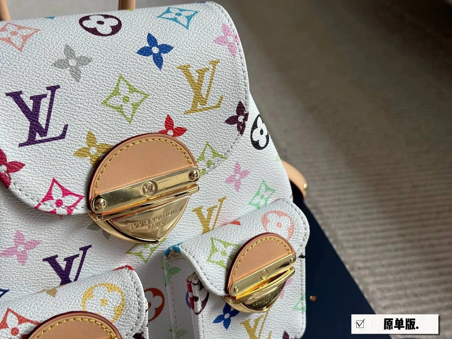 [**Original Order] 2024 TM Mur*k*mi T*k*shi Co-branded Small School Bag White Sancai Backpack Top Layer Cowhide Handbag Shoulder Bag Simple and High-end Full of Texture Xiaohongshu Heavy Industry Hardware Original Leather Gift Box Packaging