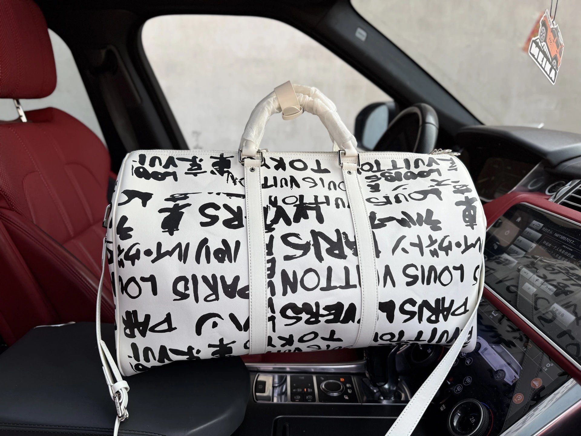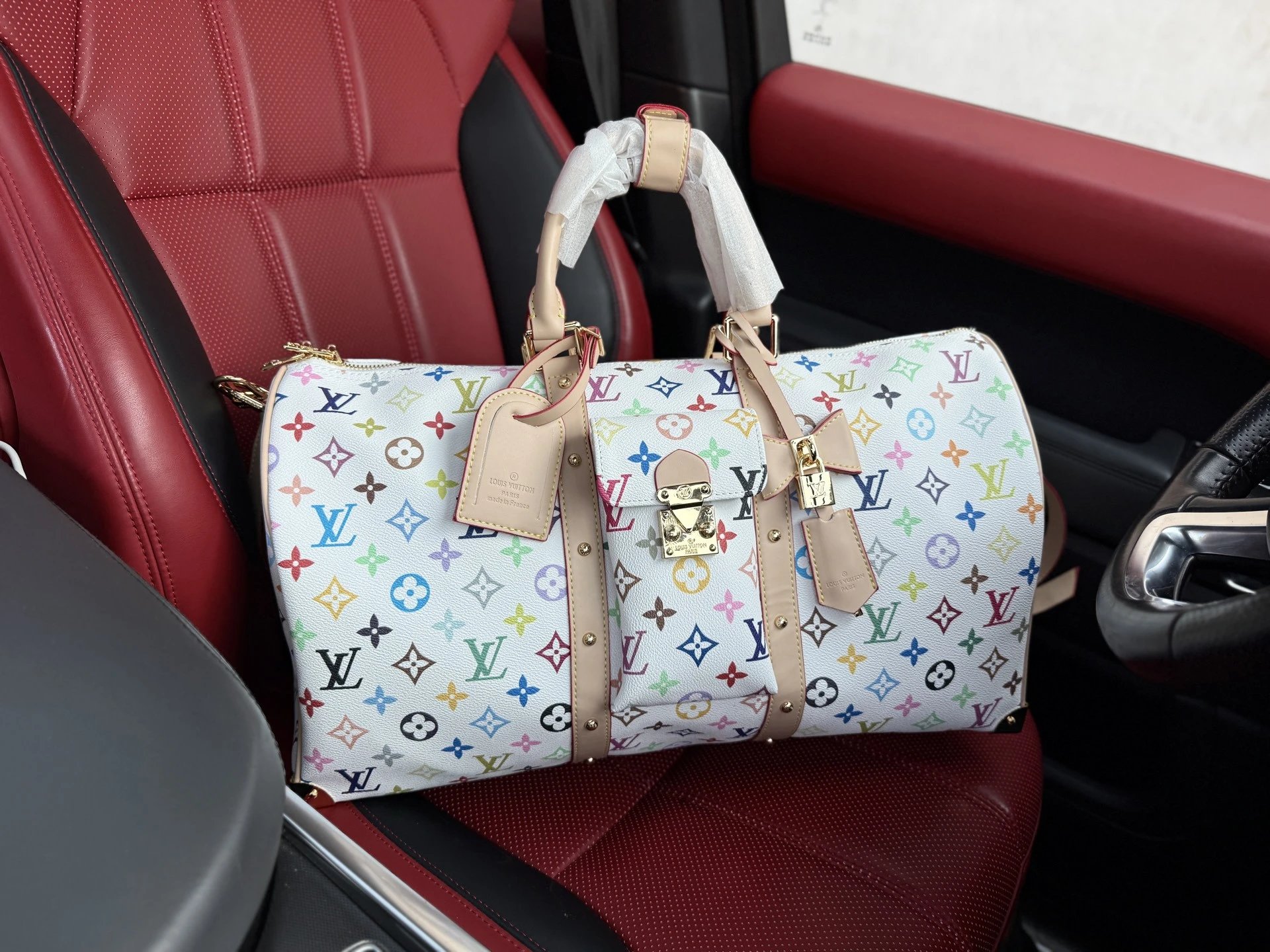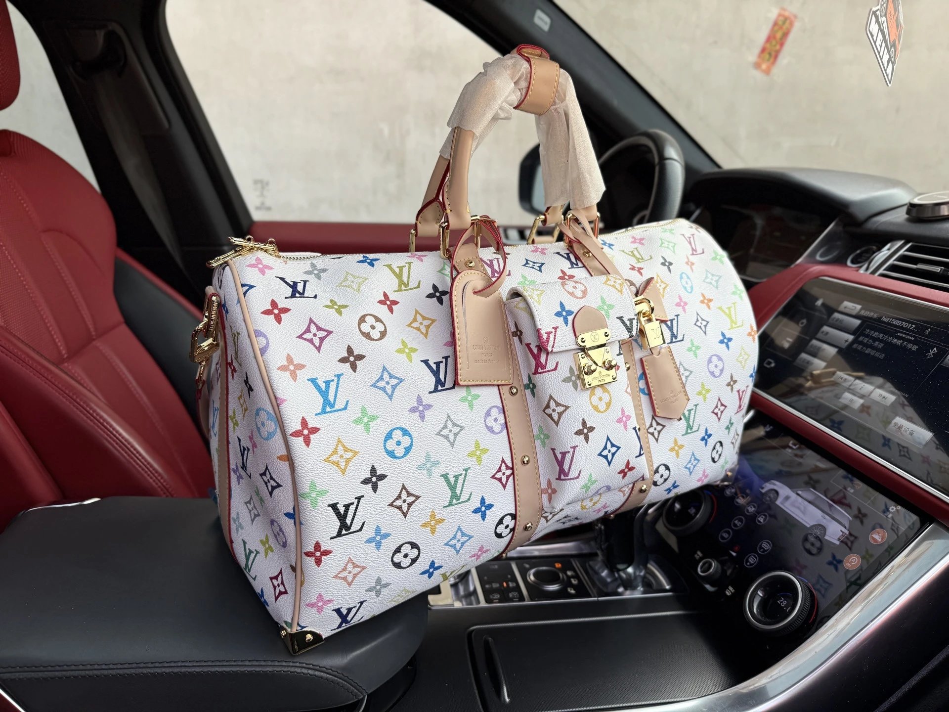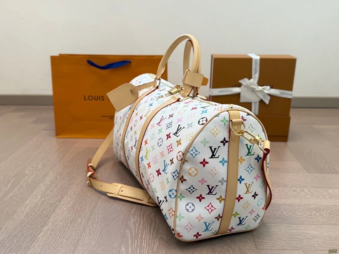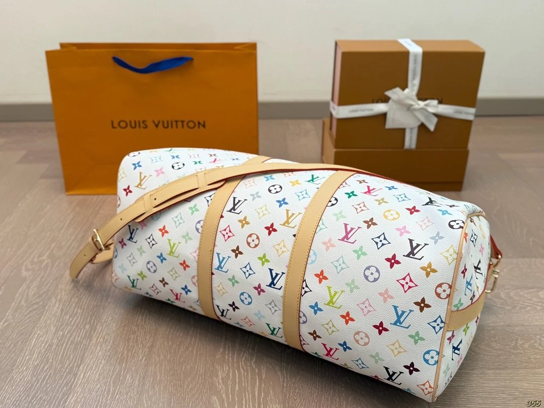[**Original Order] keepall White Color Travel Bag T*k*shi M*r*k*mi Handbag Luggage Bag Travel Essentials Unisex Satchel Hand Bag Black Tricolor Large Capacity Commuter Bag Shoulder Strap Adjustable Fashionable and Versatile Must-have
