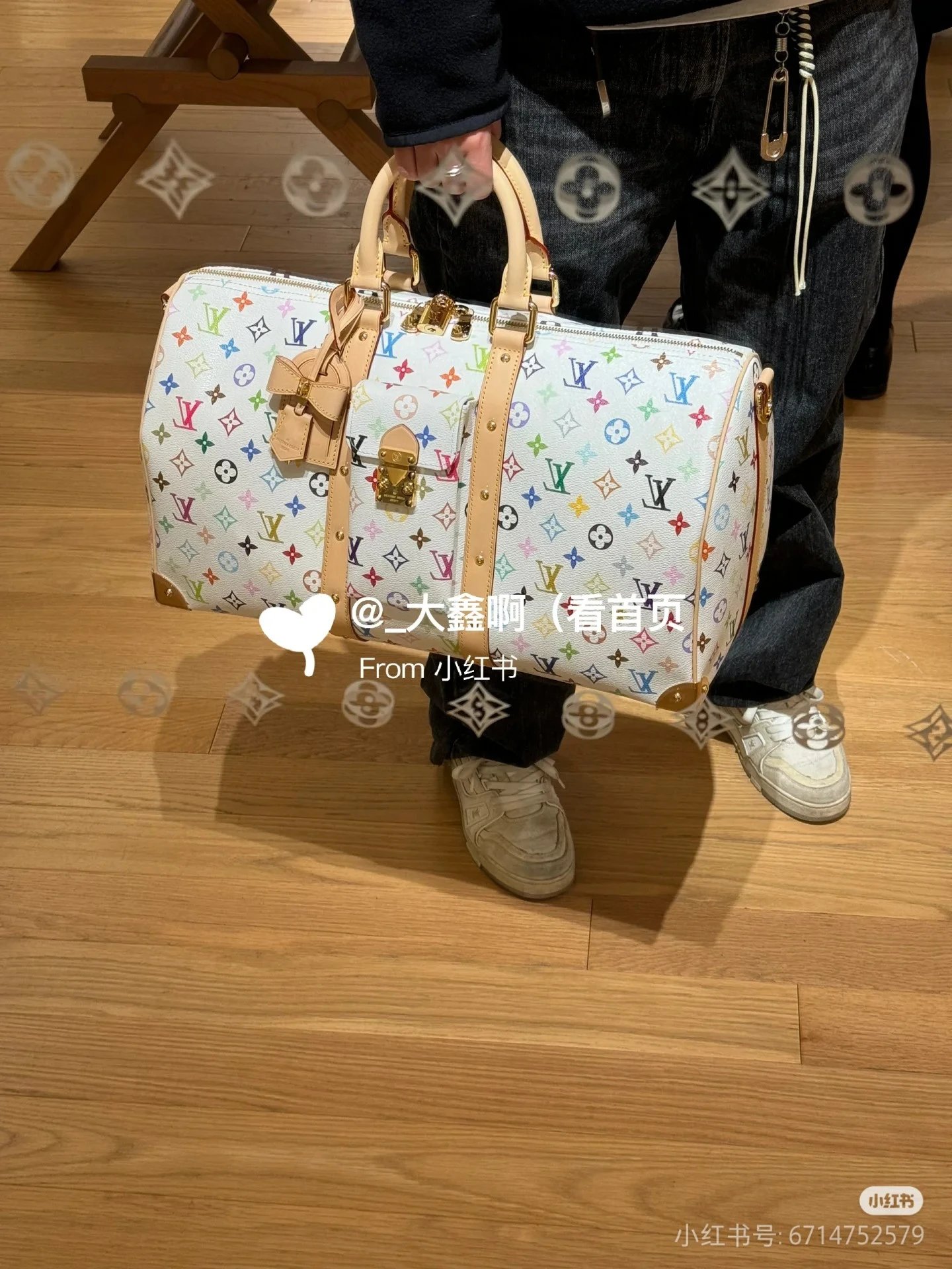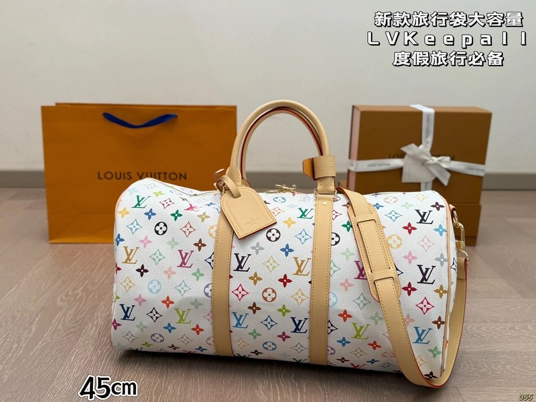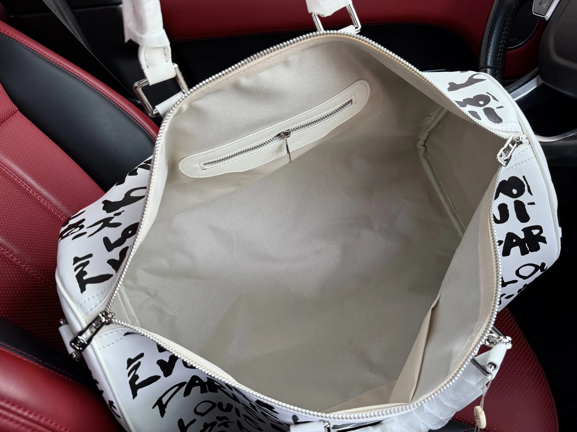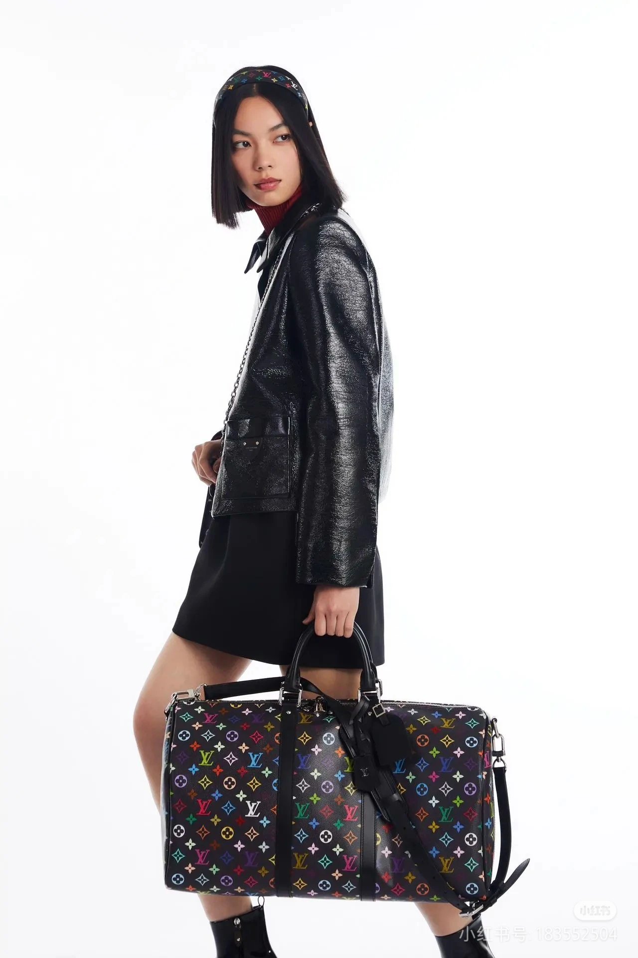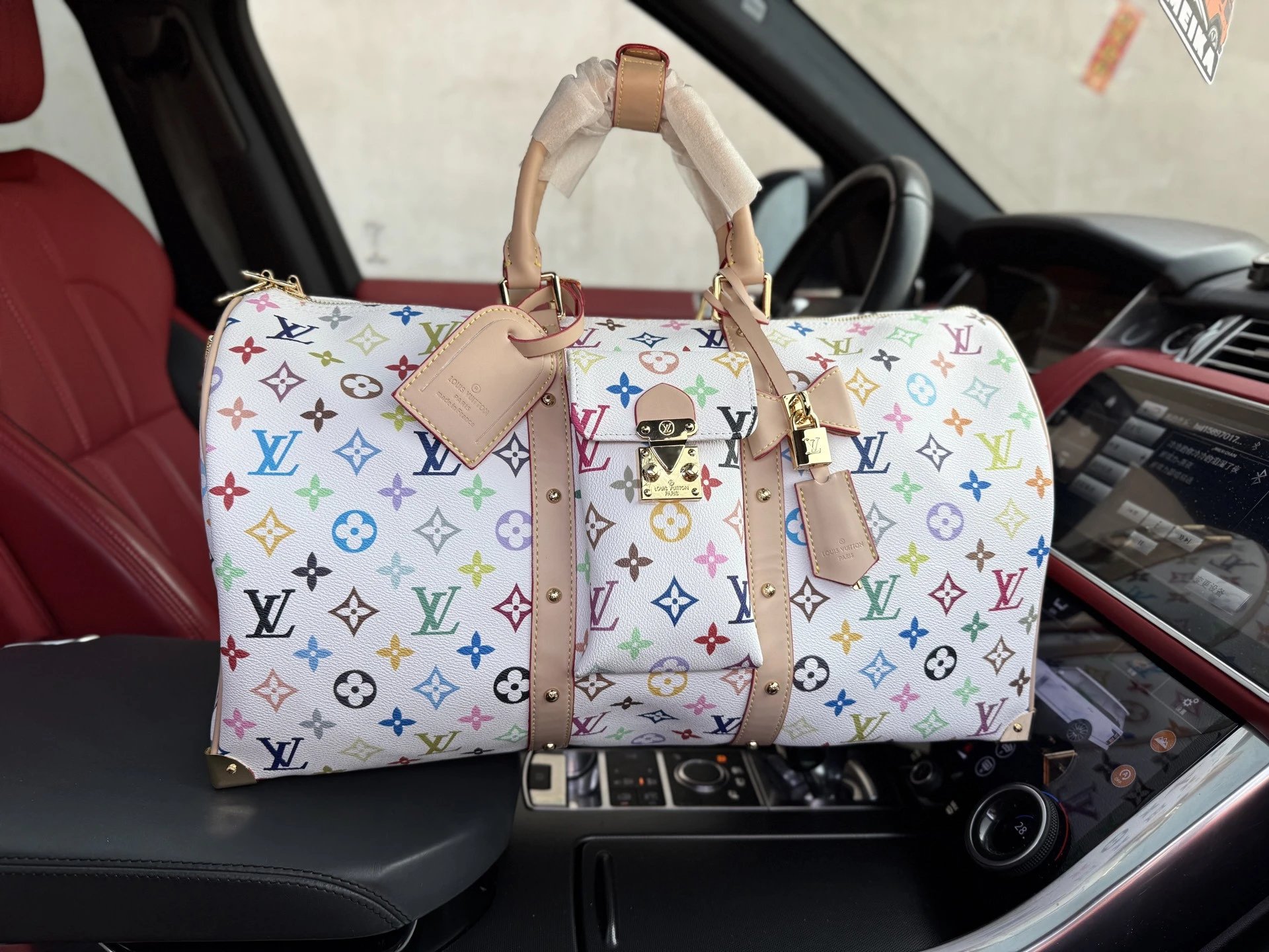 [**Original Order] keepall White Color Travel Bag T*k*shi M*r*k*mi Handbag Luggage Bag Travel Essentials Unisex Satchel Hand Bag Black Tricolor Large Capacity Commuter Bag Shoulder Strap Adjustable Fashionable and Versatile Must-have
