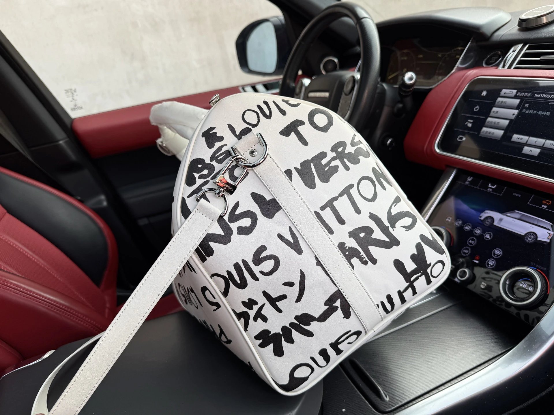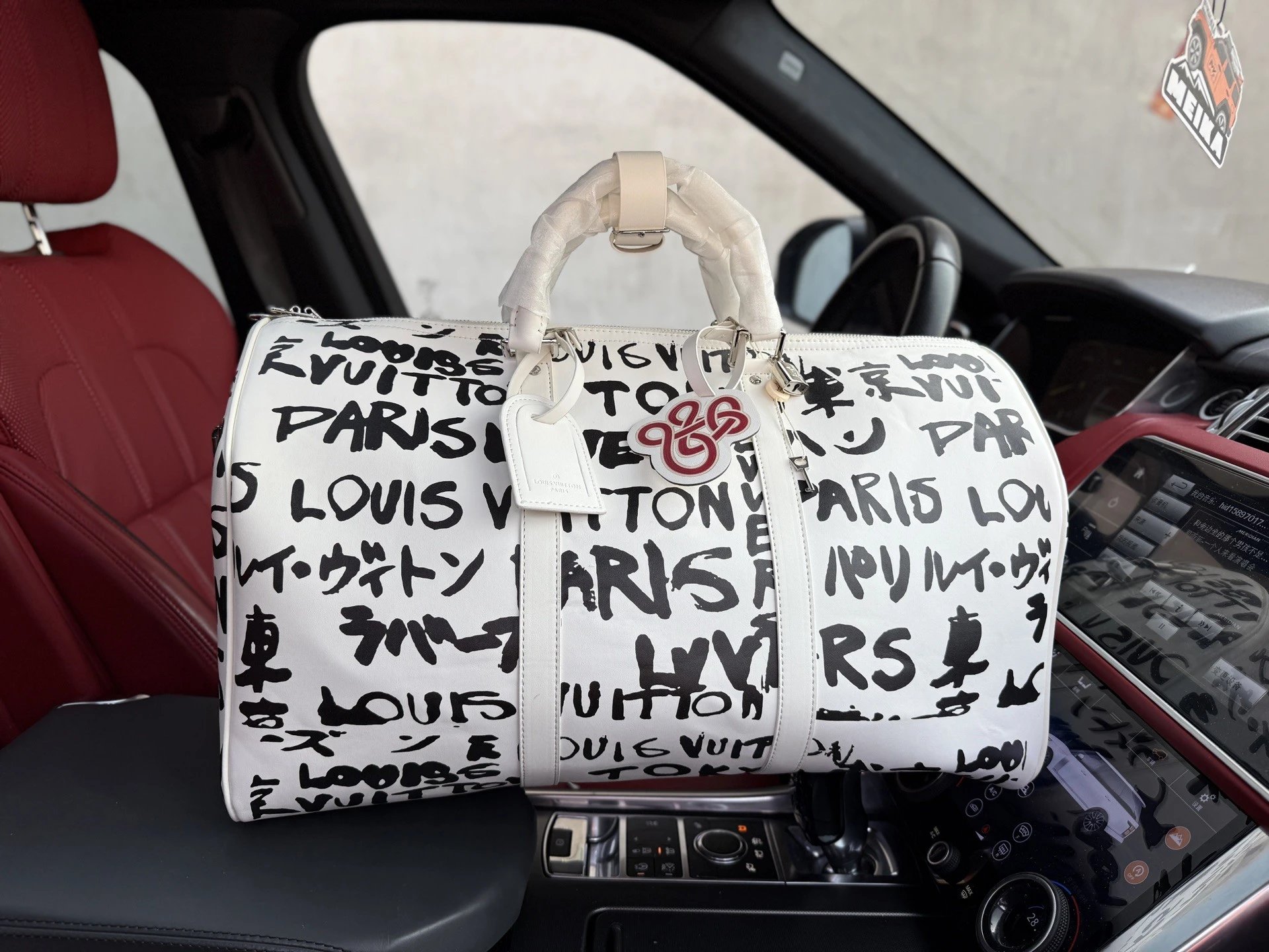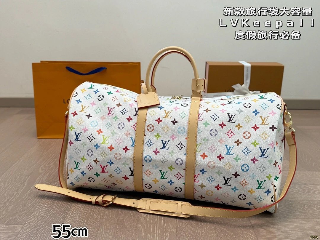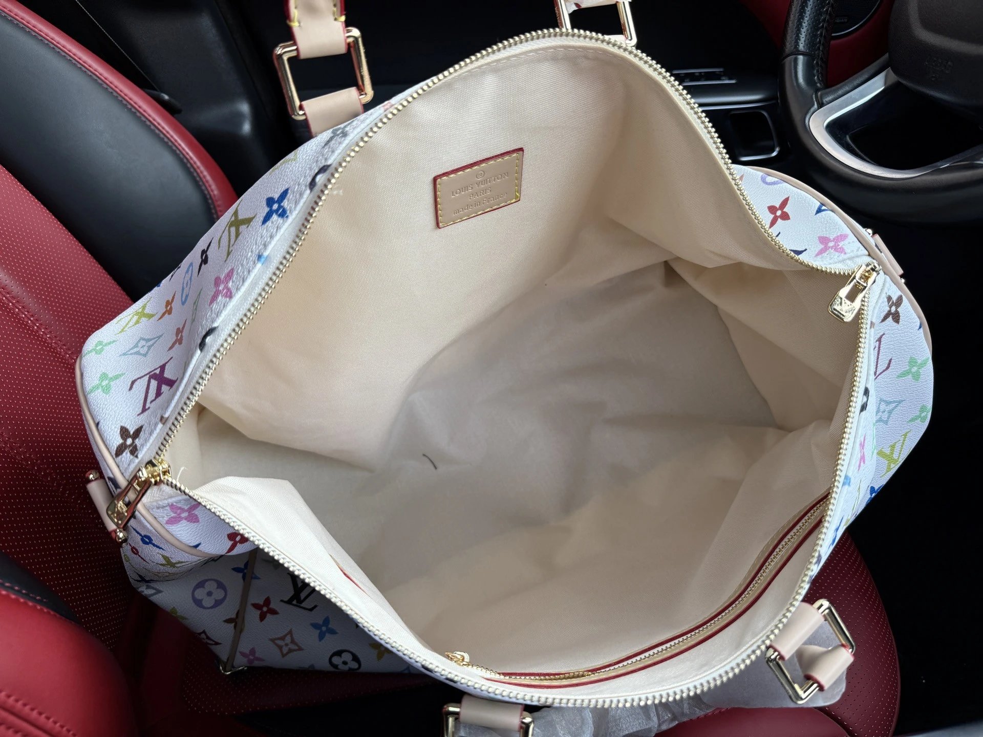 [**Original Order] keepall White Color Travel Bag T*k*shi M*r*k*mi Handbag Luggage Bag Travel Essentials Unisex Satchel Hand Bag Black Tricolor Large Capacity Commuter Bag Shoulder Strap Adjustable Fashionable and Versatile Must-have