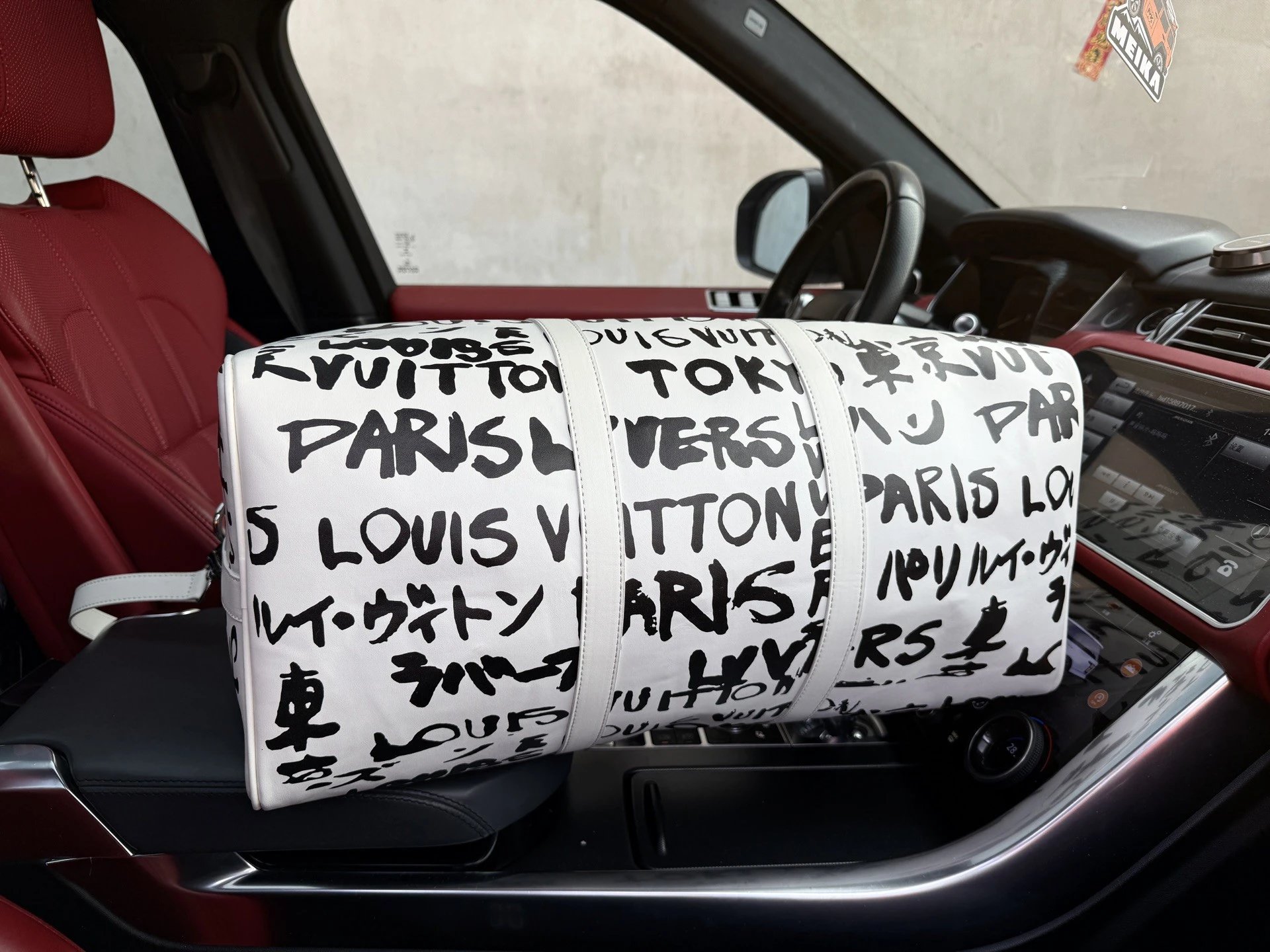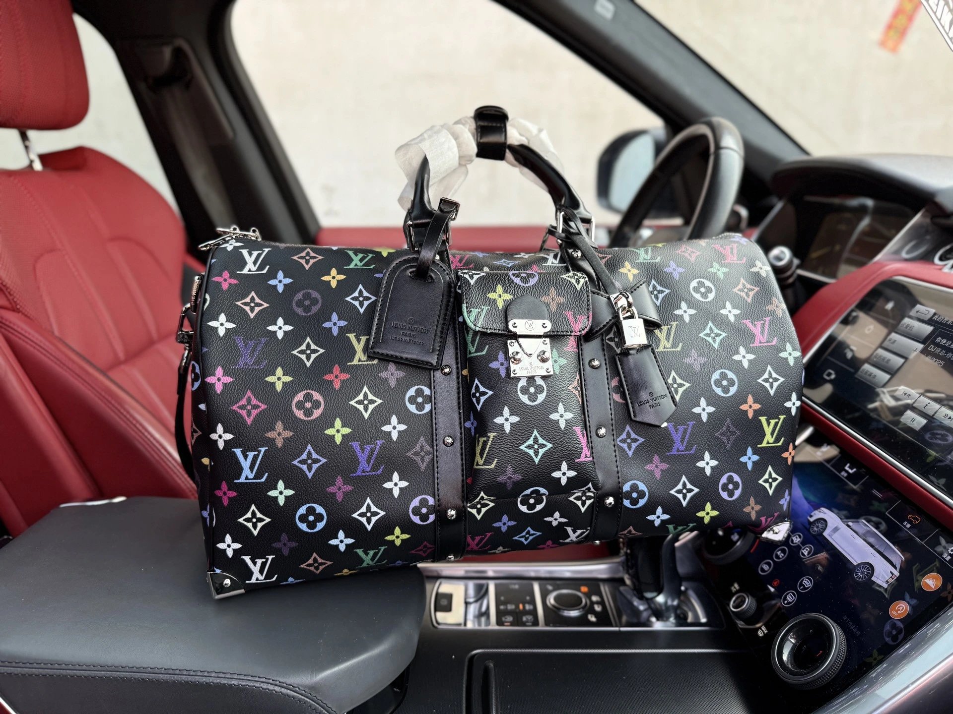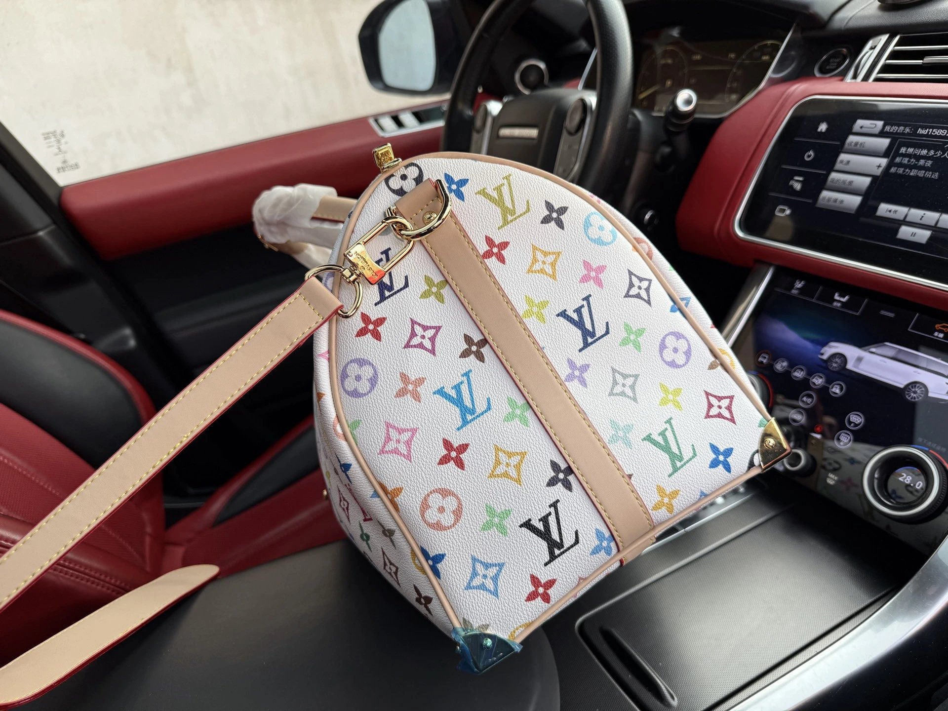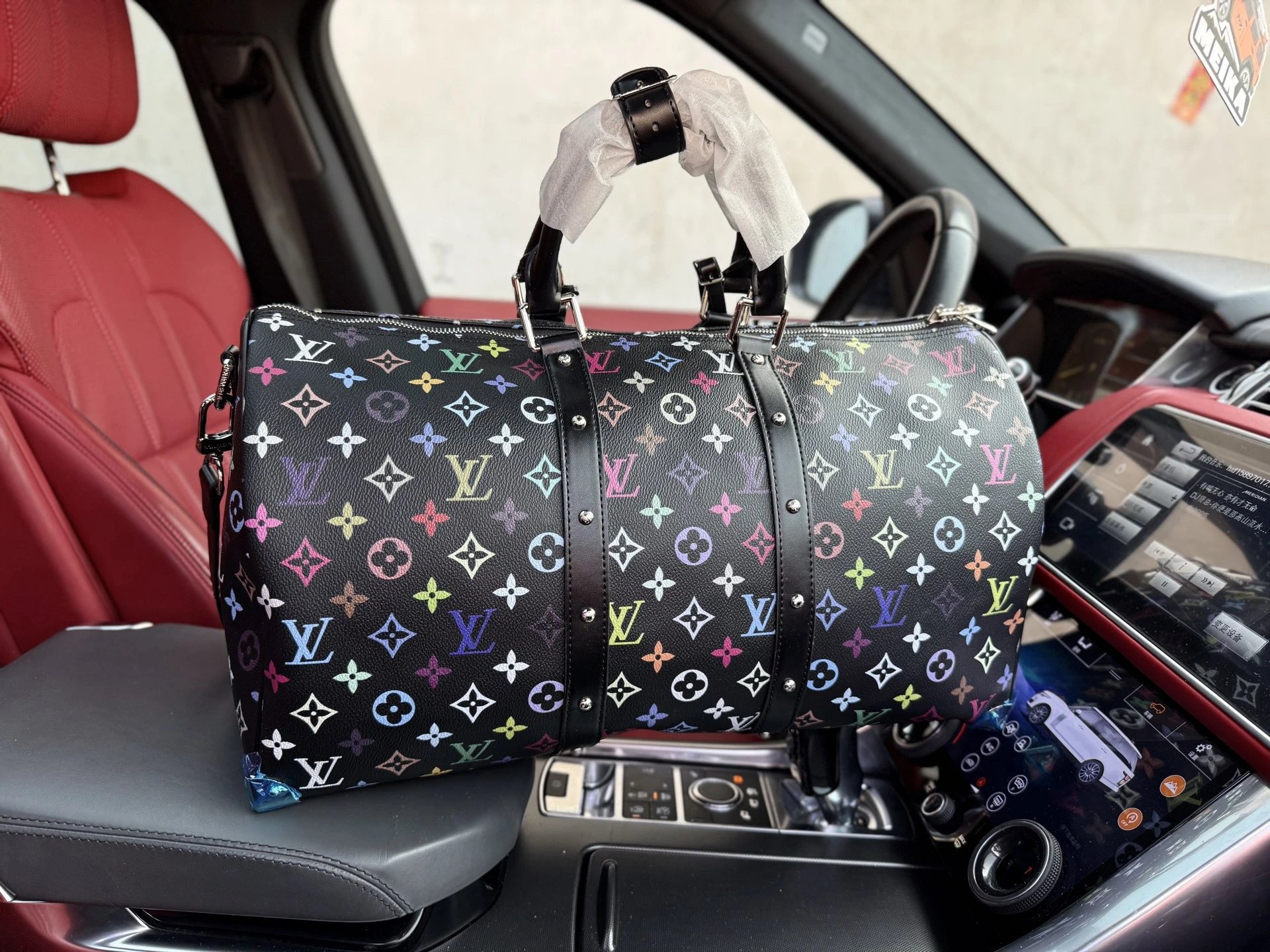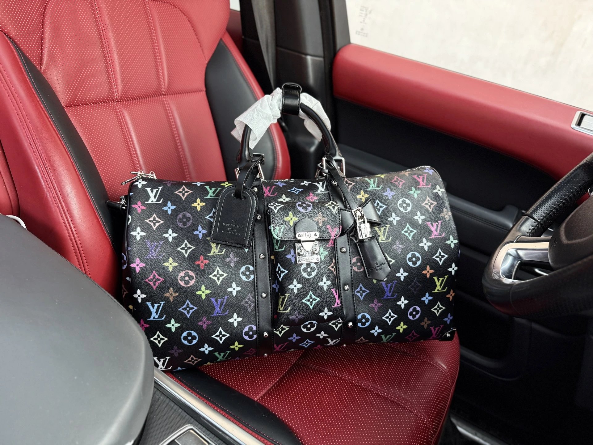 [**Original Order] keepall White Color Travel Bag T*k*shi M*r*k*mi Handbag Luggage Bag Travel Essentials Unisex Satchel Hand Bag Black Tricolor Large Capacity Commuter Bag Shoulder Strap Adjustable Fashionable and Versatile Must-have