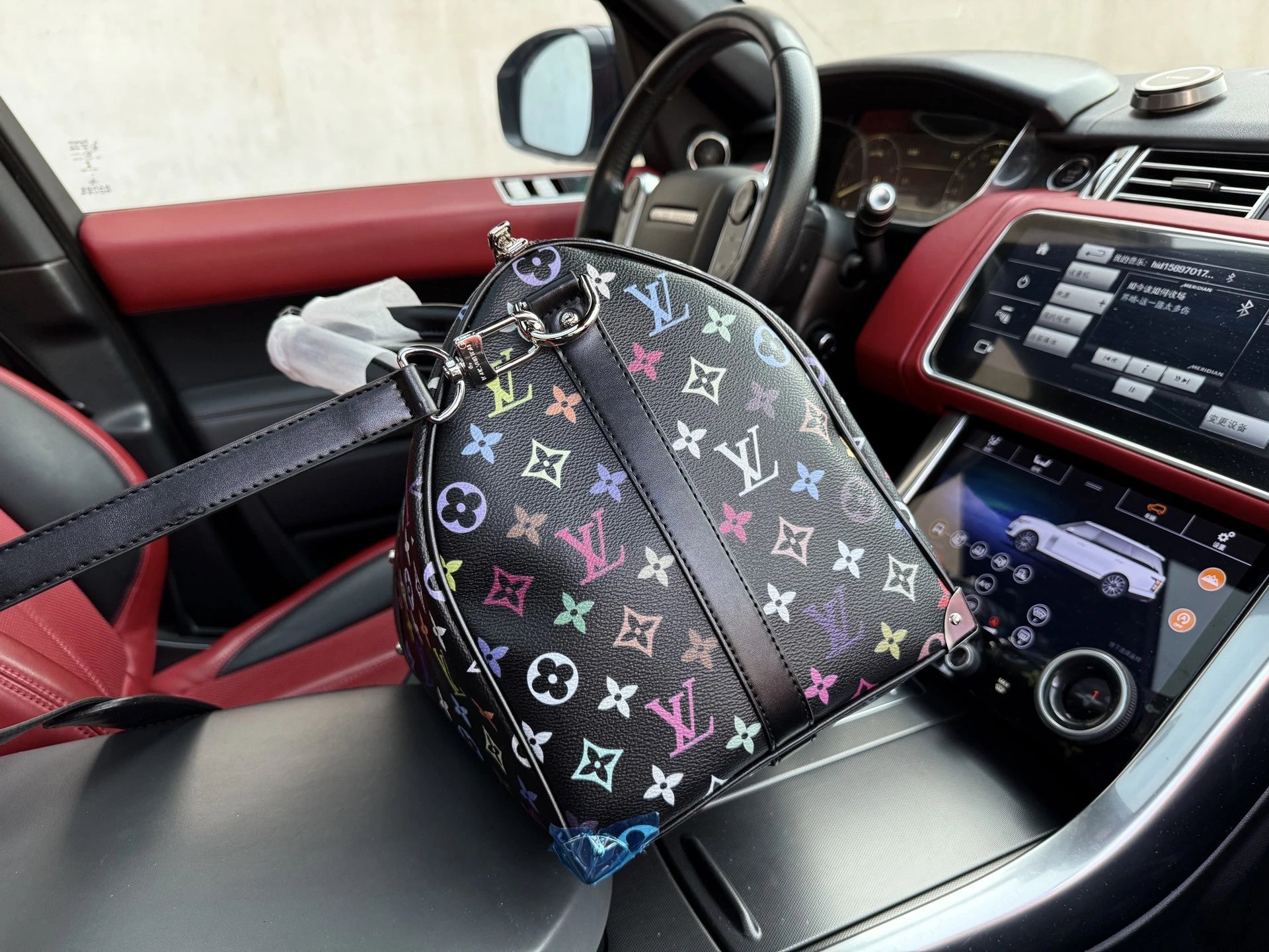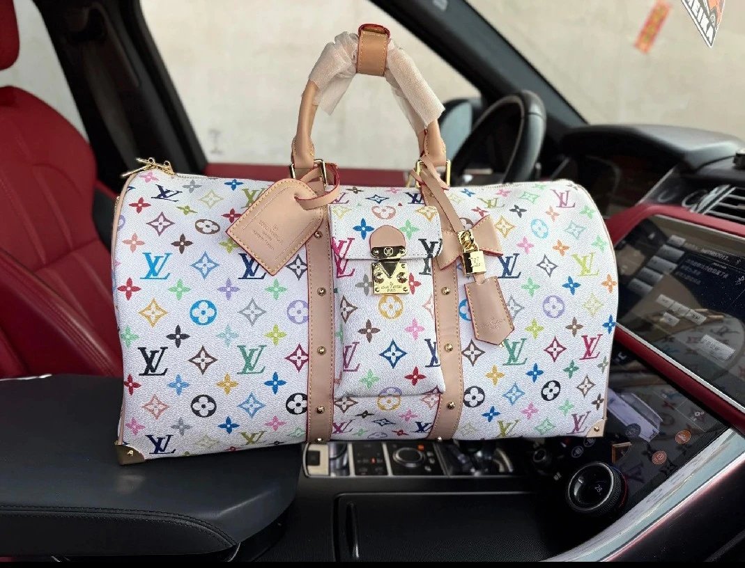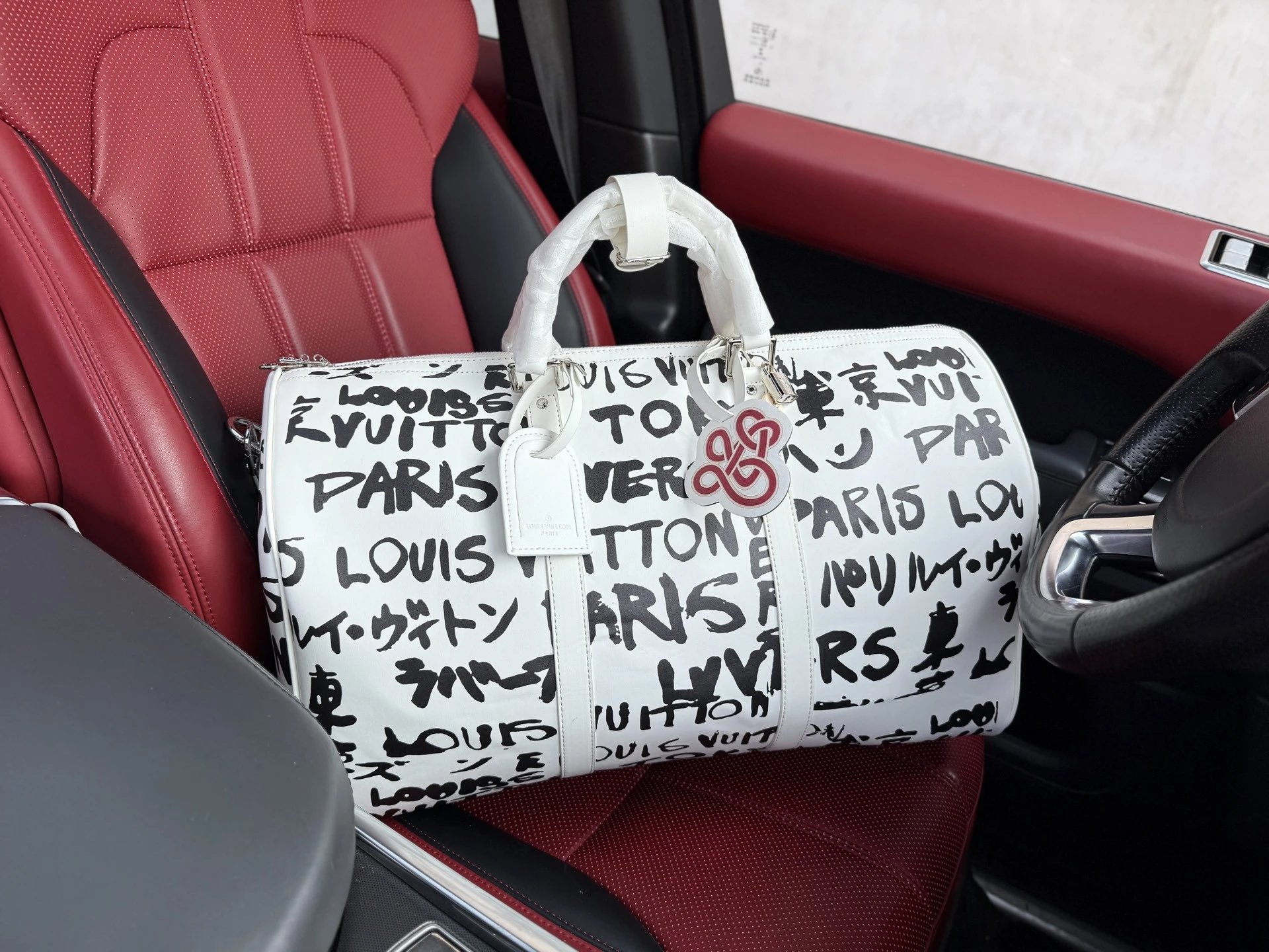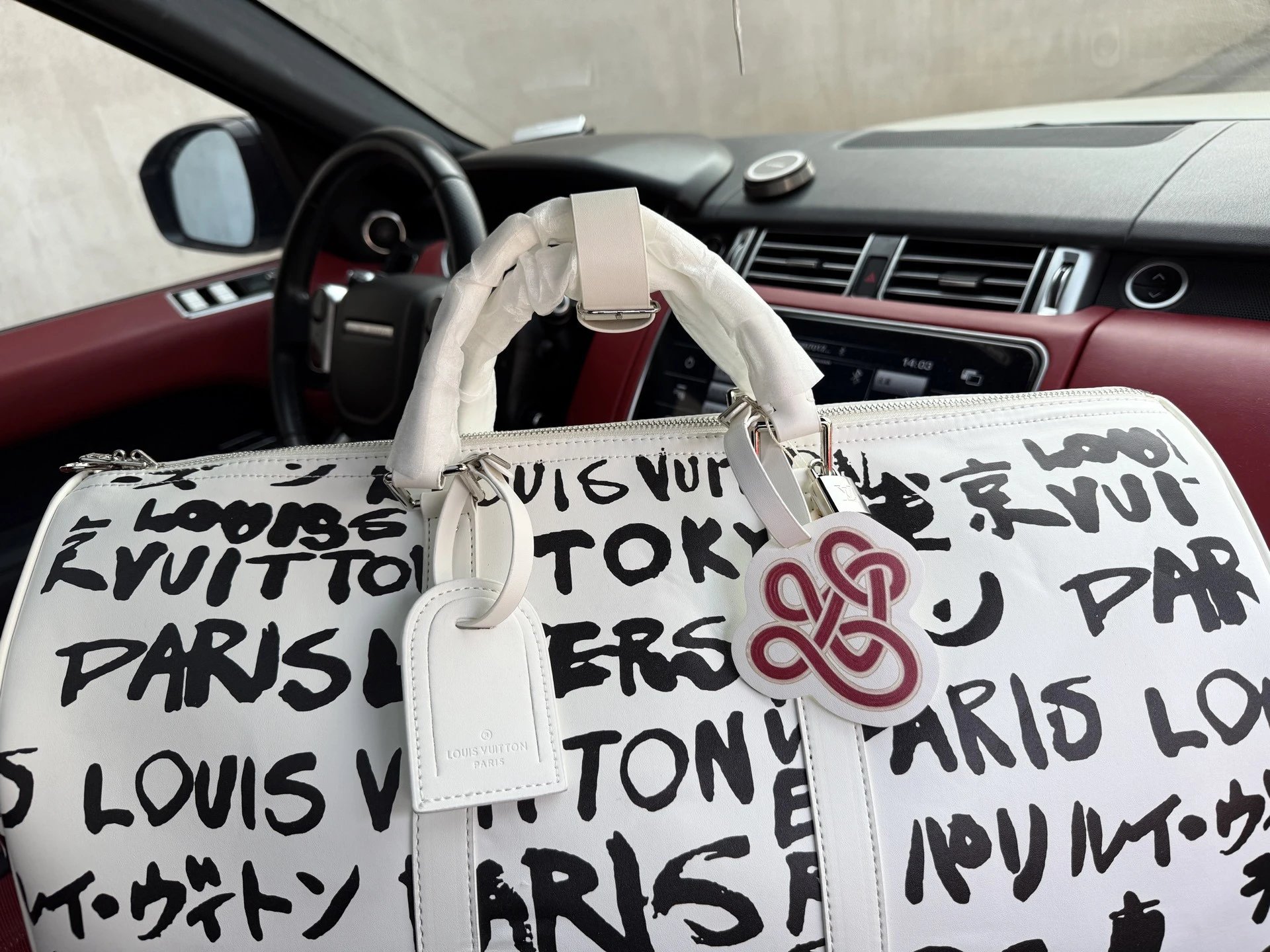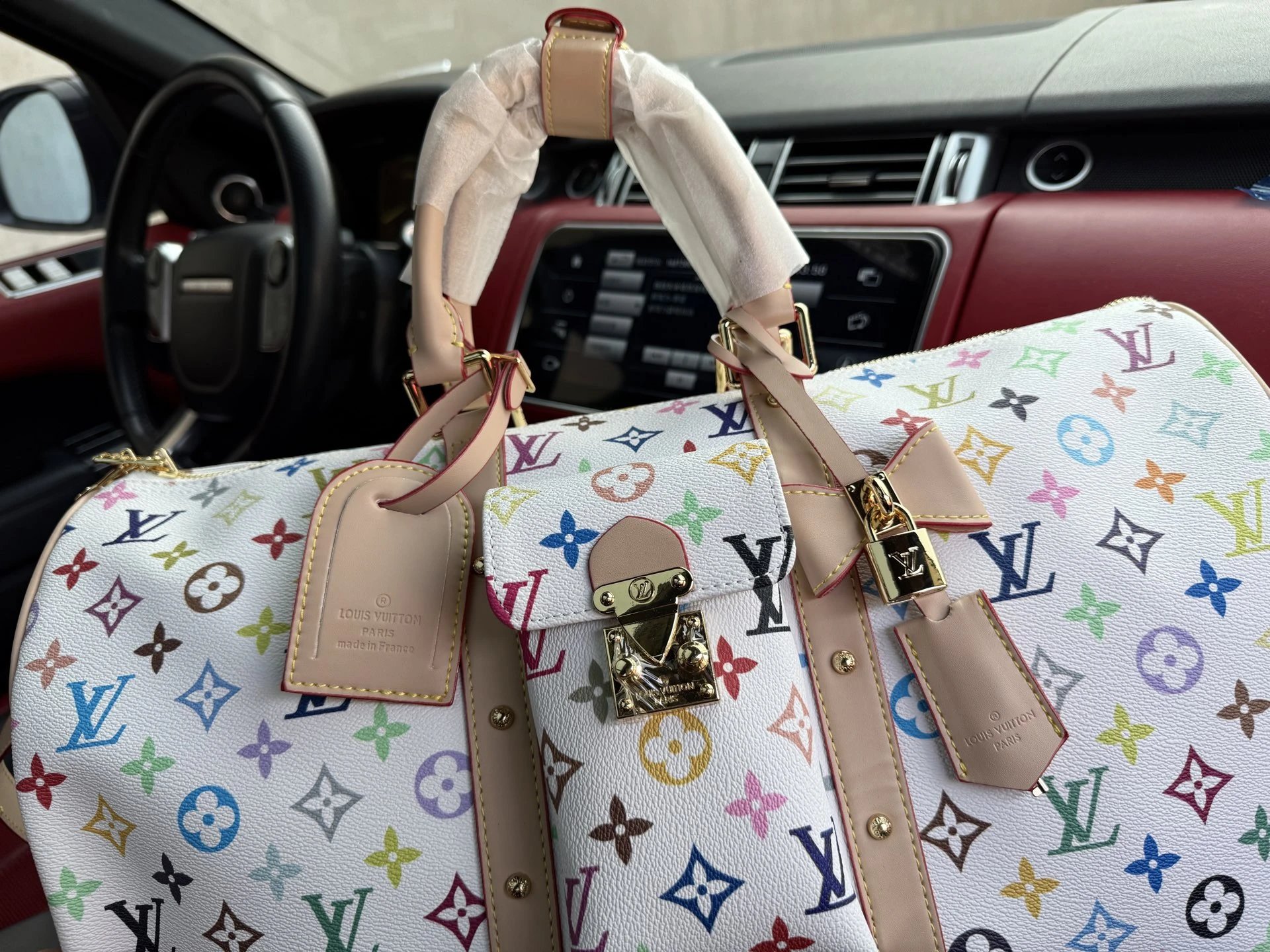 [**Original Order] keepall White Color Travel Bag T*k*shi M*r*k*mi Handbag Luggage Bag Travel Essentials Unisex Satchel Hand Bag Black Tricolor Large Capacity Commuter Bag Shoulder Strap Adjustable Fashionable and Versatile Must-have
