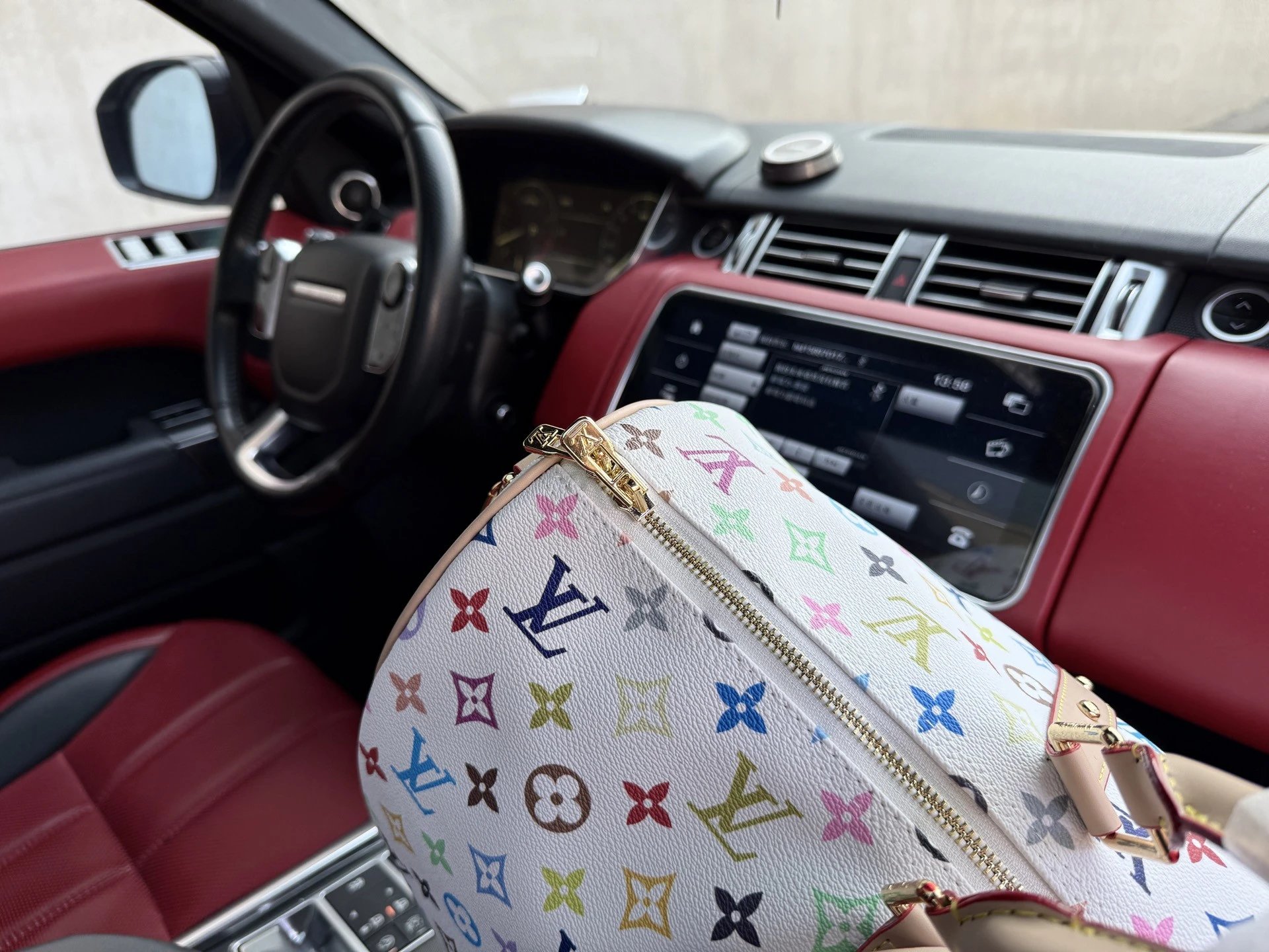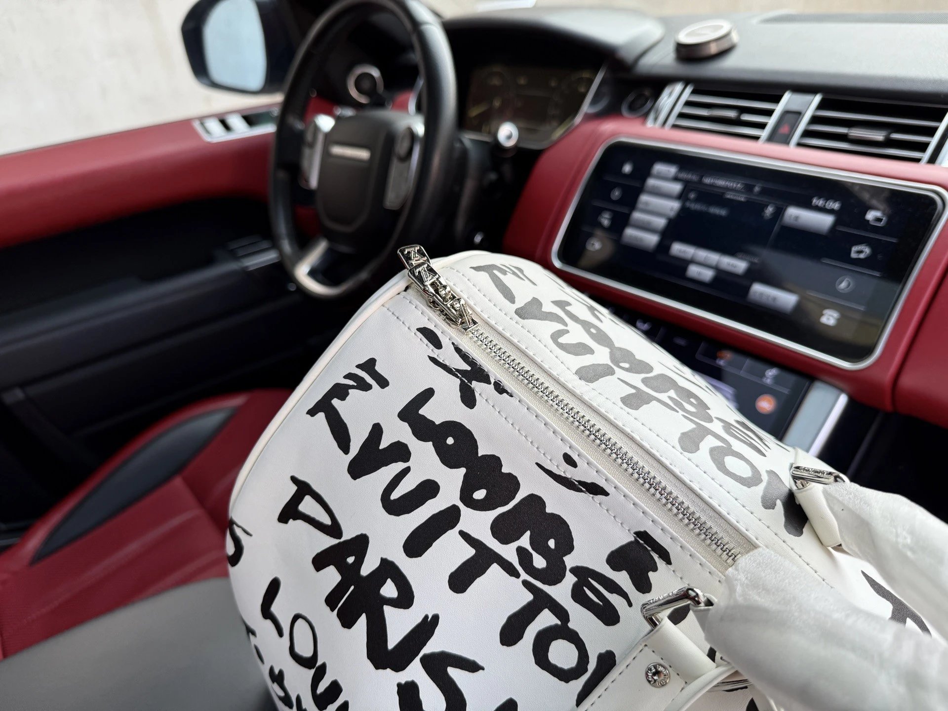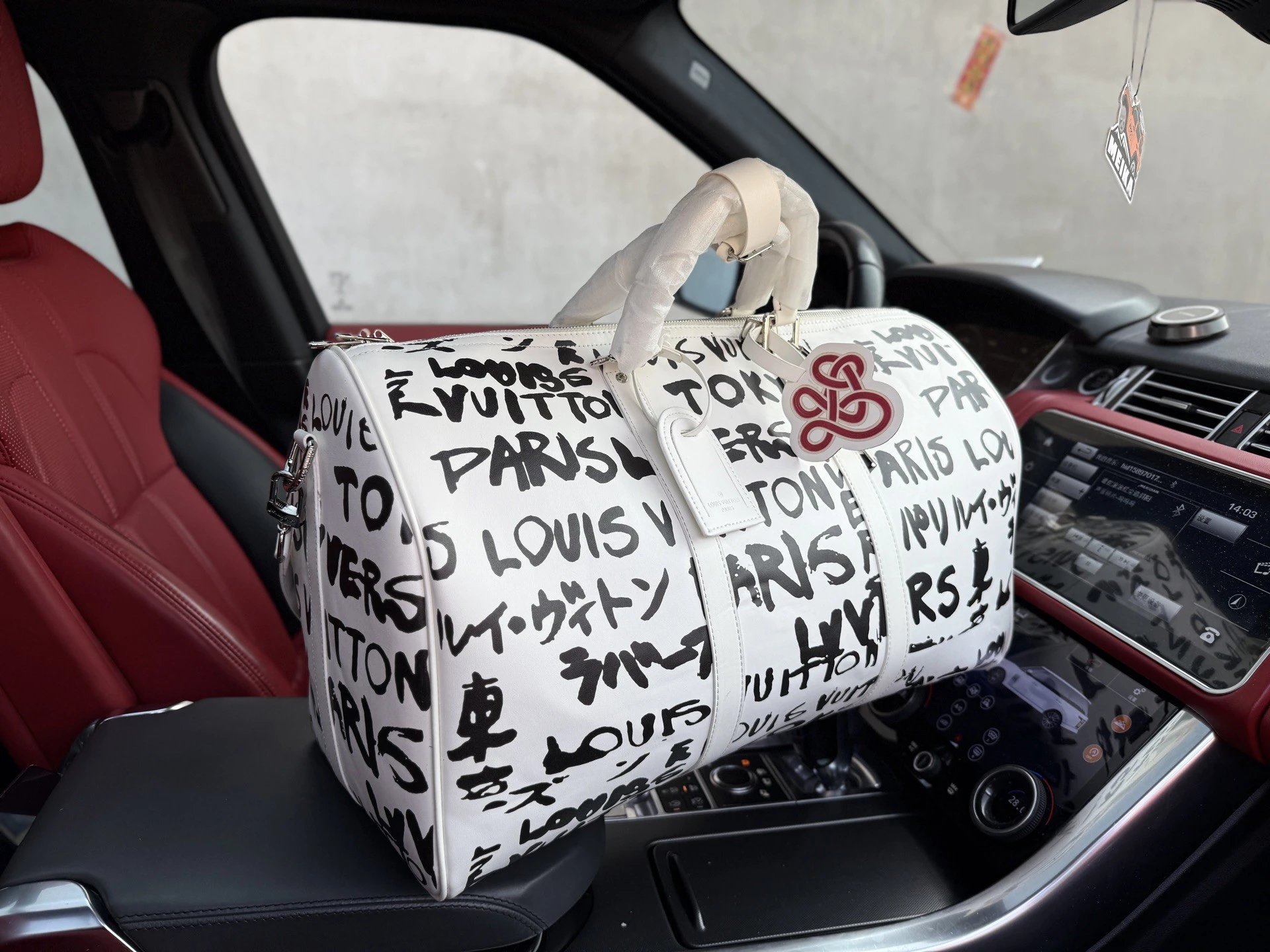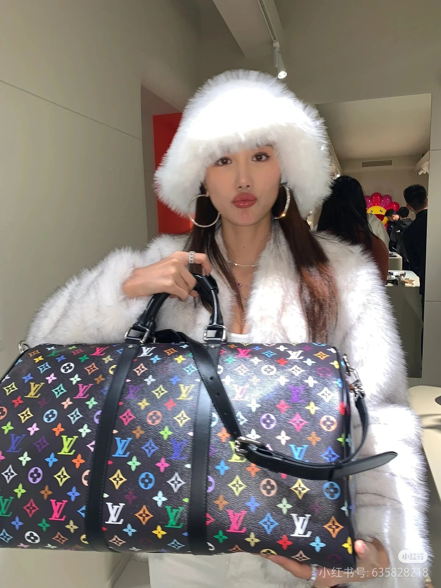 [**Original Order] keepall White Color Travel Bag T*k*shi M*r*k*mi Handbag Luggage Bag Travel Essentials Unisex Satchel Hand Bag Black Tricolor Large Capacity Commuter Bag Shoulder Strap Adjustable Fashionable and Versatile Must-have