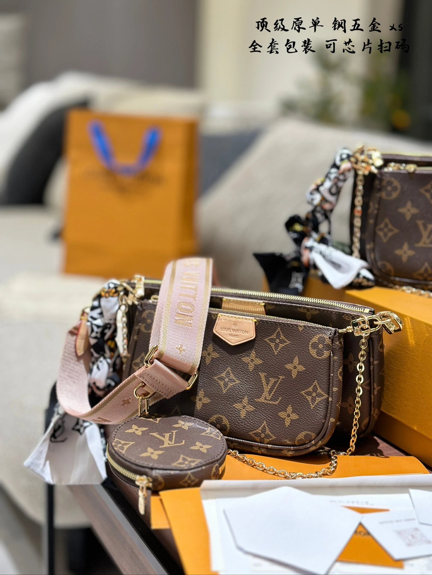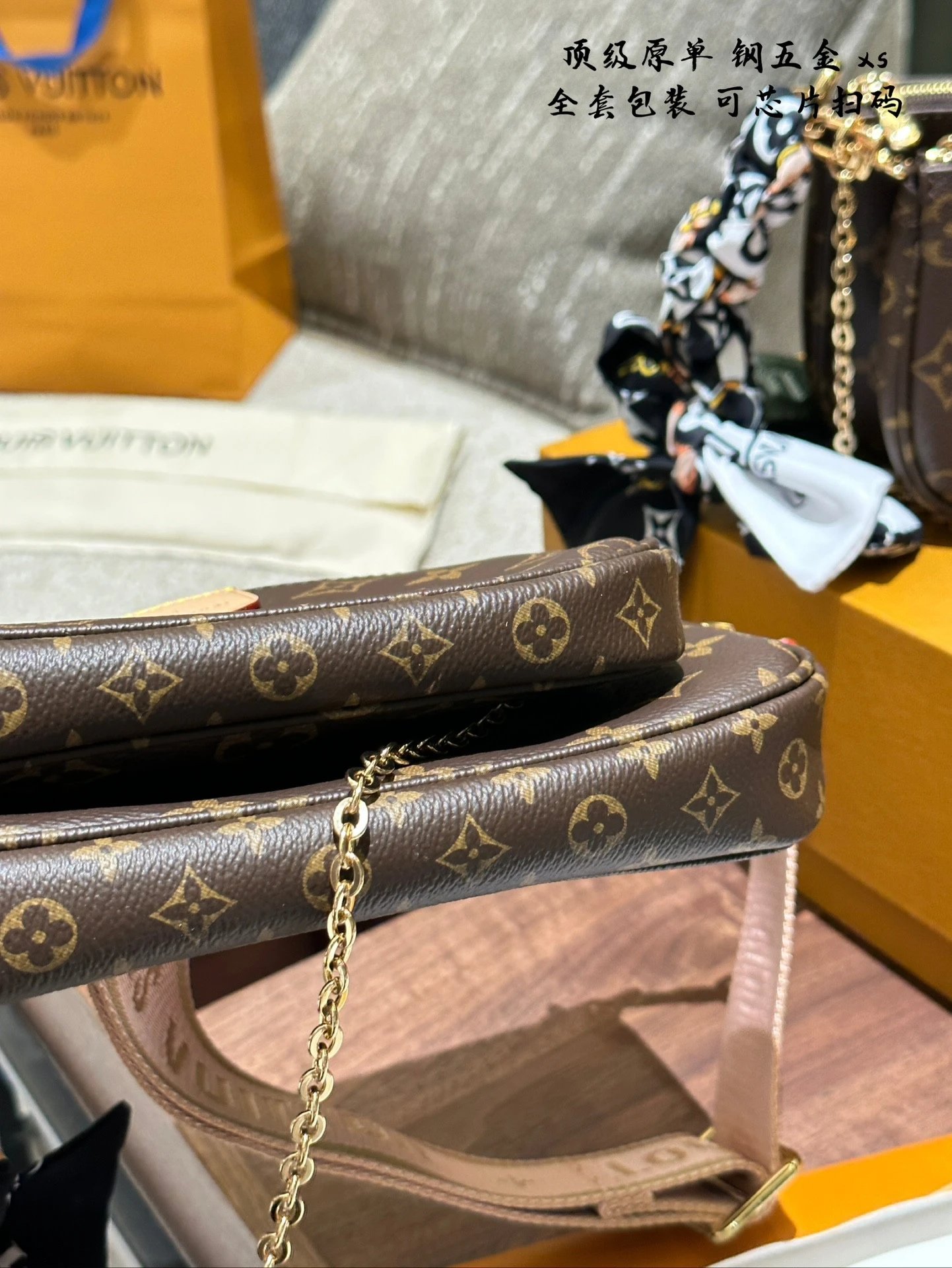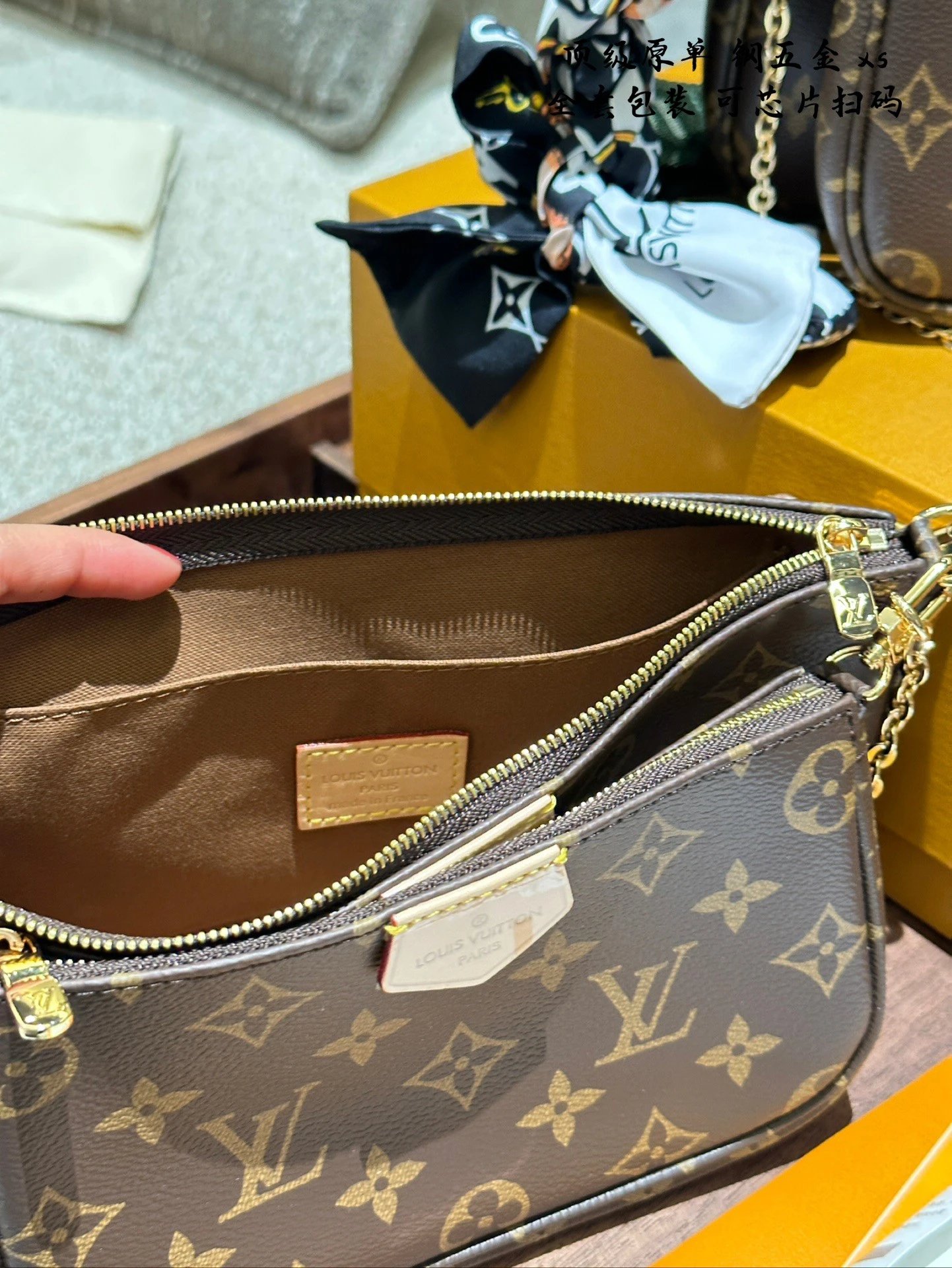 [**Original Order] multi pochette 3-in-1 mahjong bag classic 5-in-1 women's bag handbag original cowhide shoulder bag crossbody bag original hardware original original leather gift box packaging