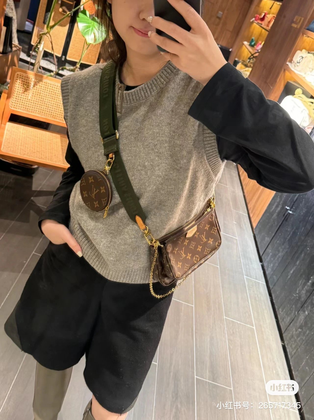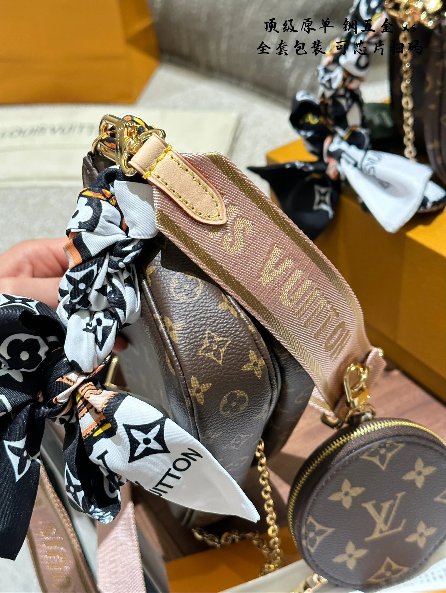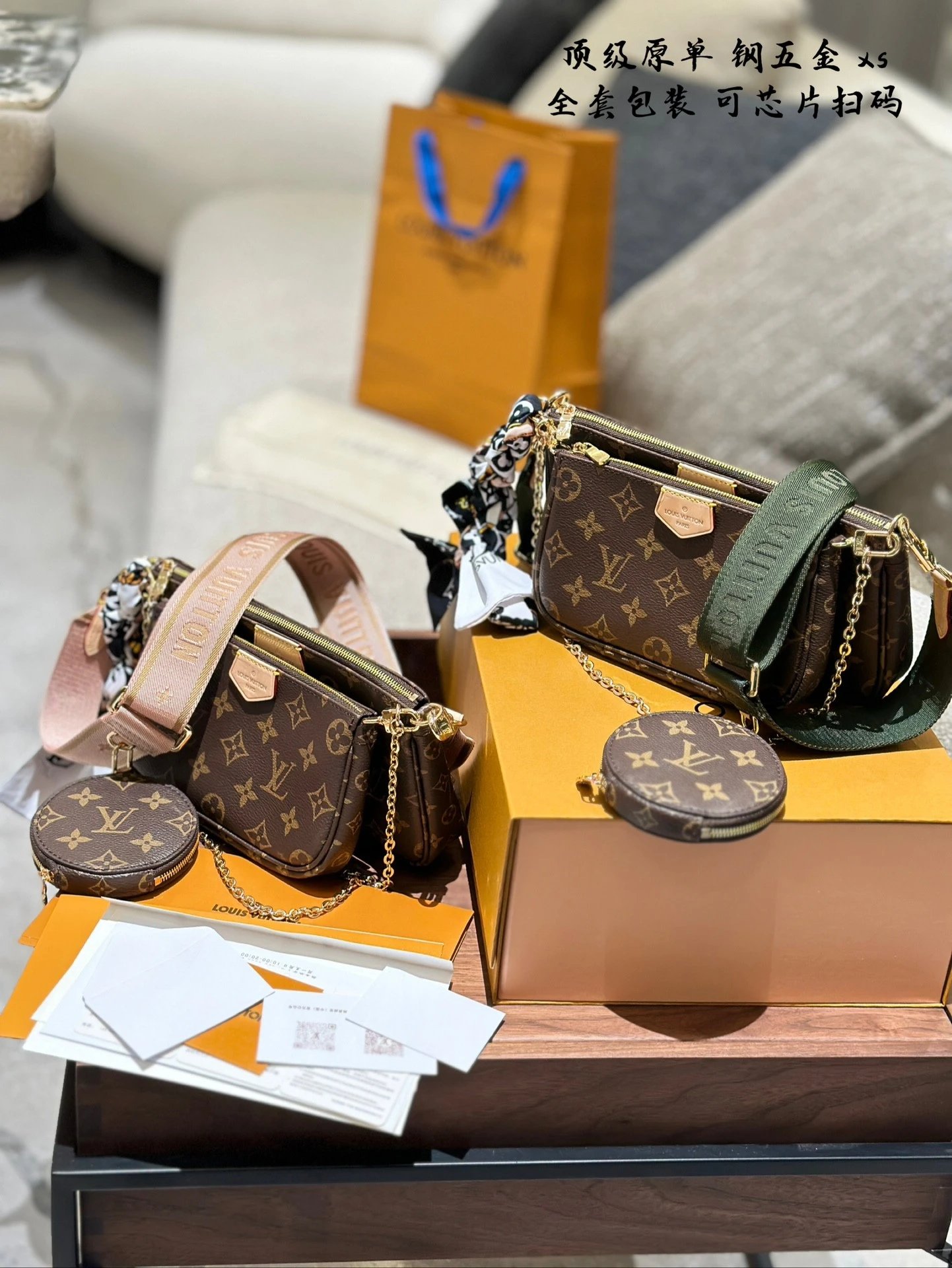 [**Original Order] multi pochette 3-in-1 mahjong bag classic 5-in-1 women's bag handbag original cowhide shoulder bag crossbody bag original hardware original original leather gift box packaging