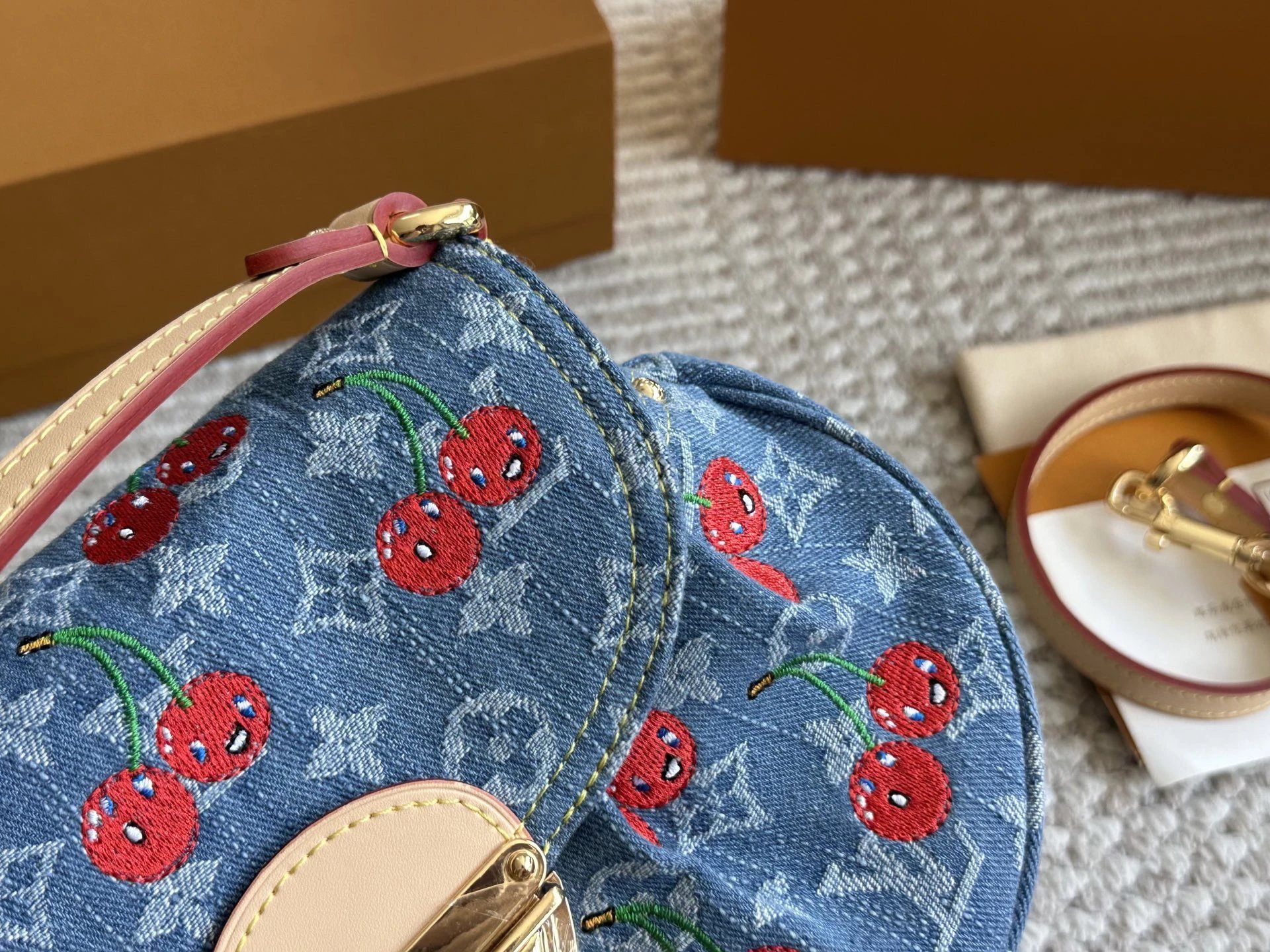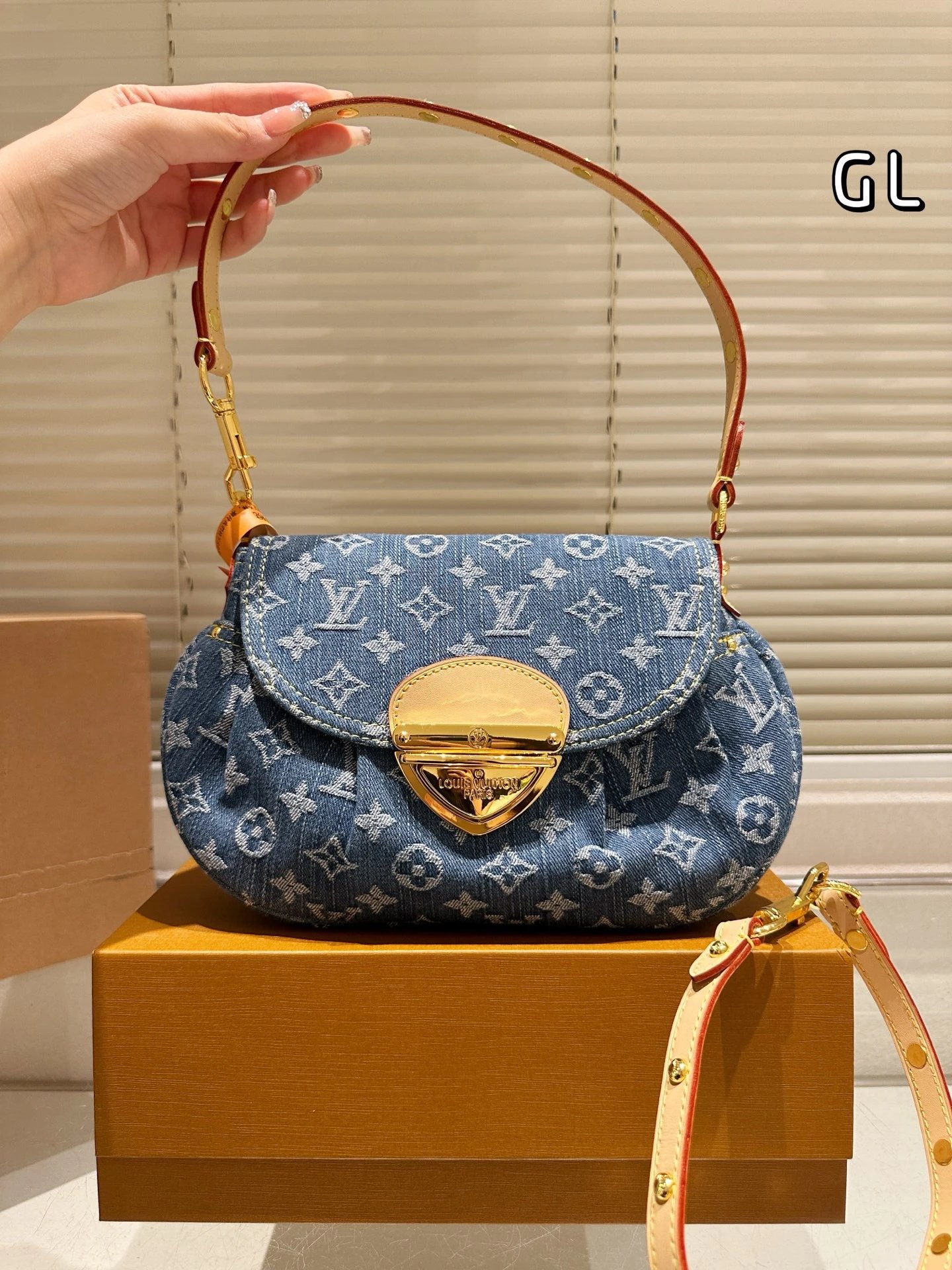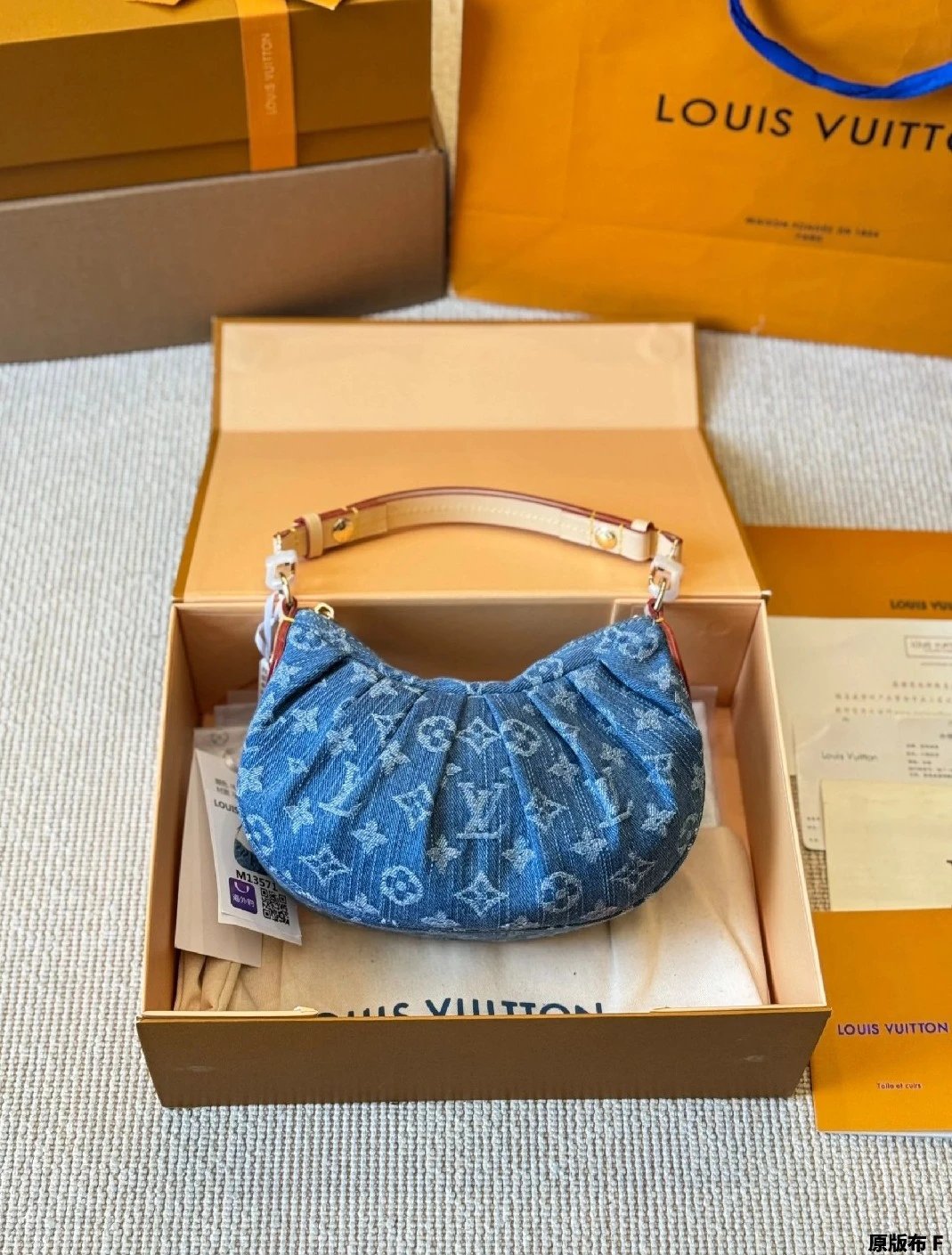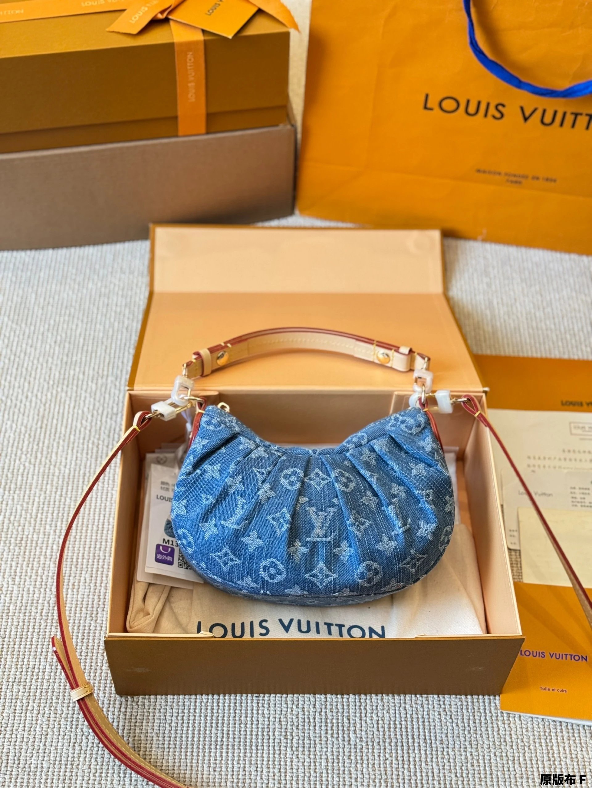 [**Original Order] Sunset Big Ingot Handbag Denim Denim Shoulder Bag Classic Presbydo Crossbody Bag Valley Denim Handbag Second-hand Bag Original Cowhide Elegant and Exquisite Heavy Industry Hardware Original Cloth Classic Fashion Gift box packaging