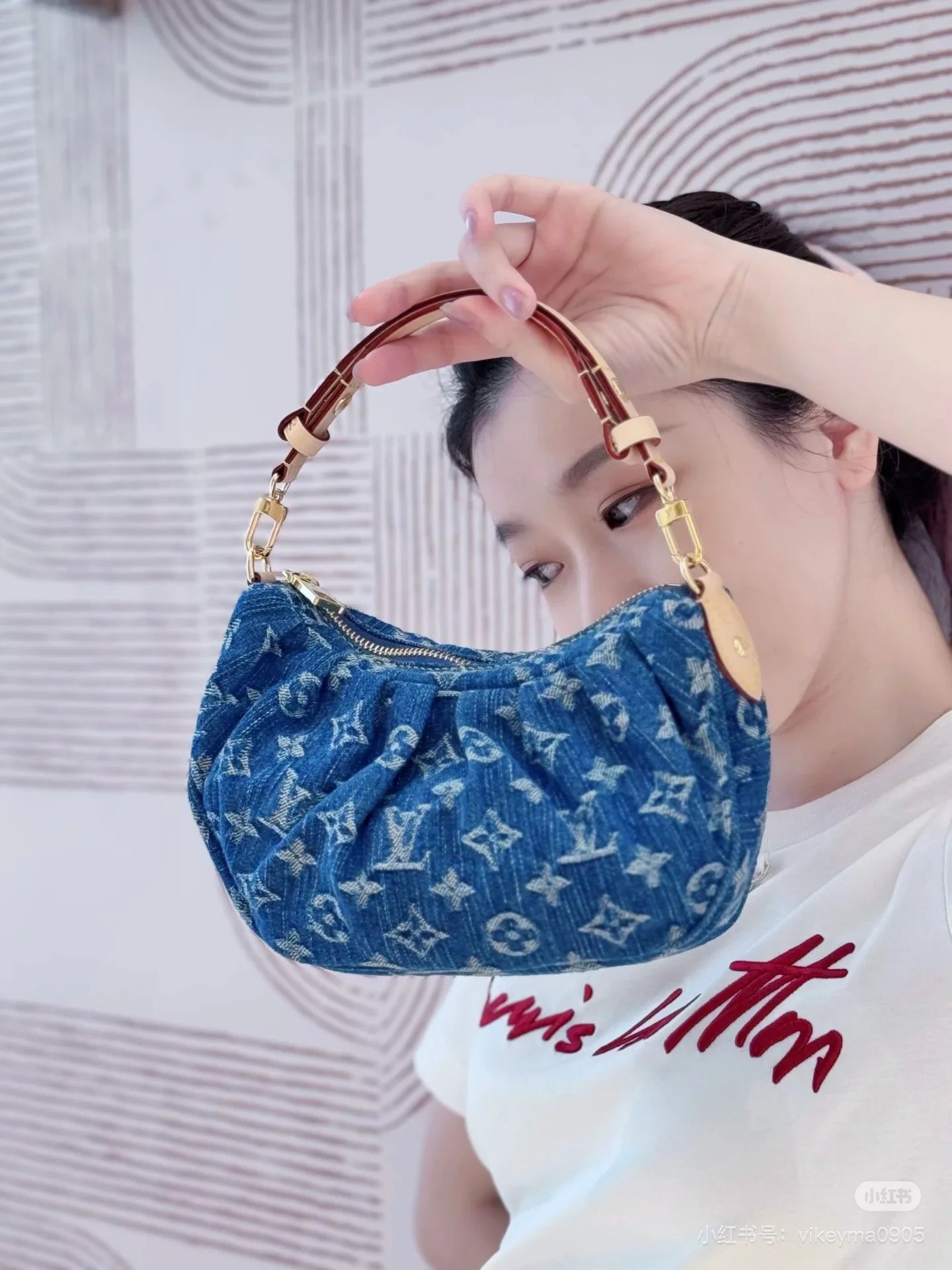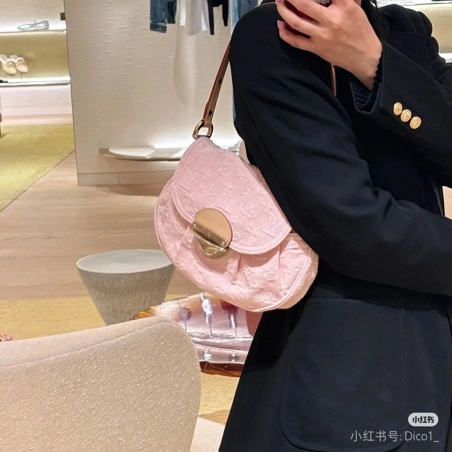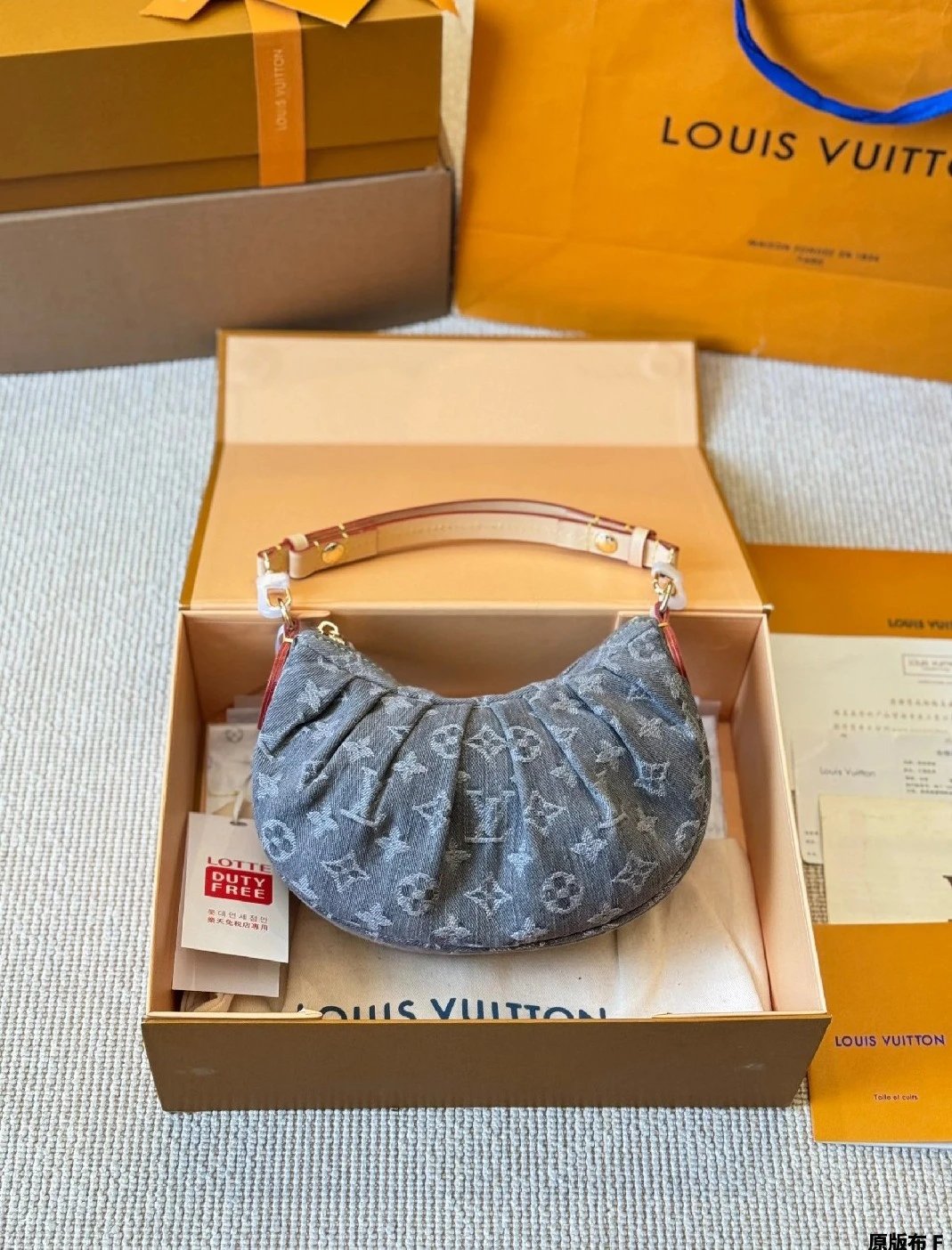[**Original Order] Sunset Big Ingot Handbag Denim Denim Shoulder Bag Classic Presbydo Crossbody Bag Valley Denim Handbag Second-hand Bag Original Cowhide Elegant and Exquisite Heavy Industry Hardware Original Cloth Classic Fashion Gift box packaging