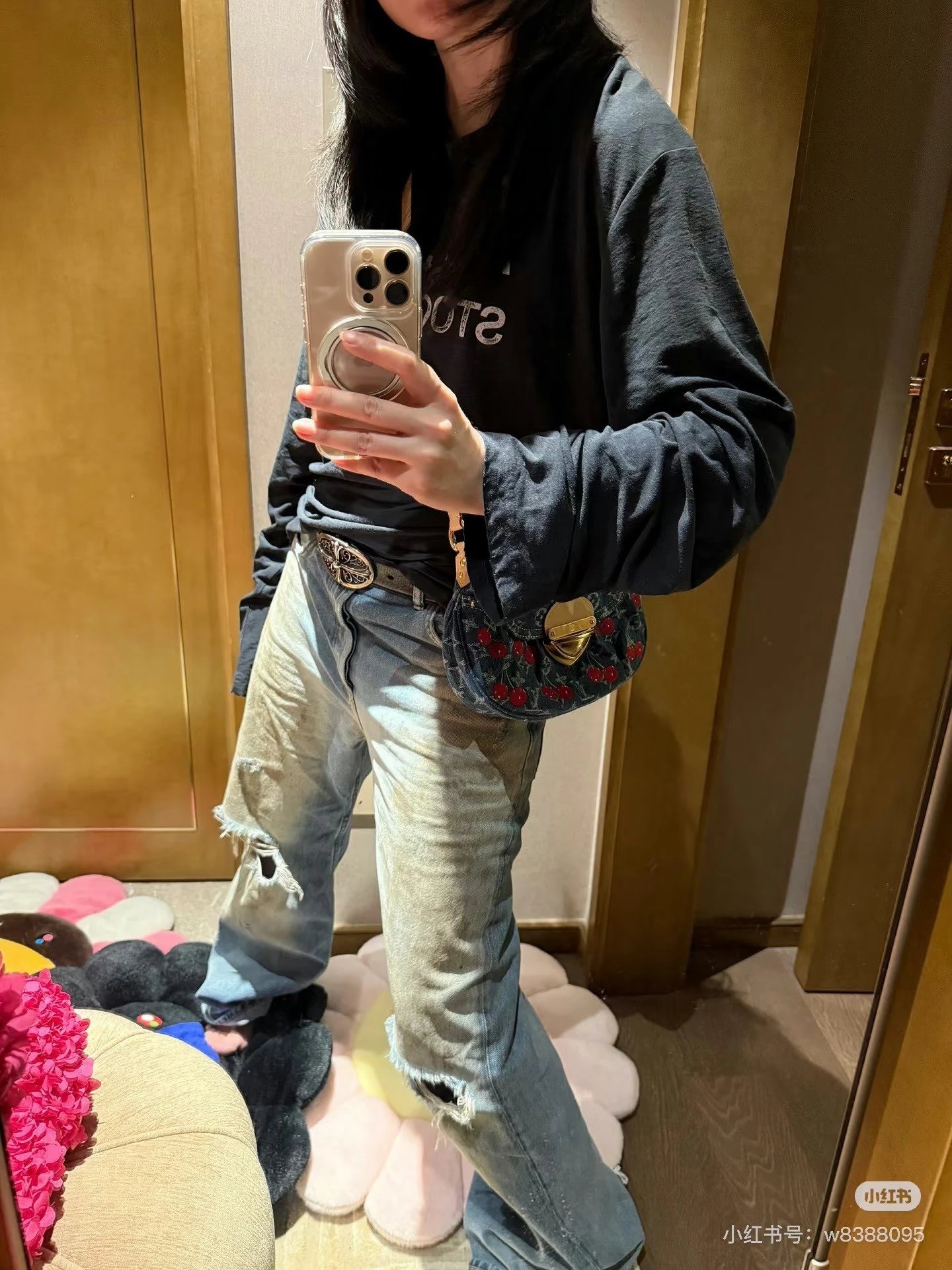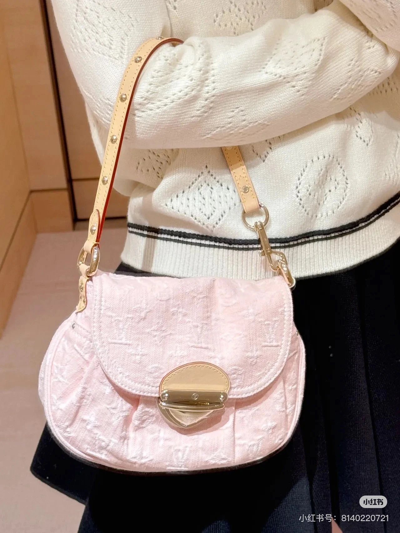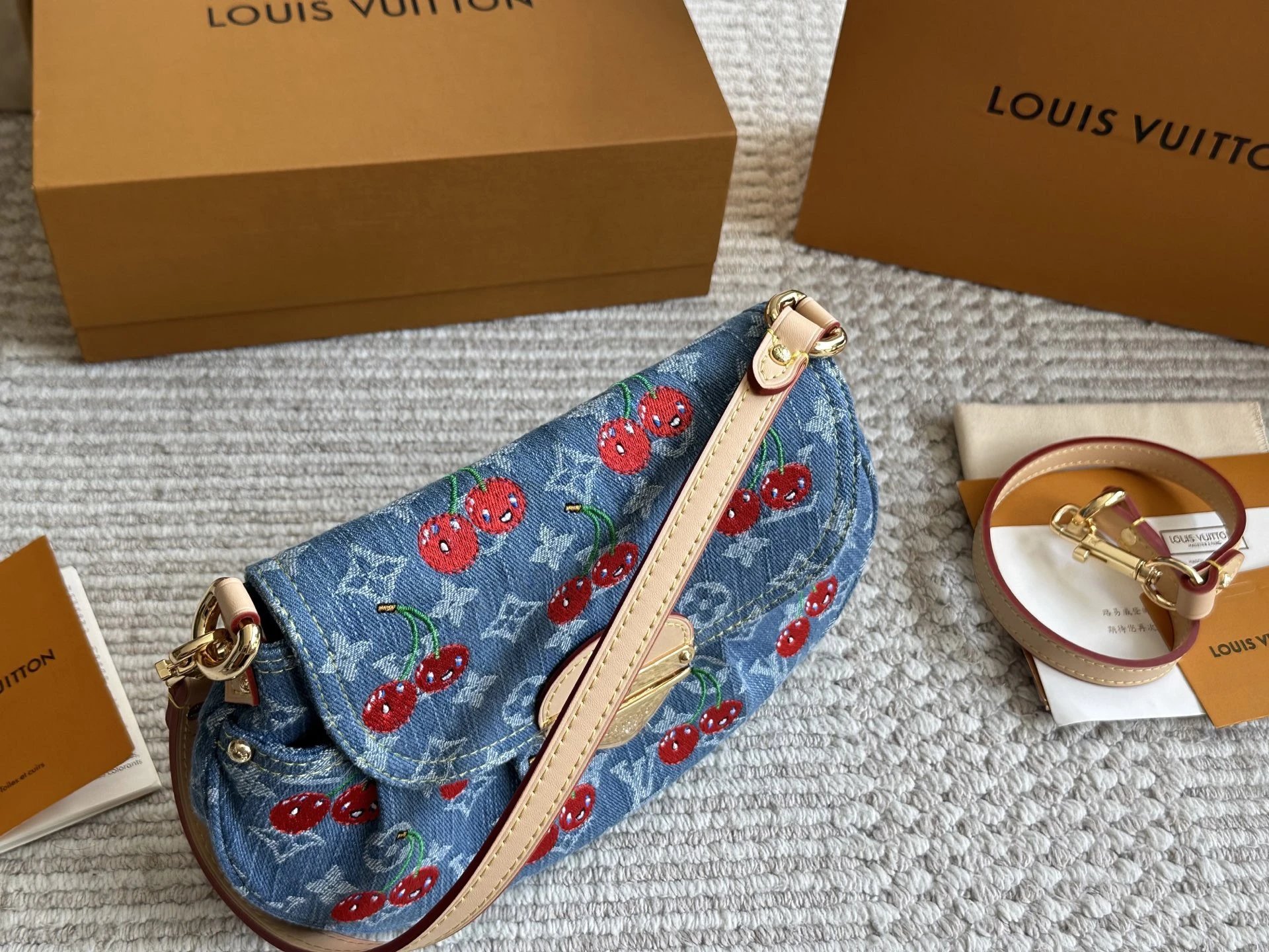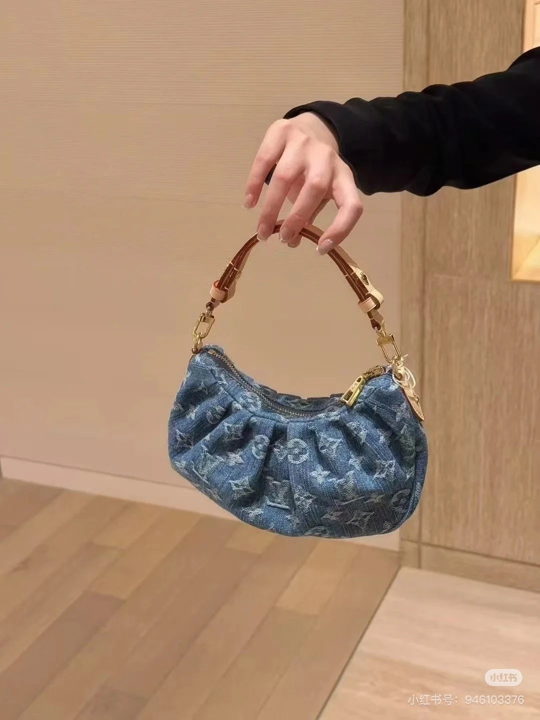 [**Original Order] Sunset Big Ingot Handbag Denim Denim Shoulder Bag Classic Presbydo Crossbody Bag Valley Denim Handbag Second-hand Bag Original Cowhide Elegant and Exquisite Heavy Industry Hardware Original Cloth Classic Fashion Gift box packaging