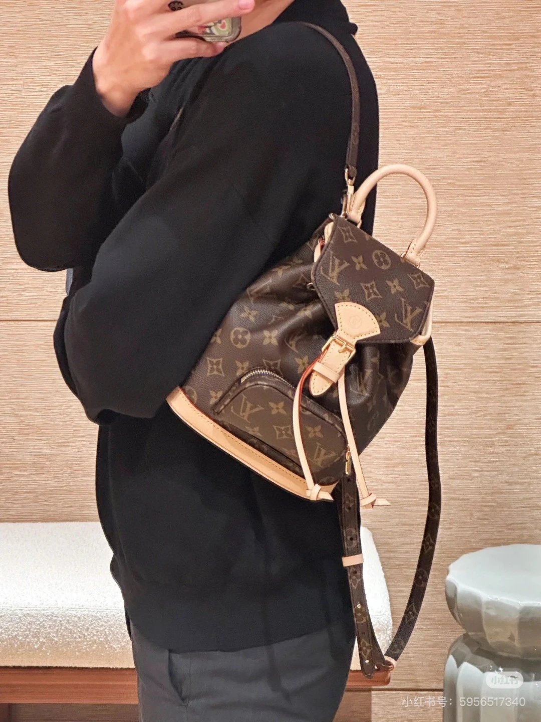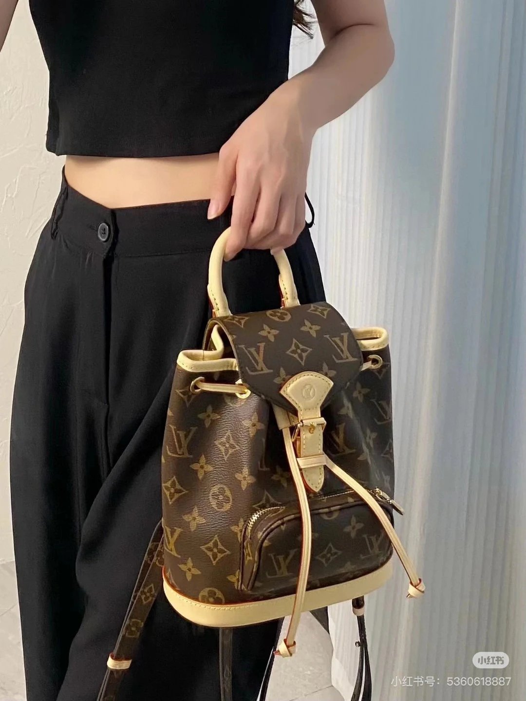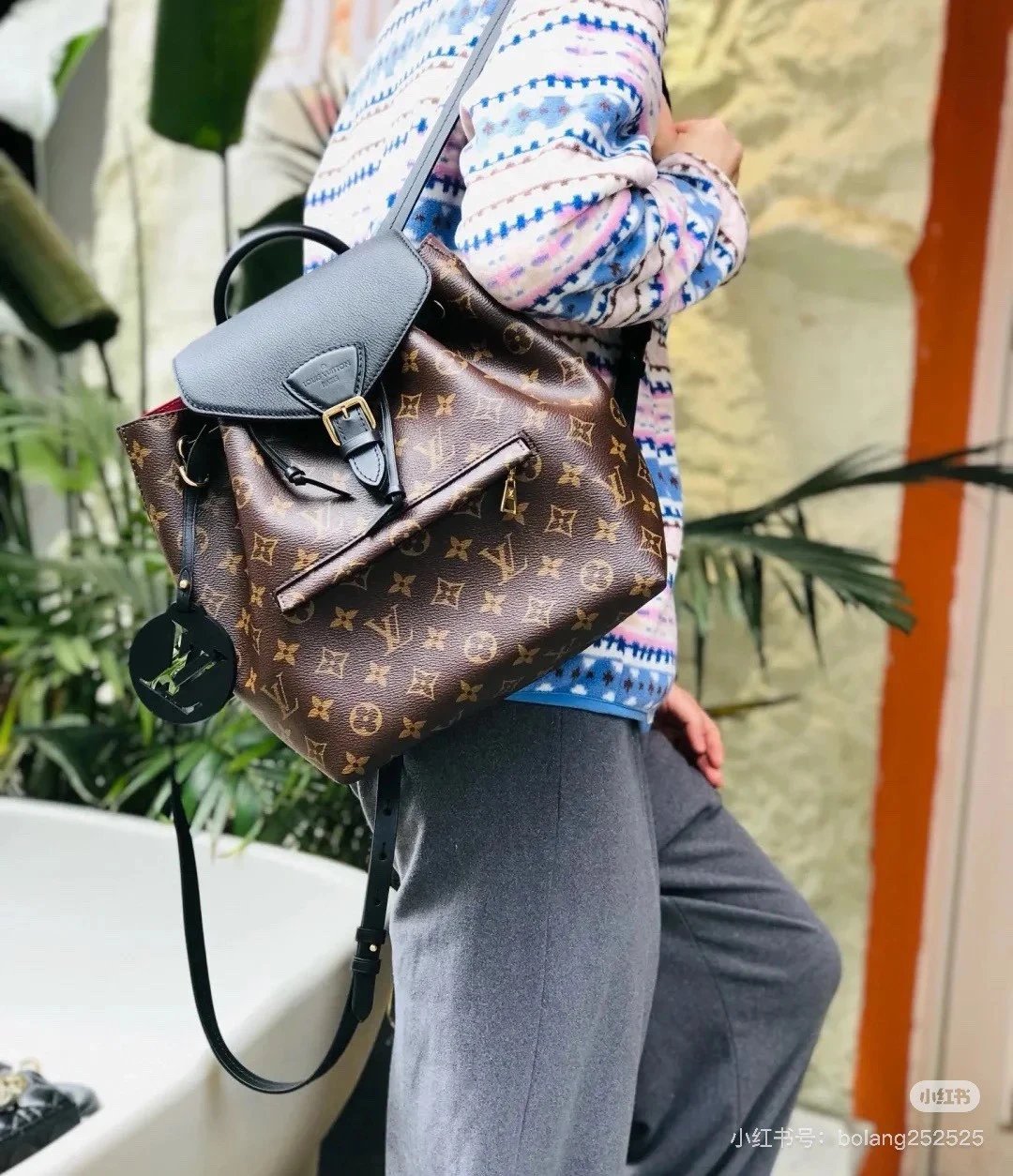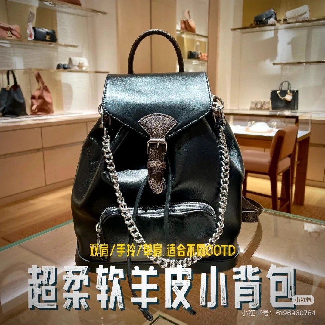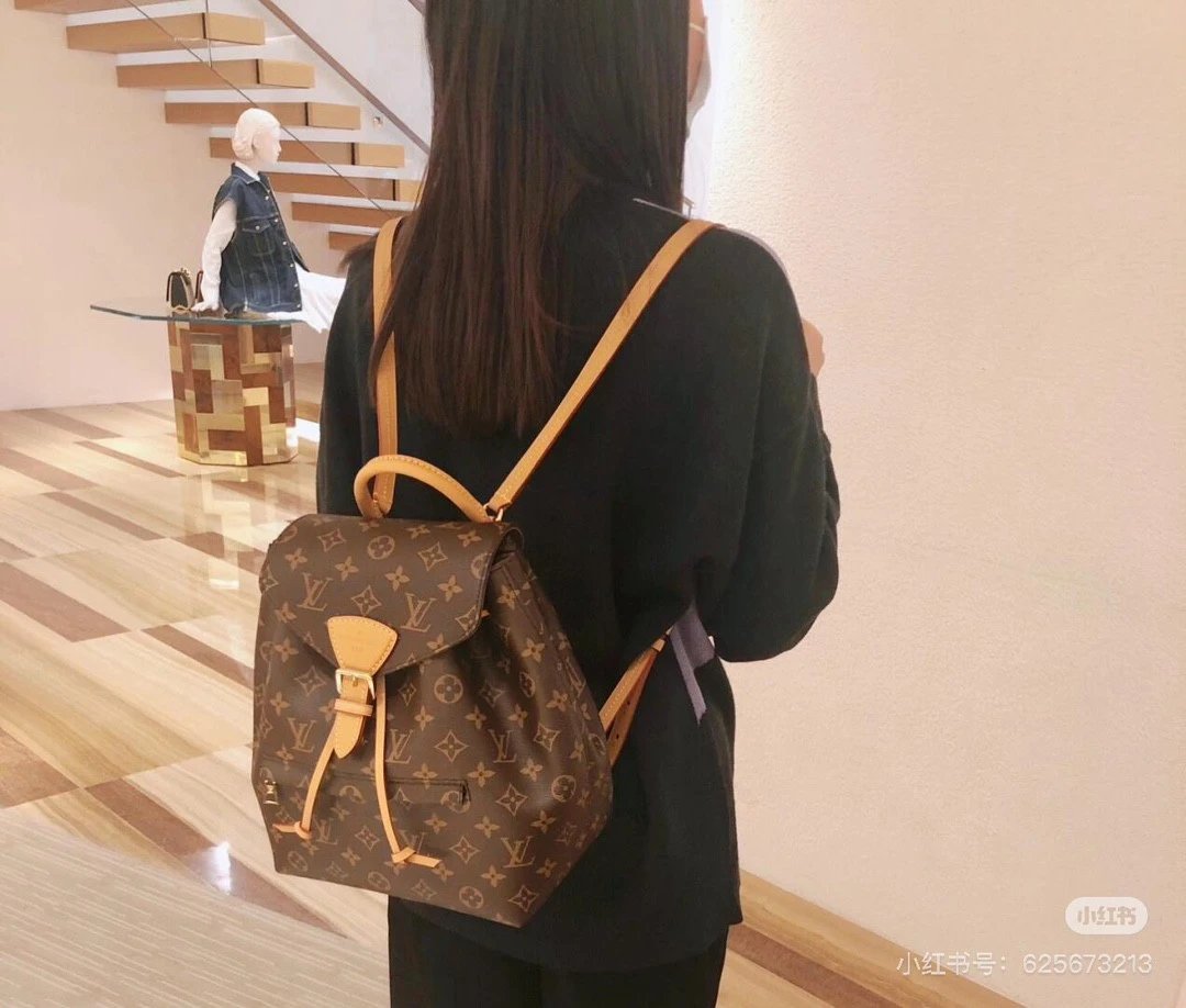 [Original Quality] Lu Jia New Shoulder Montsours BB Backpack Original Canvas Cowhide Multiple Backpack Crossbody Bag Hand Bag Shoulder Bag One to One Comparable to the Original Large Capacity Essential for Travel Couple Style