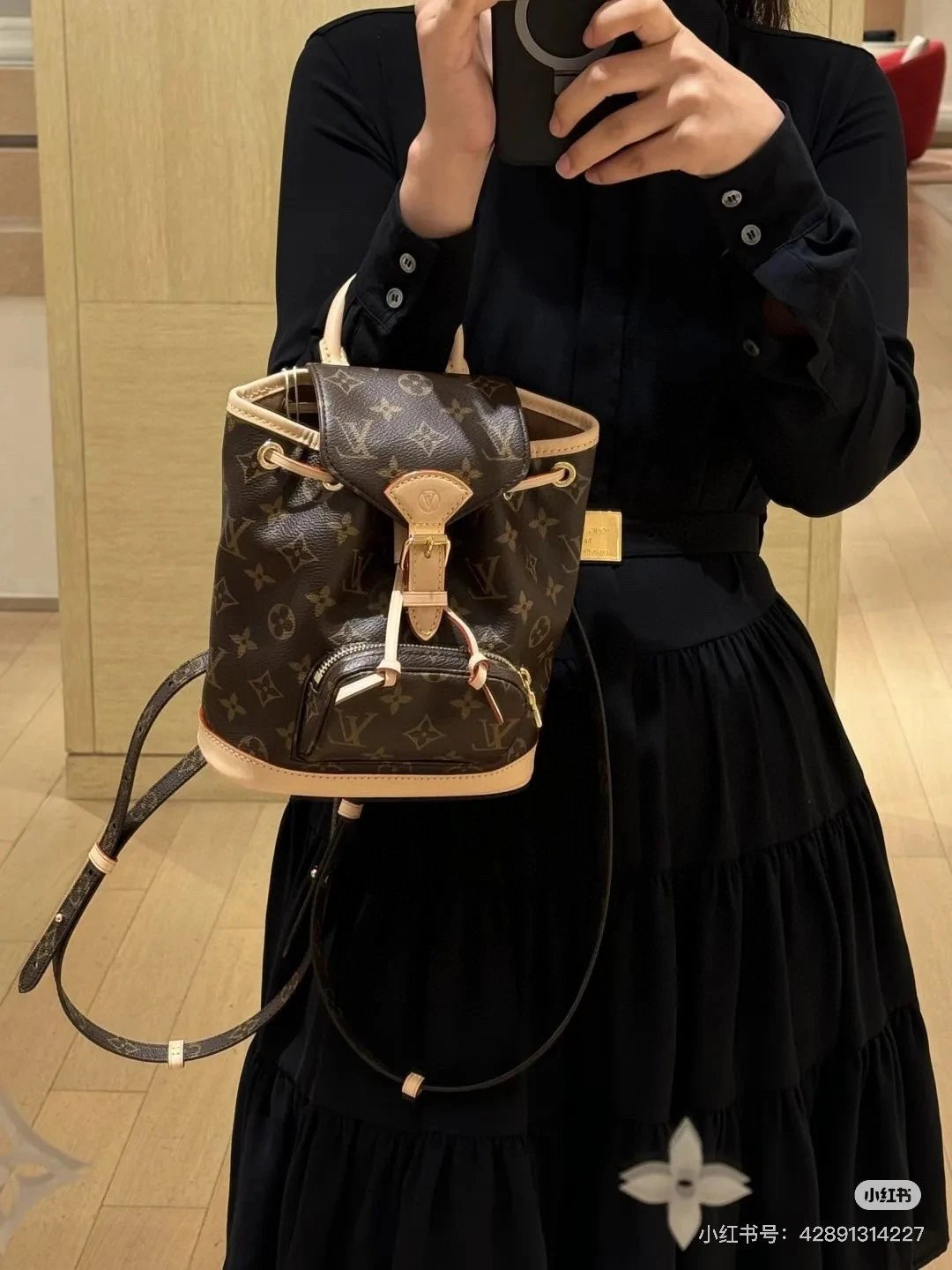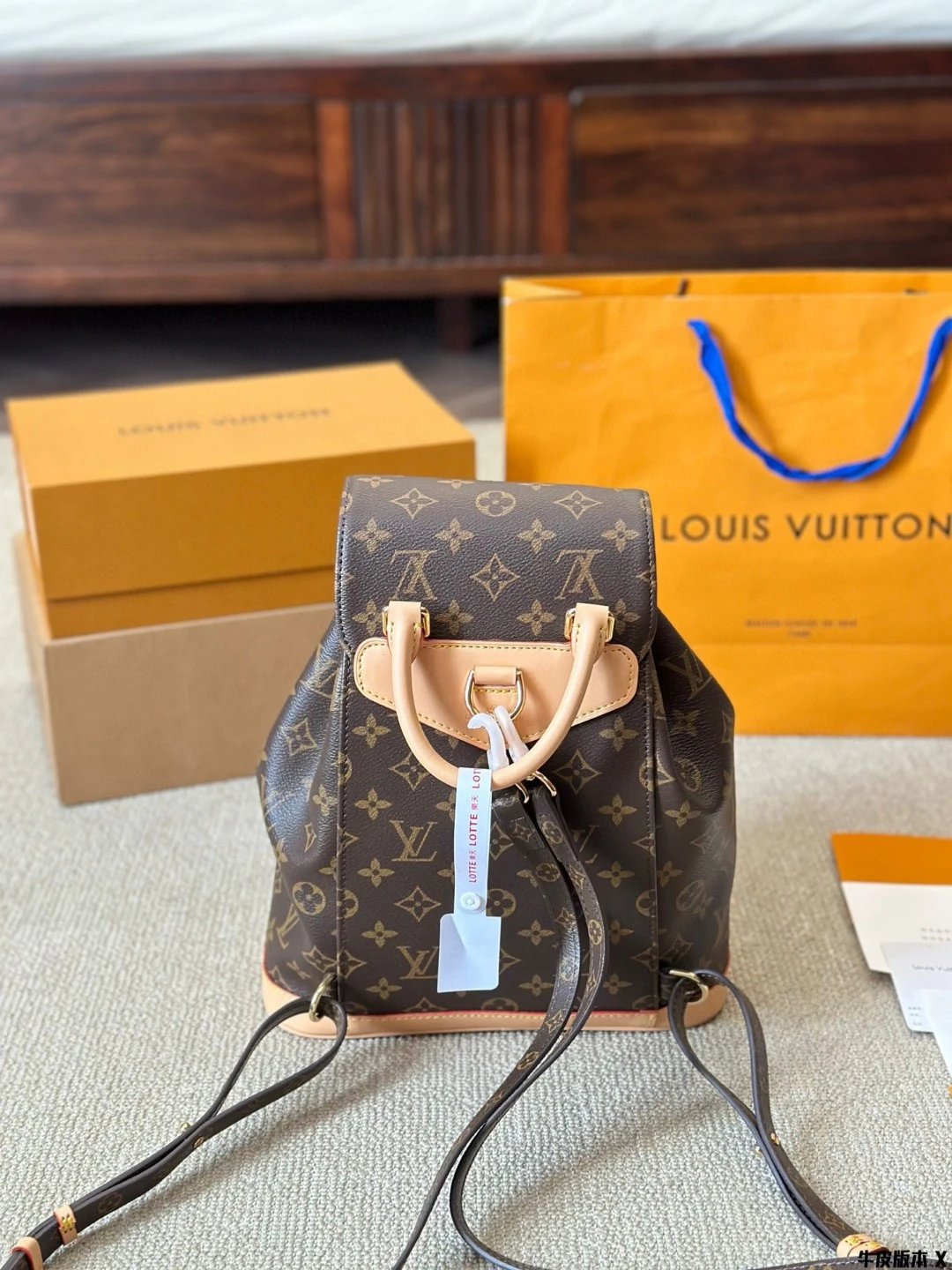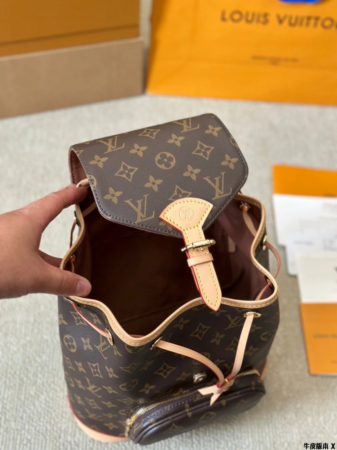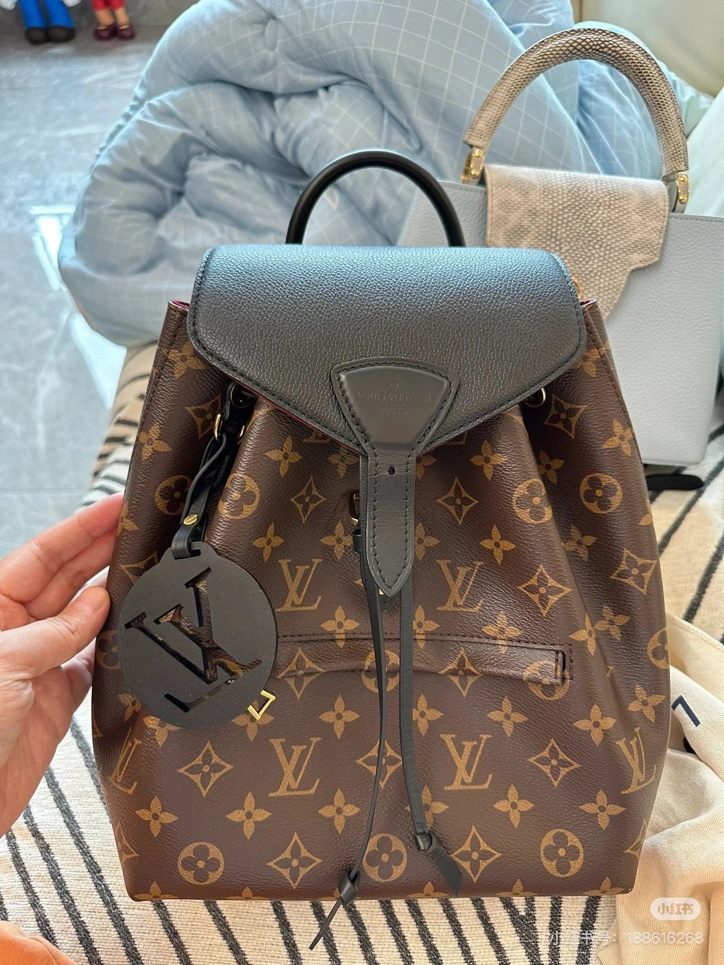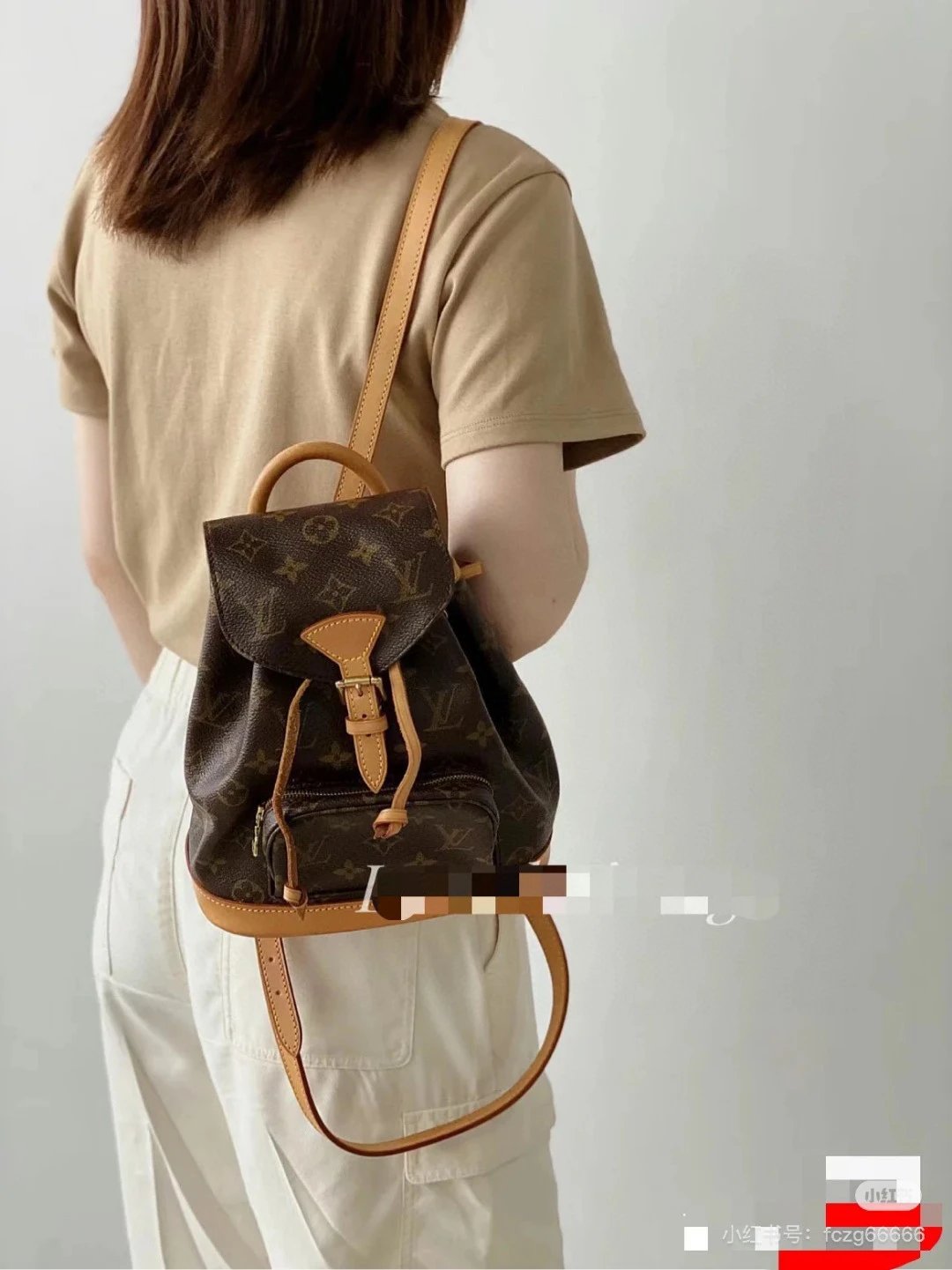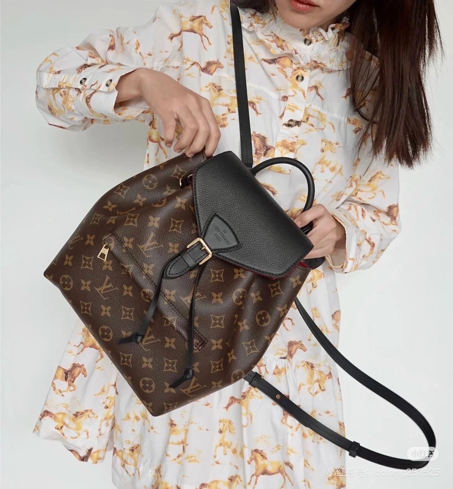 [Original Quality] Lu Jia New Shoulder Montsours BB Backpack Original Canvas Cowhide Multiple Backpack Crossbody Bag Hand Bag Shoulder Bag One to One Comparable to the Original Large Capacity Essential for Travel Couple Style