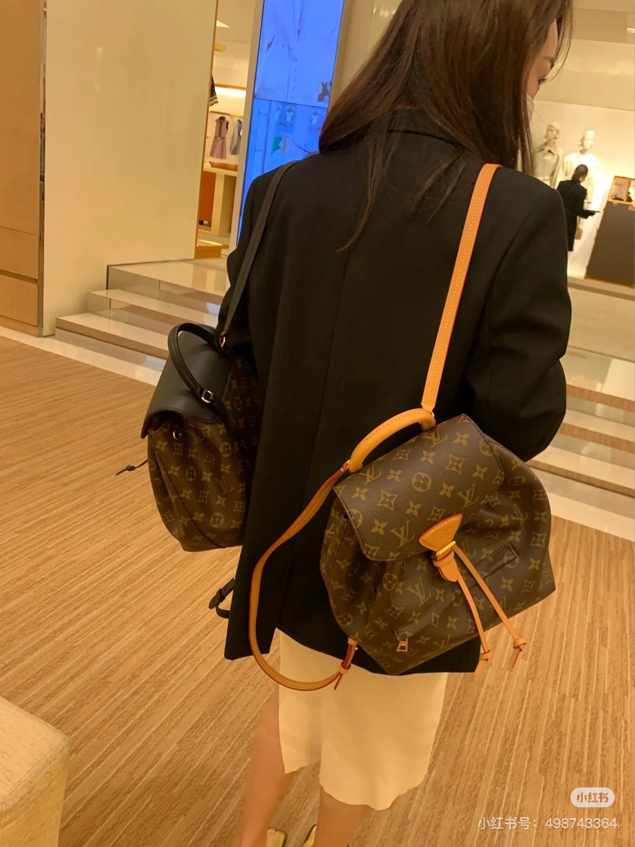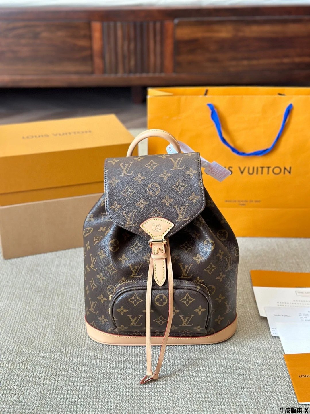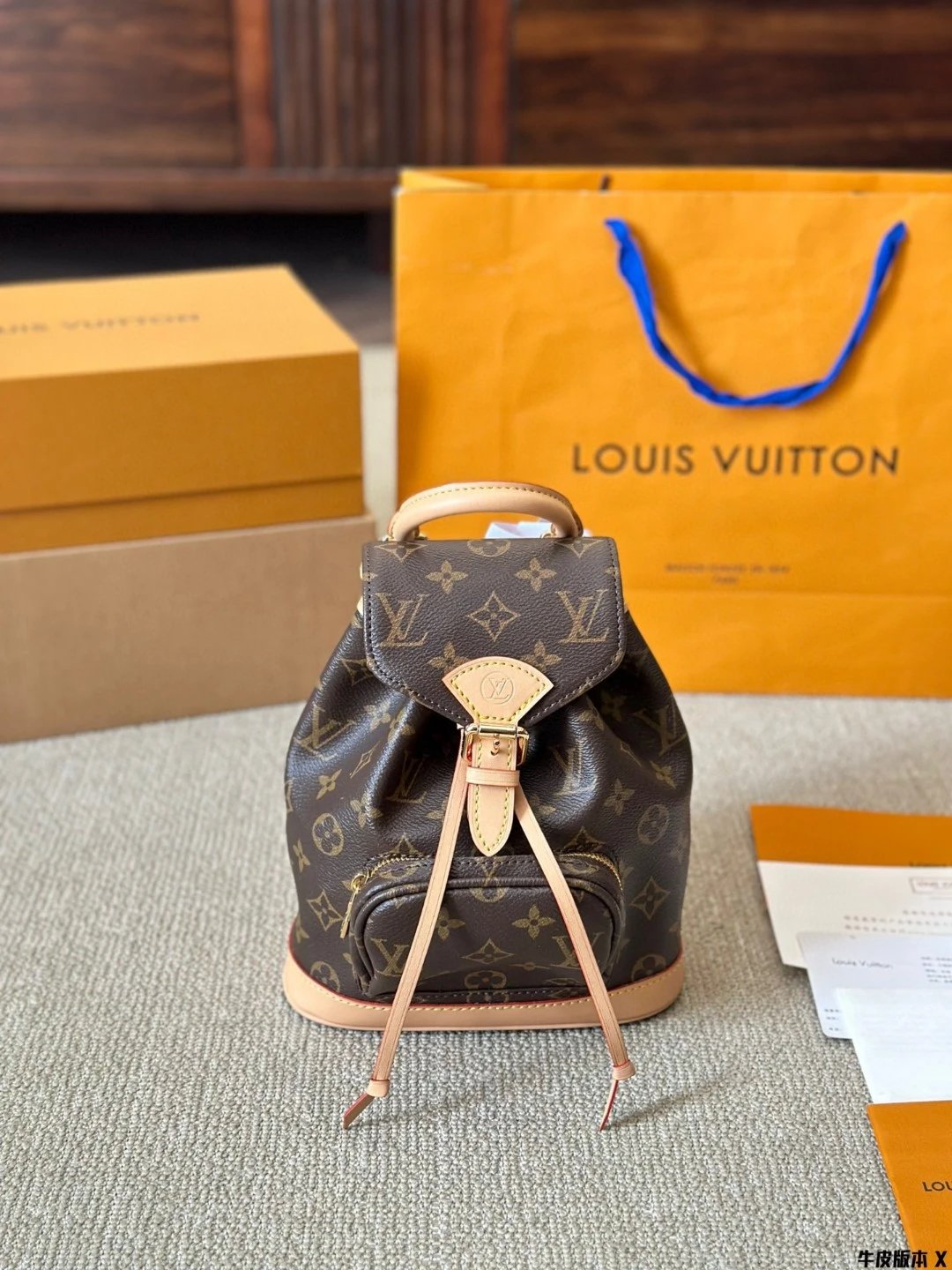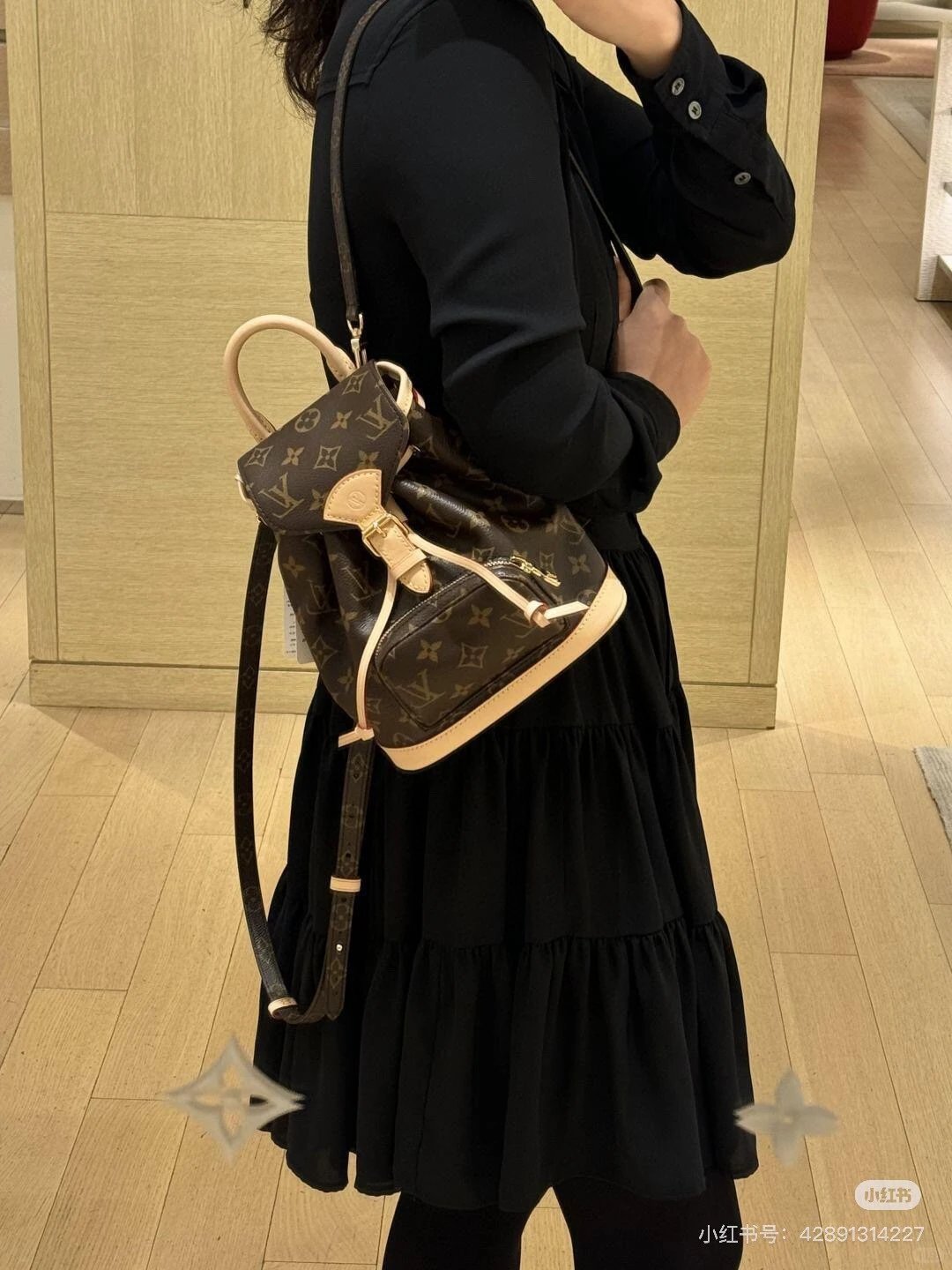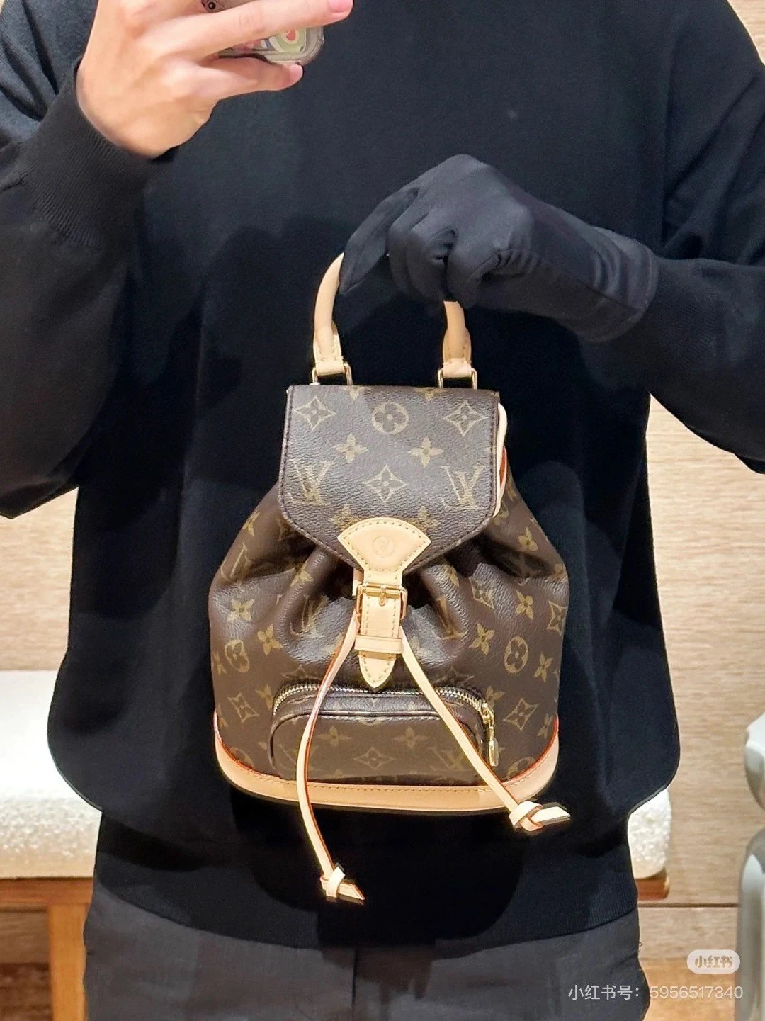 [Original Quality] Lu Jia New Shoulder Montsours BB Backpack Original Canvas Cowhide Multiple Backpack Crossbody Bag Hand Bag Shoulder Bag One to One Comparable to the Original Large Capacity Essential for Travel Couple Style