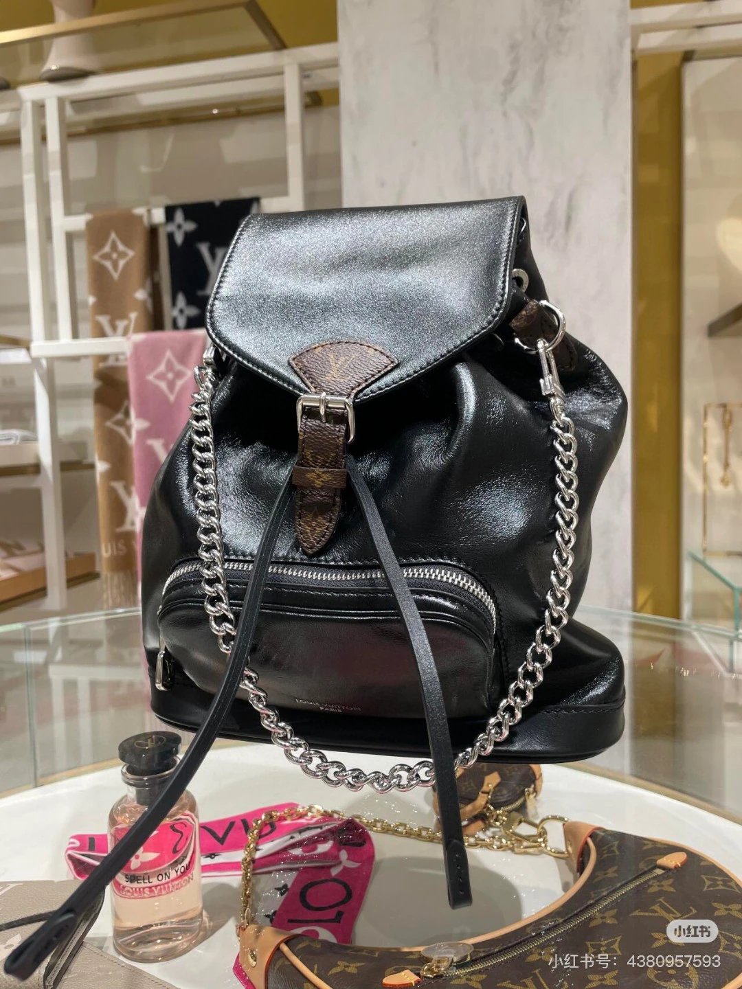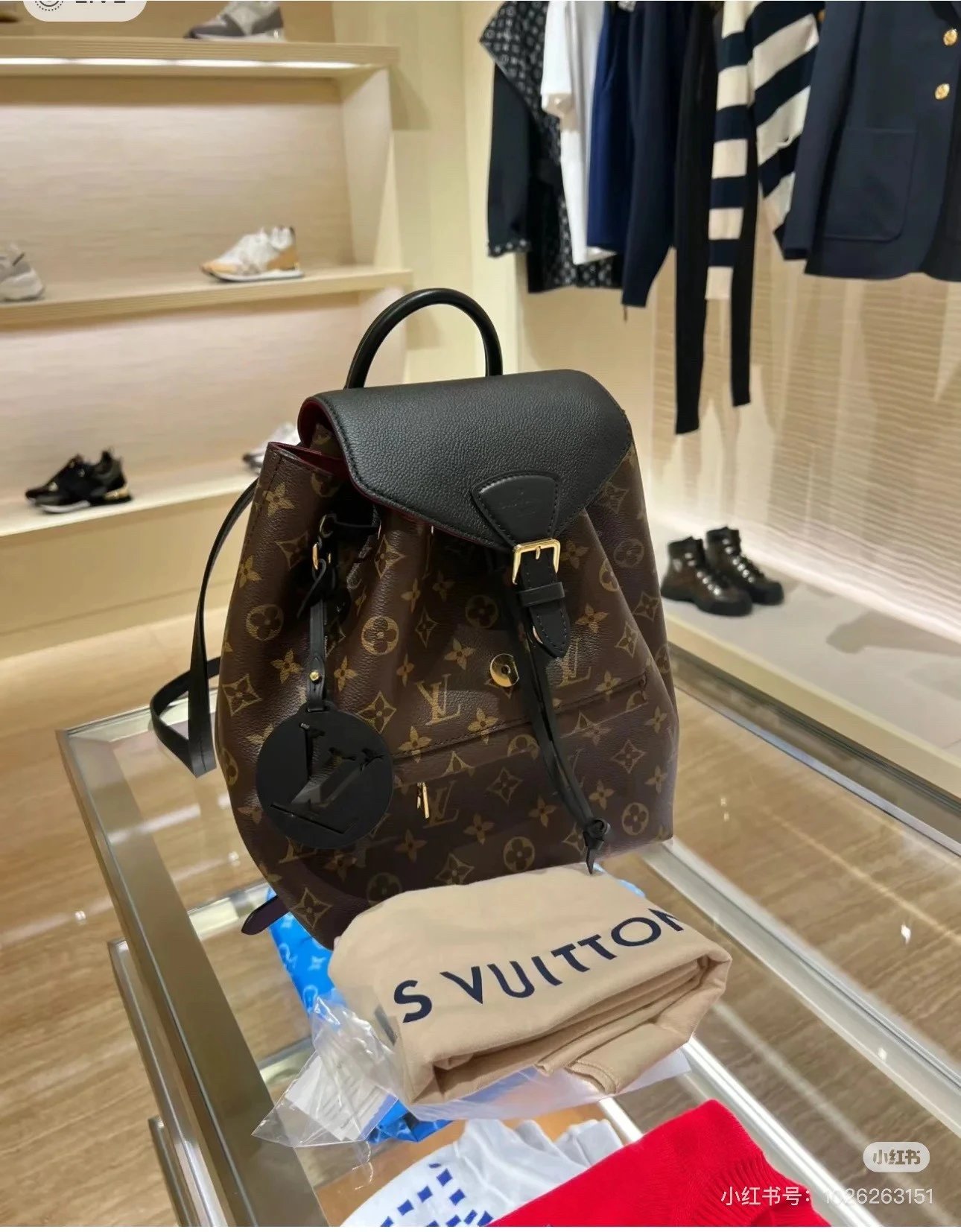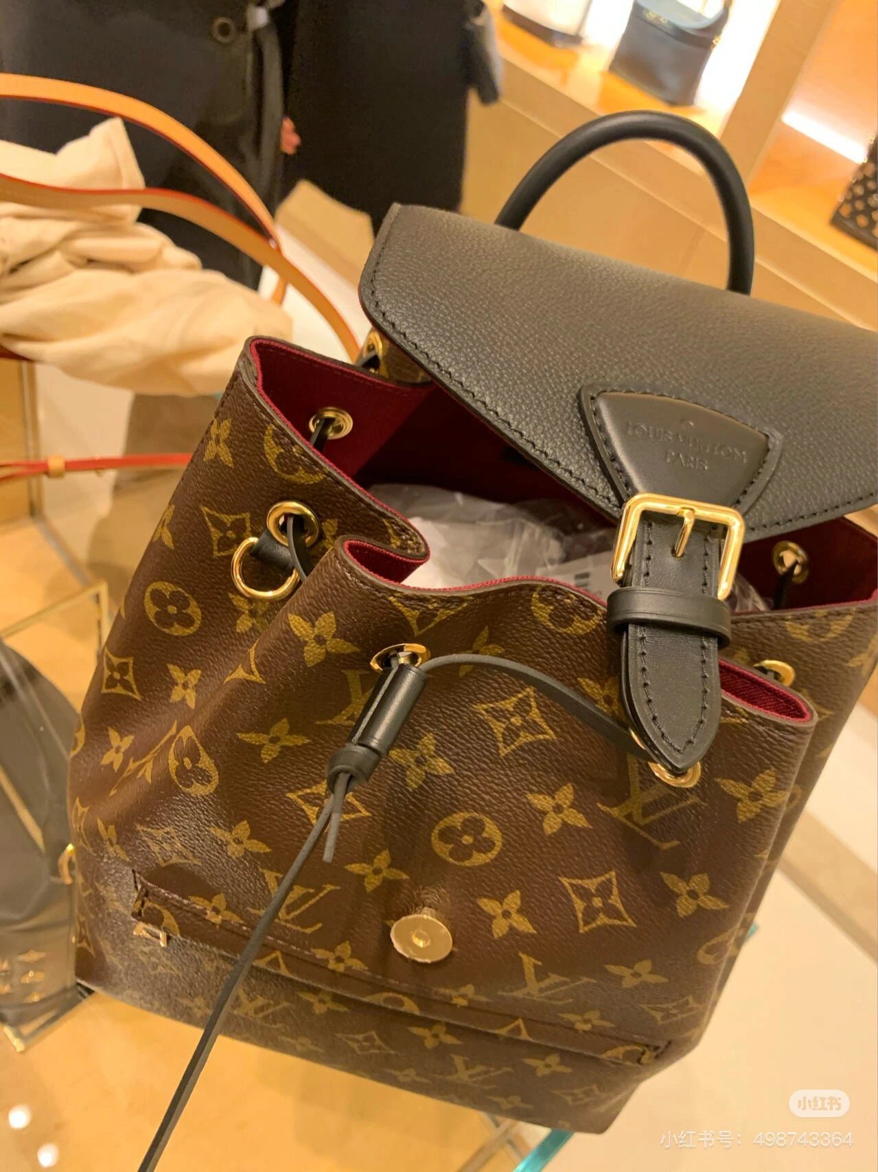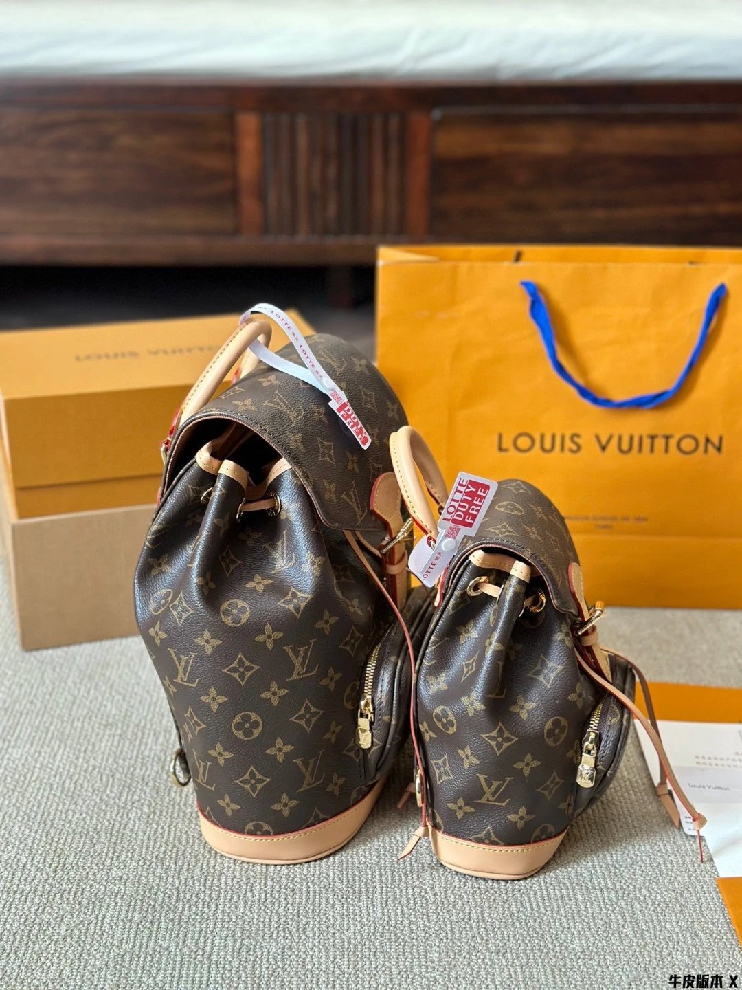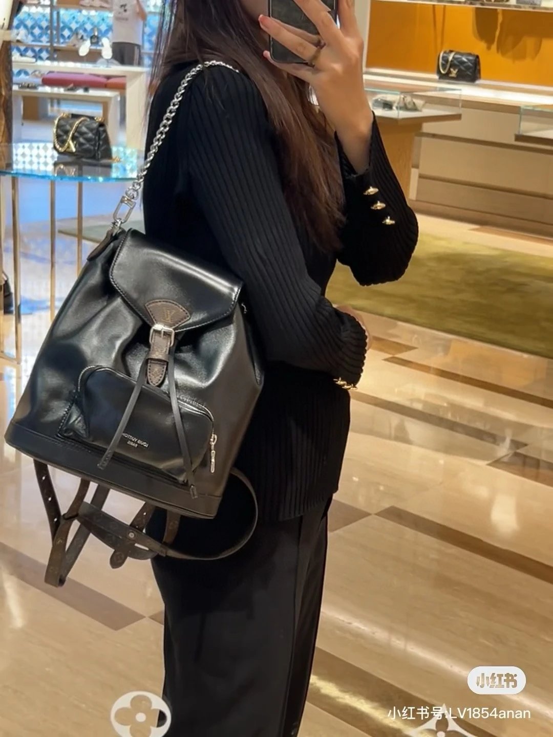 [Original Quality] Lu Jia New Shoulder Montsours BB Backpack Original Canvas Cowhide Multiple Backpack Crossbody Bag Hand Bag Shoulder Bag One to One Comparable to the Original Large Capacity Essential for Travel Couple Style