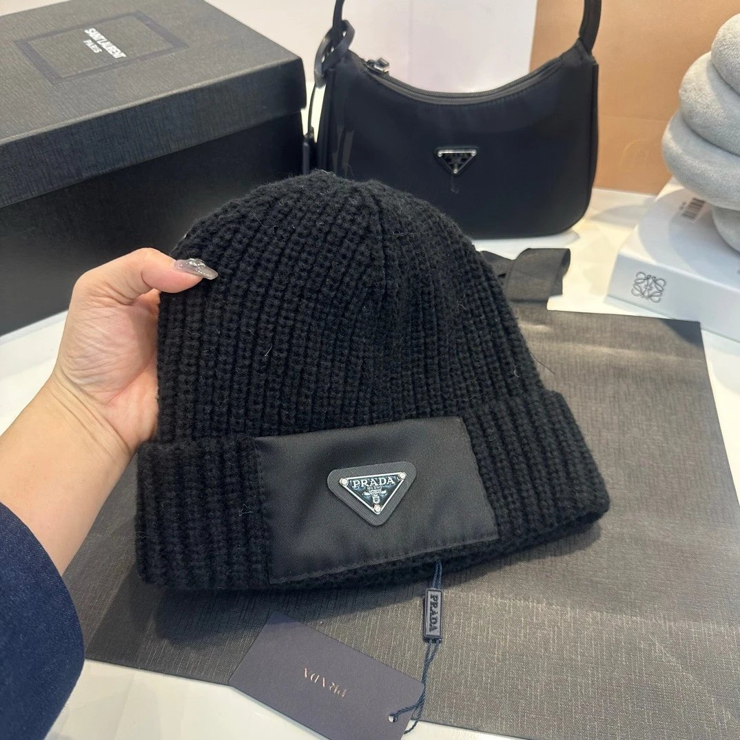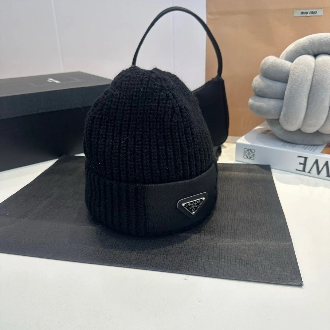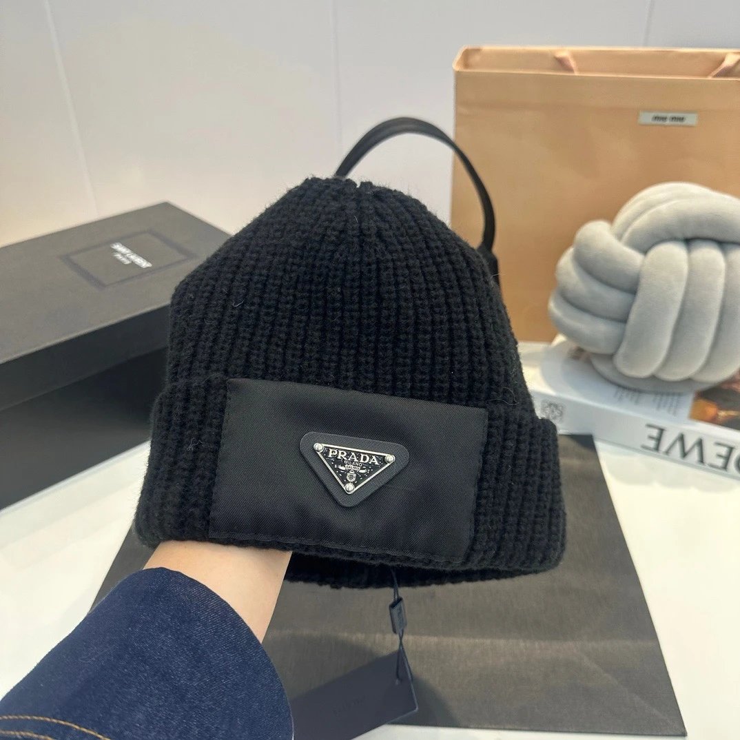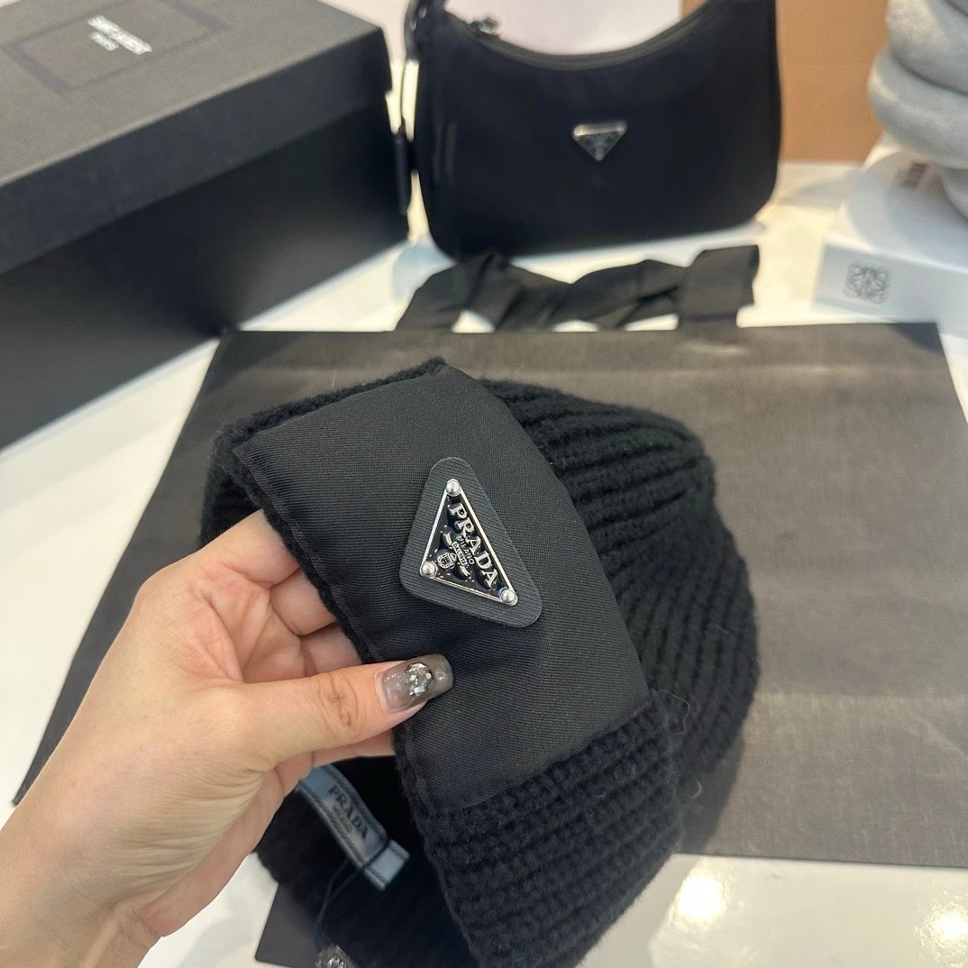 Pr*d* new Arctic Velvet Panelled Satin Knit Beanie.The counter synchronizes the knitted hat, the satin stitching is super textured, simple and not monotonous, Head circumference: 55-59cm