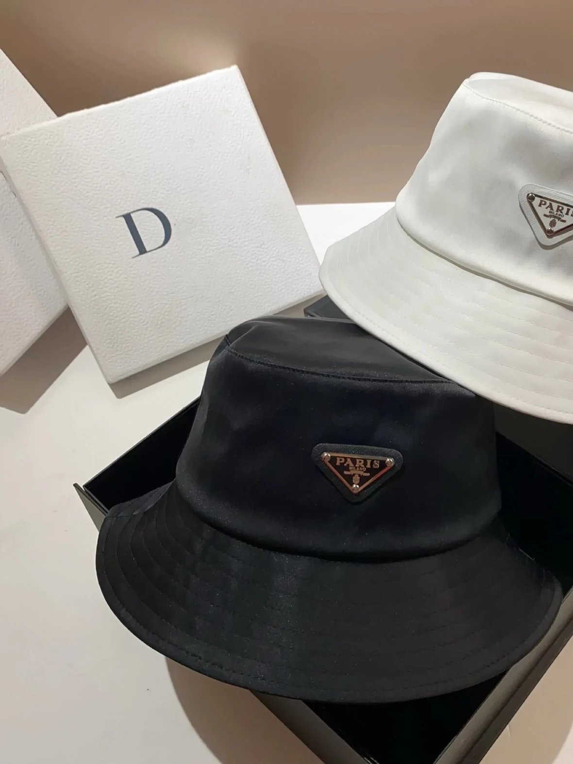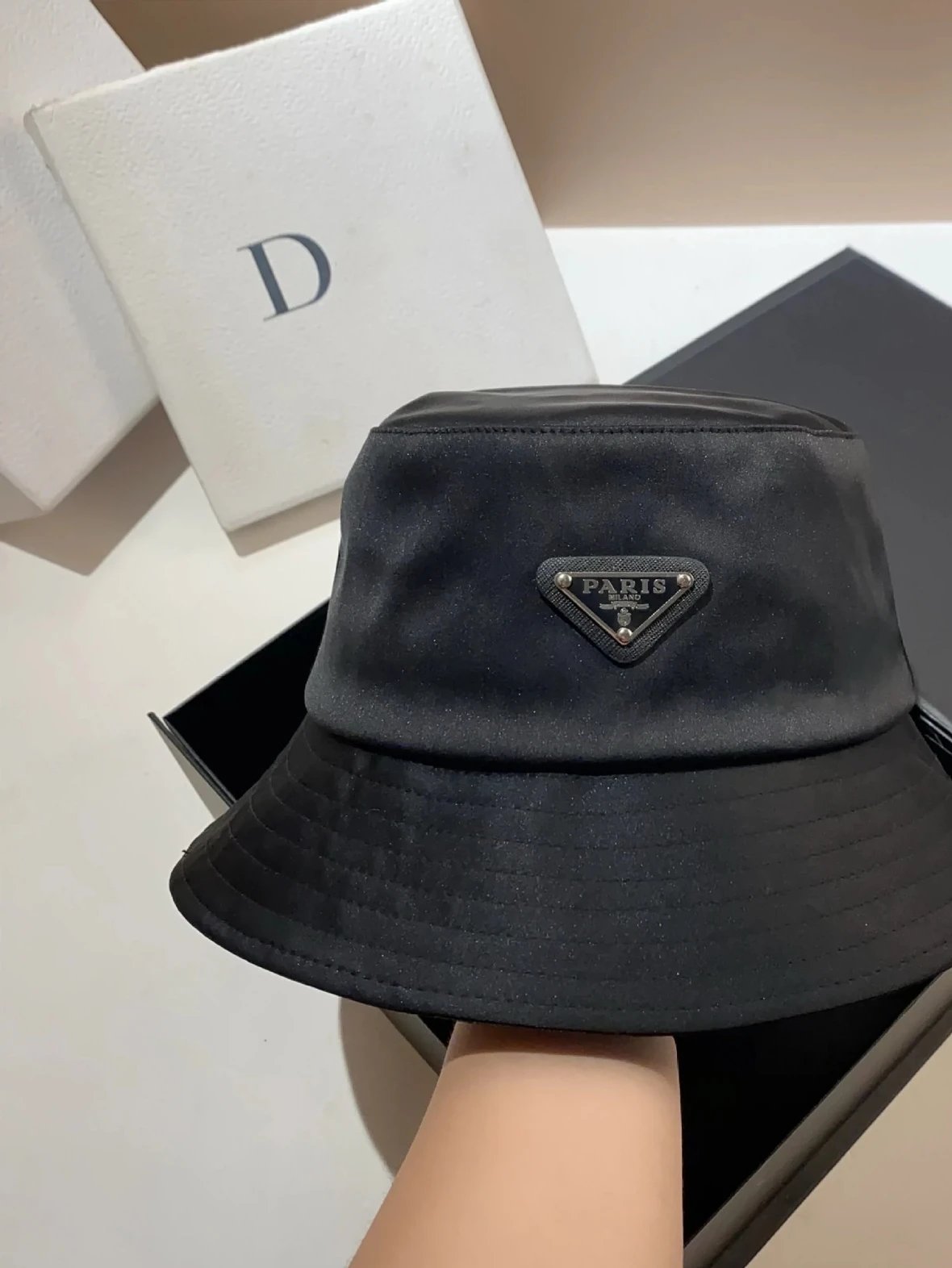 Pr*D* triangle logo cotton bucket hat Unisex model