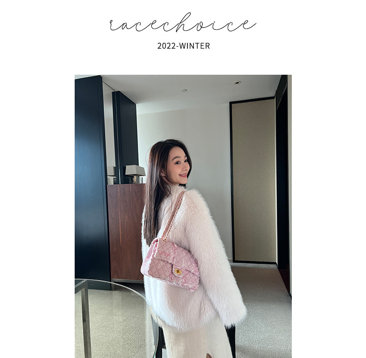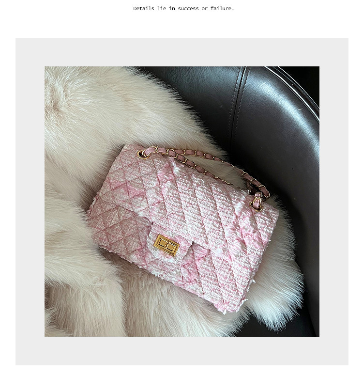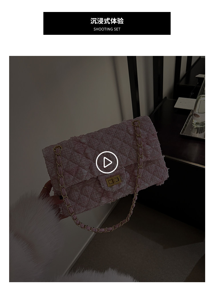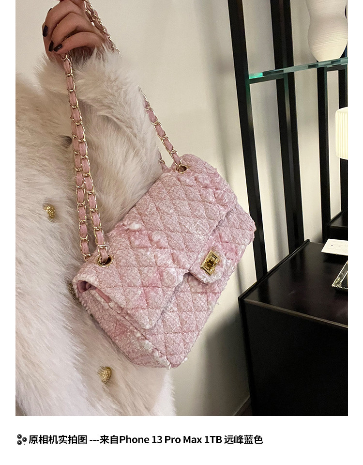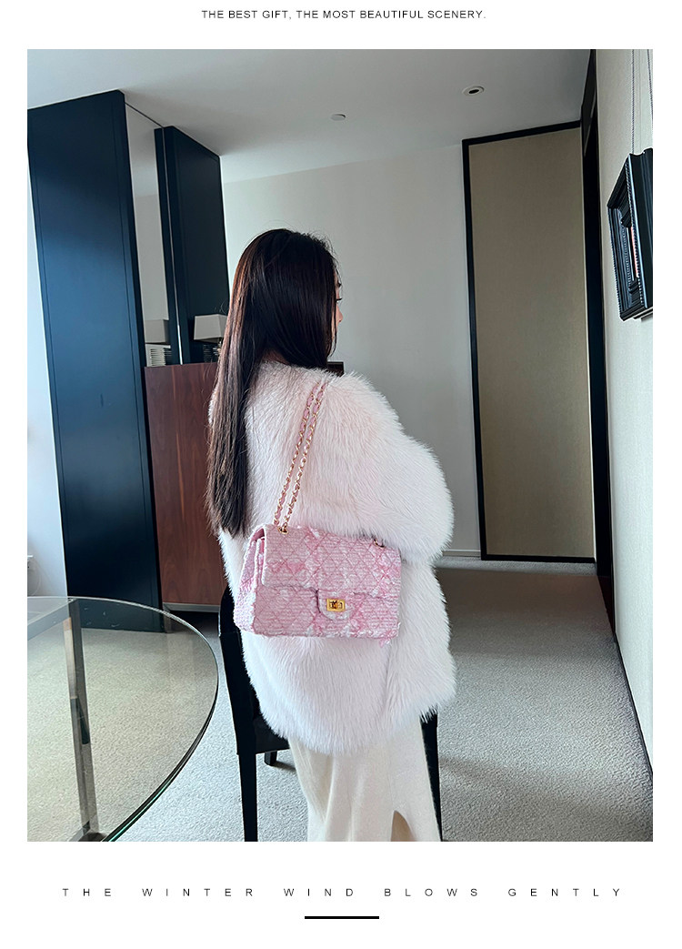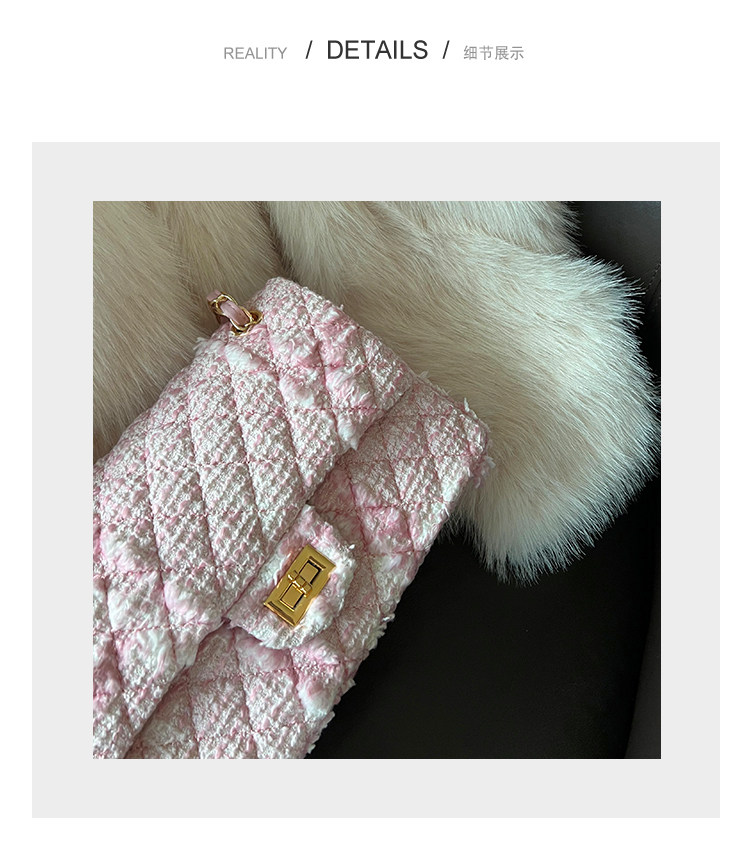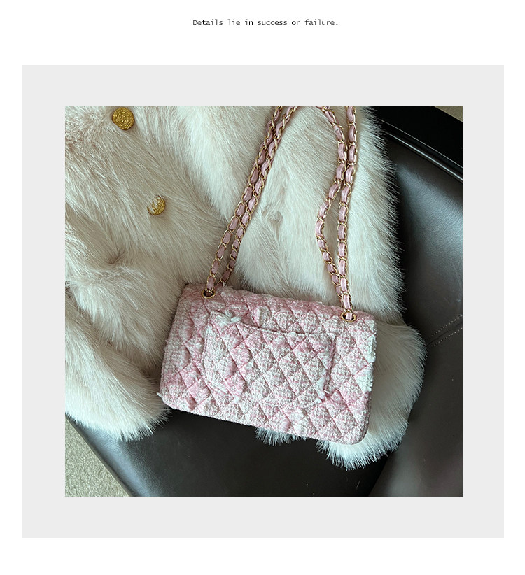 Racechoice Small Square Bag Versatile Fragrance Pink Tweed Chain Bag One Shoulder Armpit Bag Women's Woven Bag