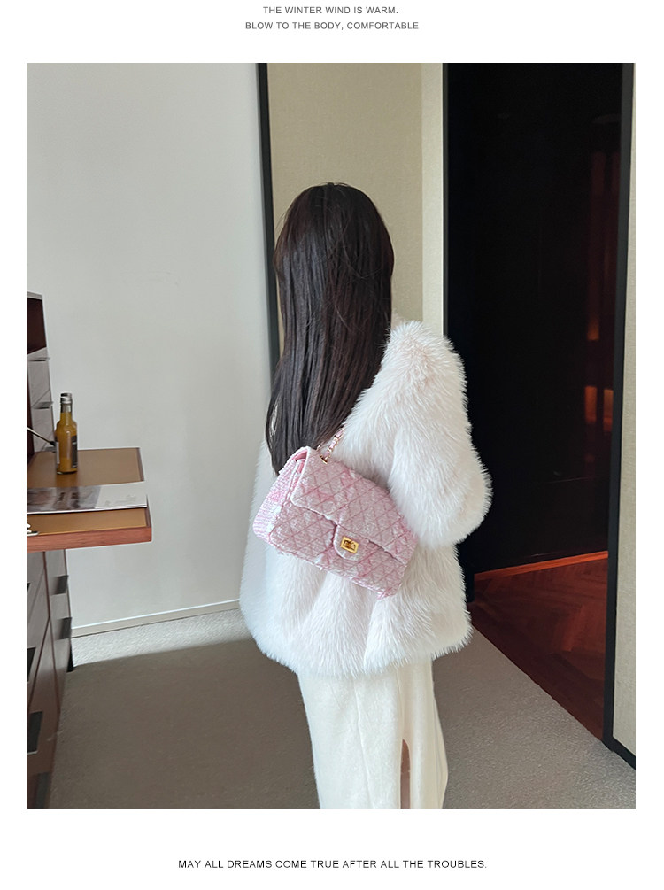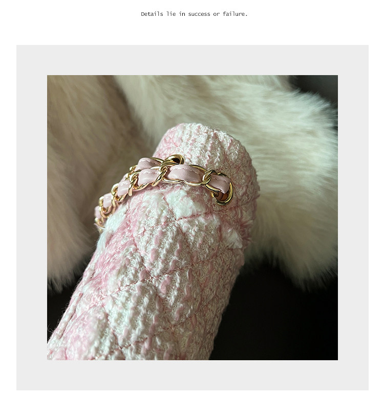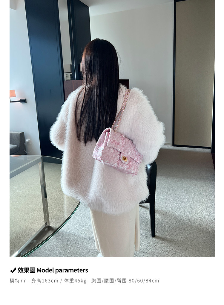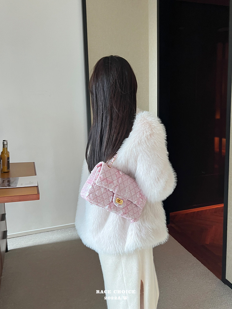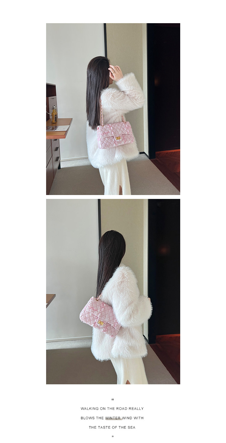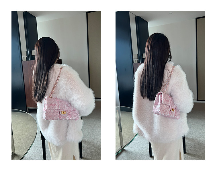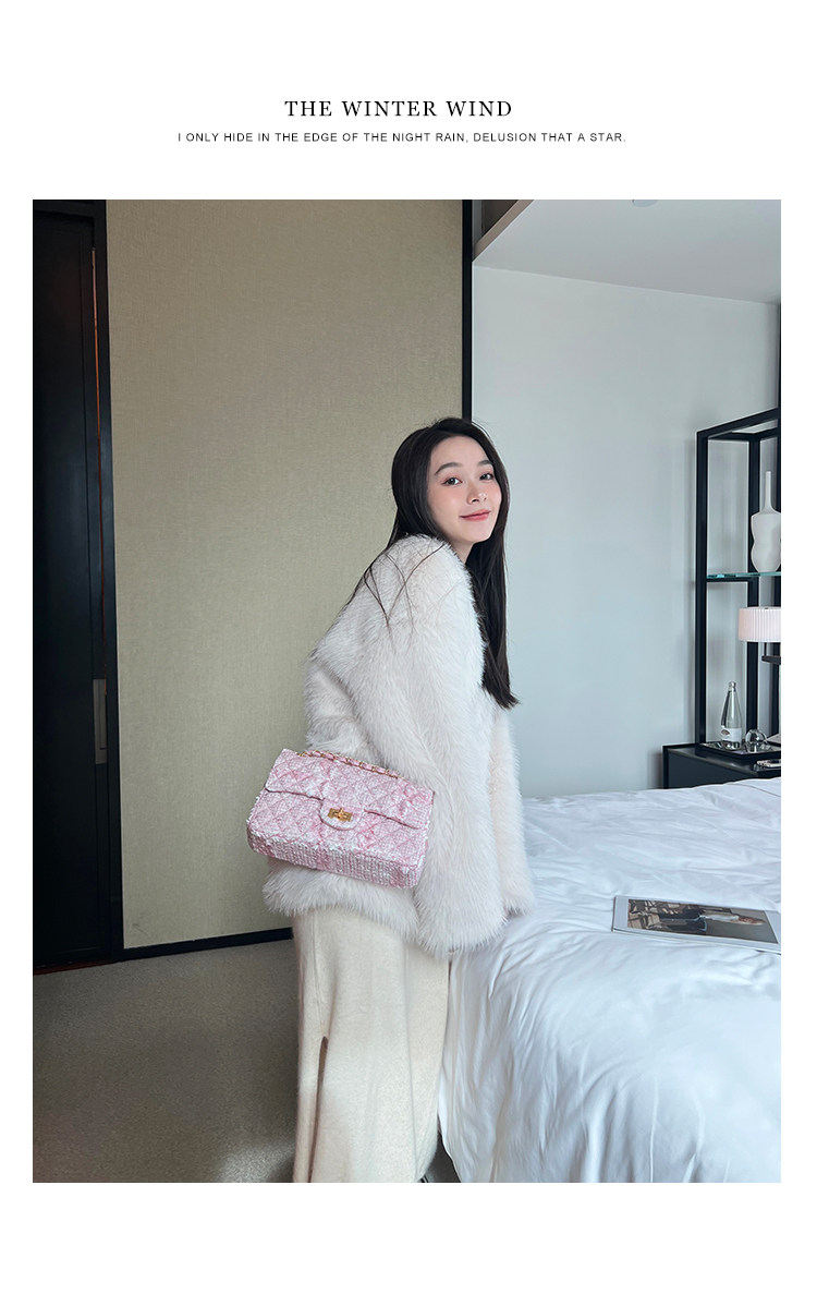 Racechoice Small Square Bag Versatile Fragrance Pink Tweed Chain Bag One Shoulder Armpit Bag Women's Woven Bag