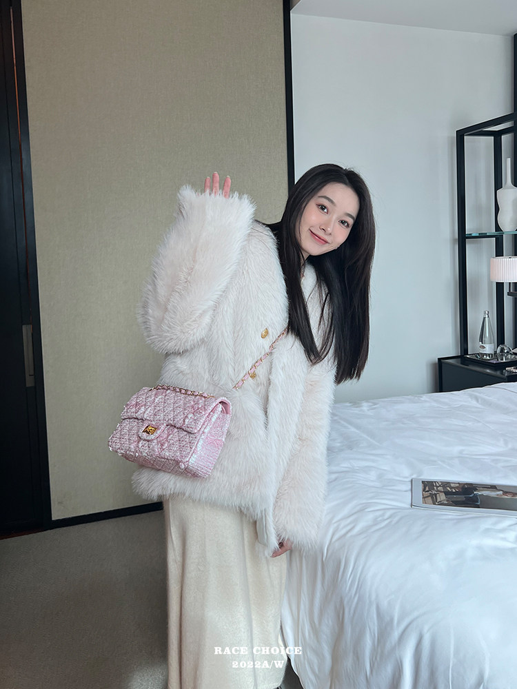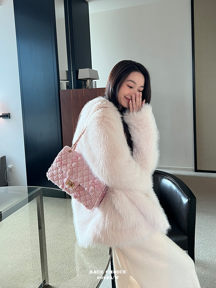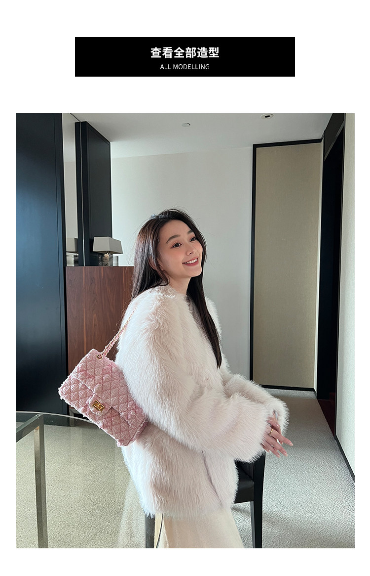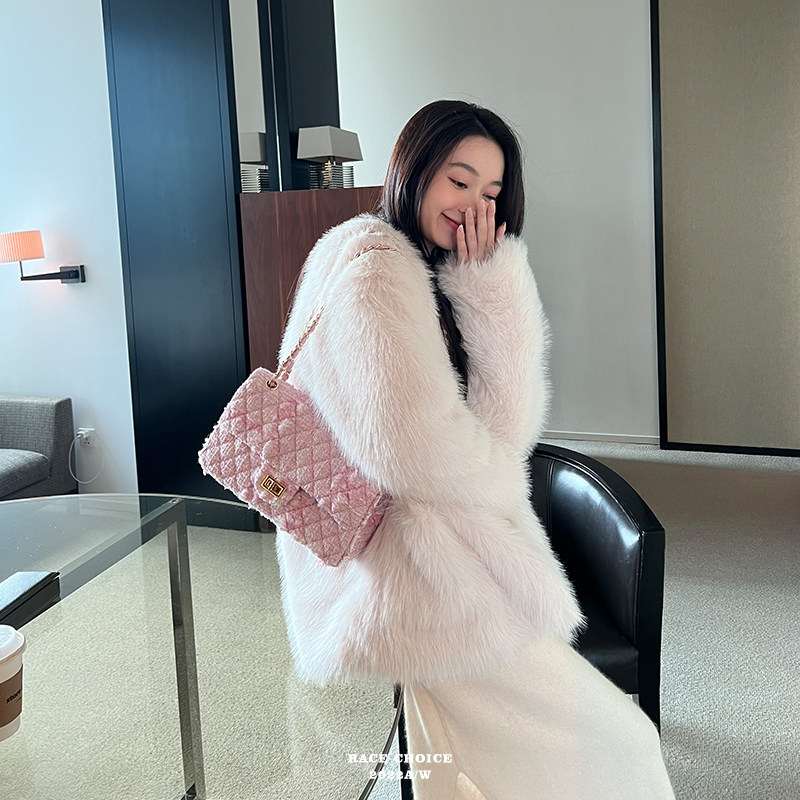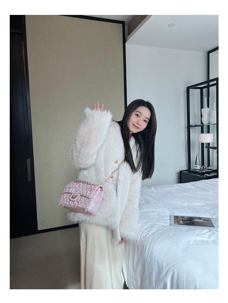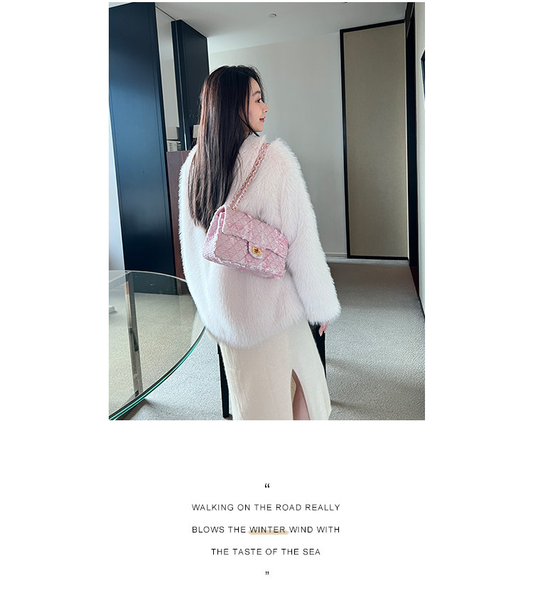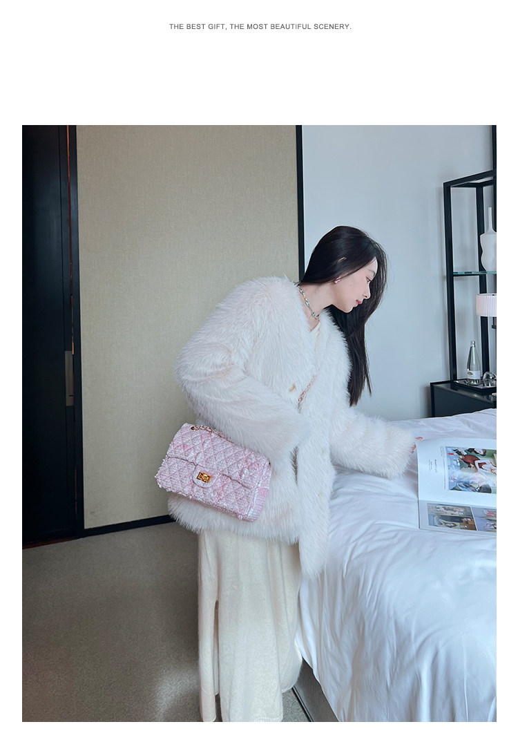 Racechoice Small Square Bag Versatile Fragrance Pink Tweed Chain Bag One Shoulder Armpit Bag Women's Woven Bag