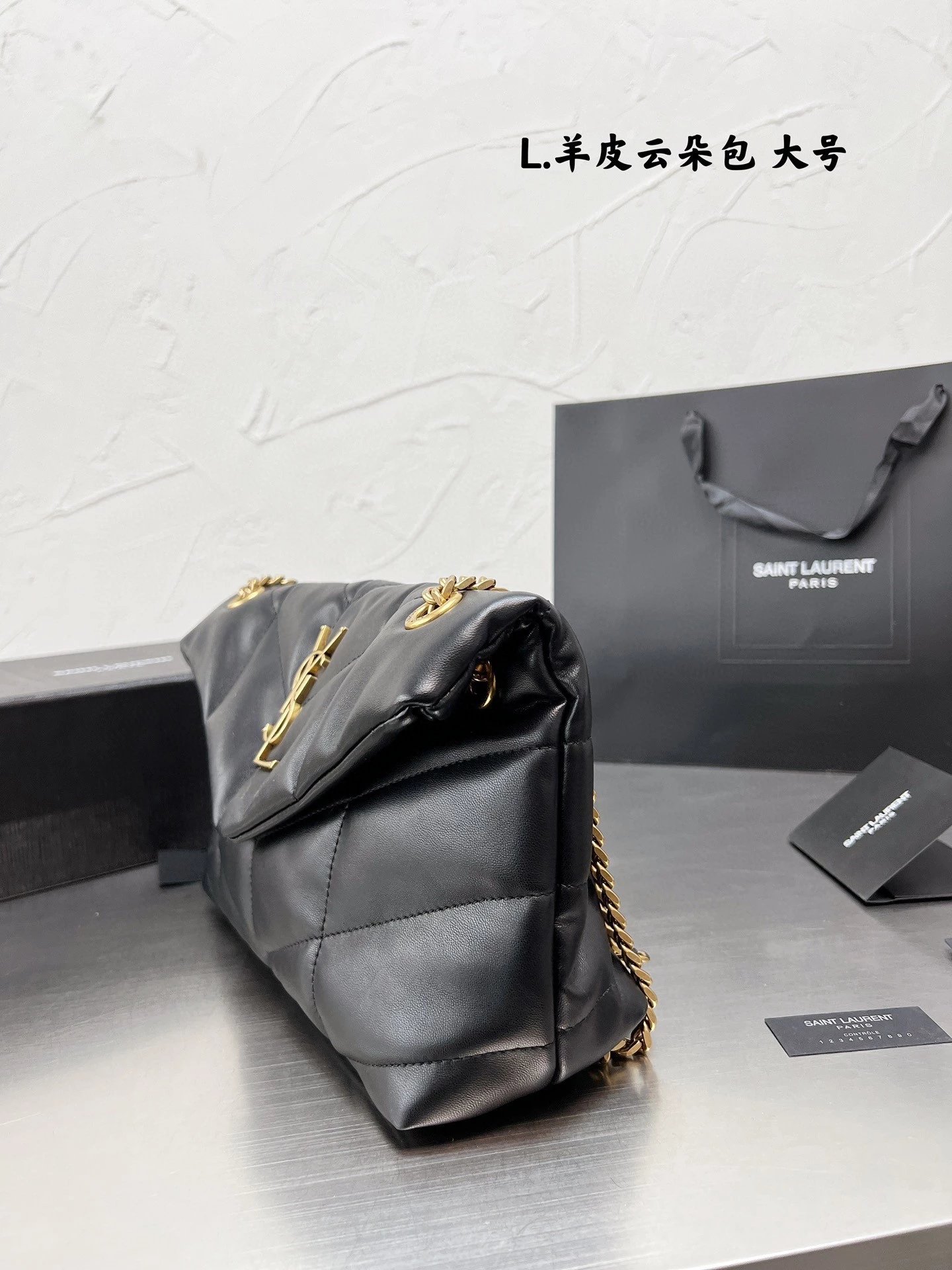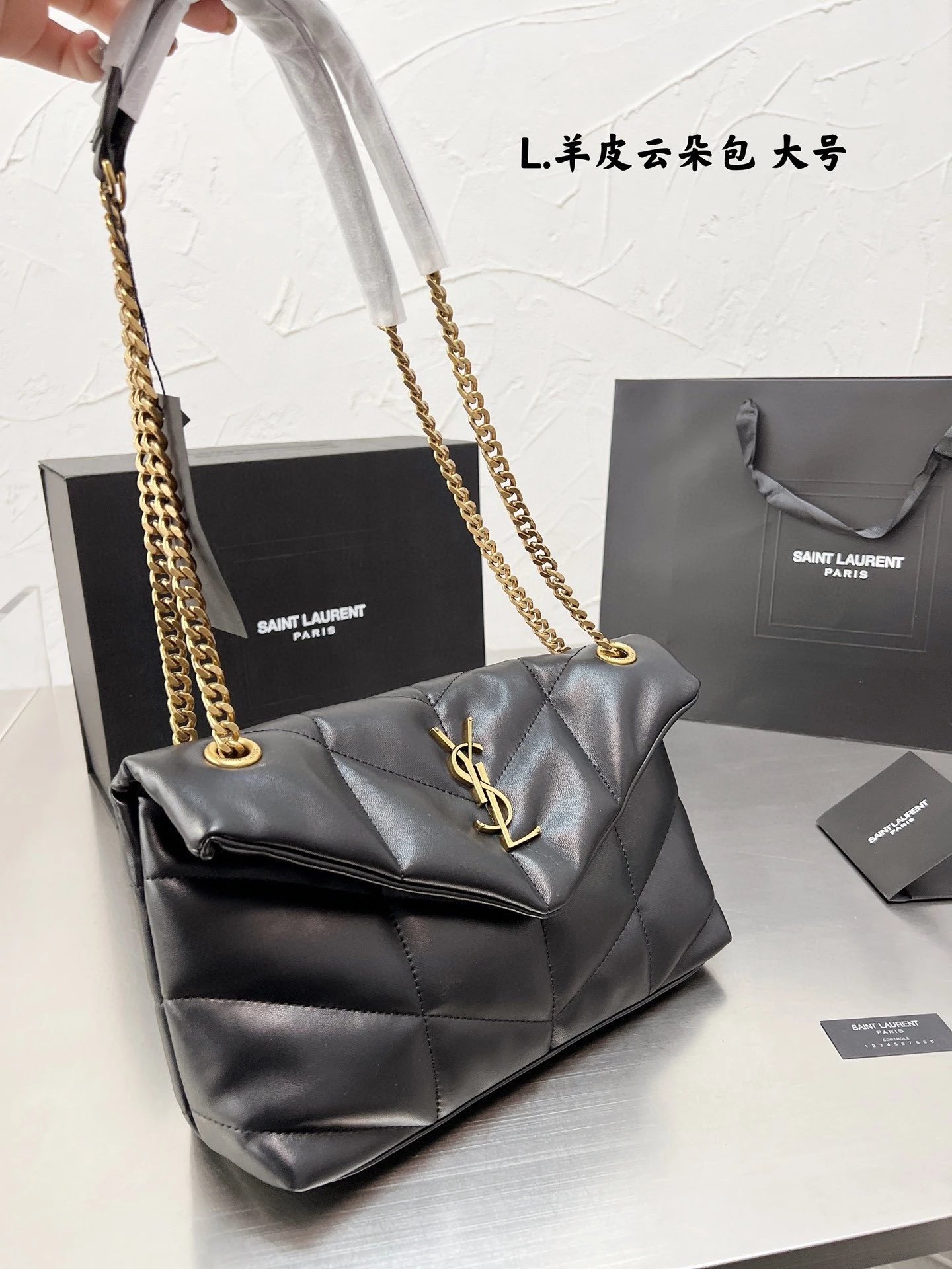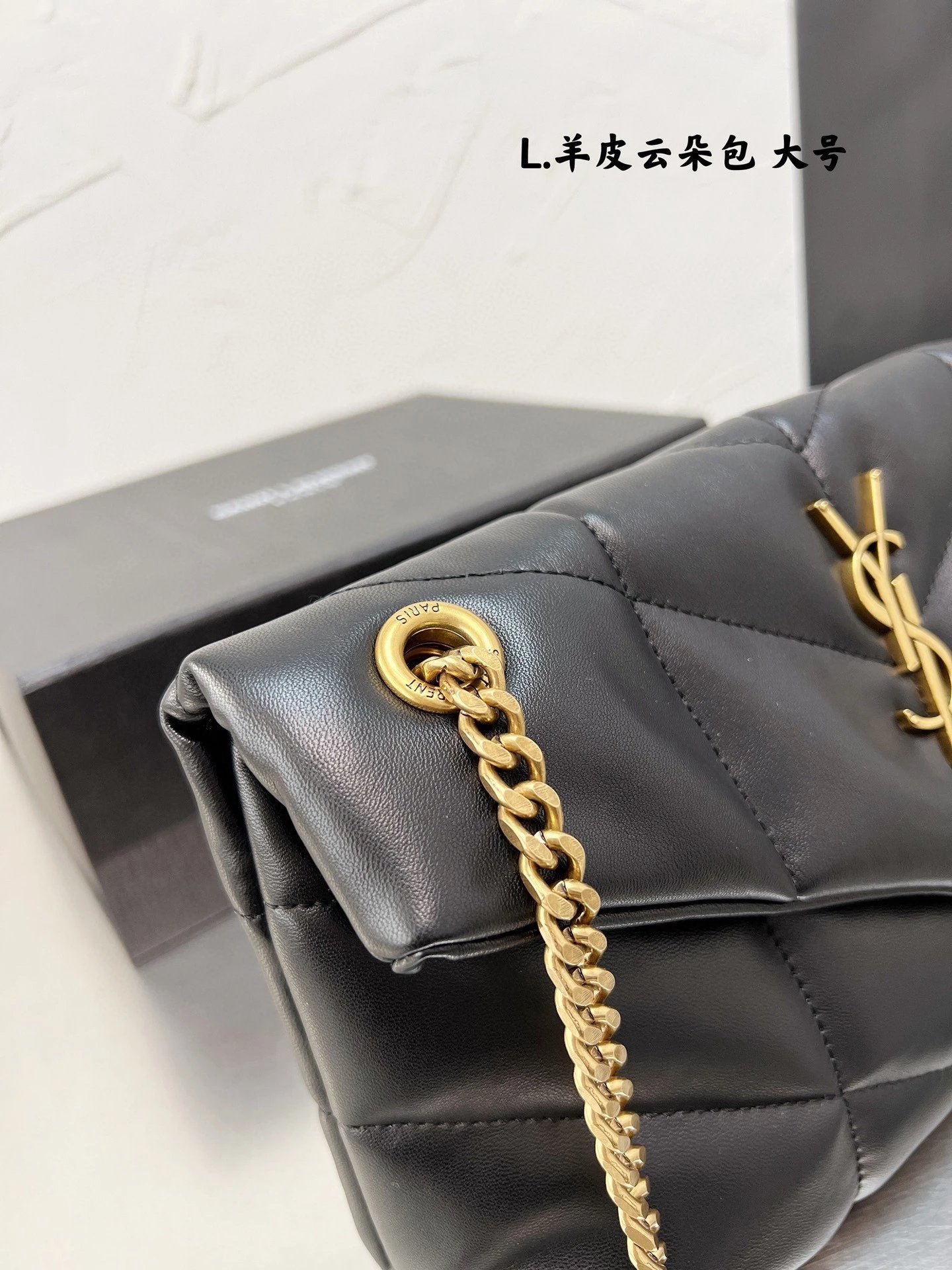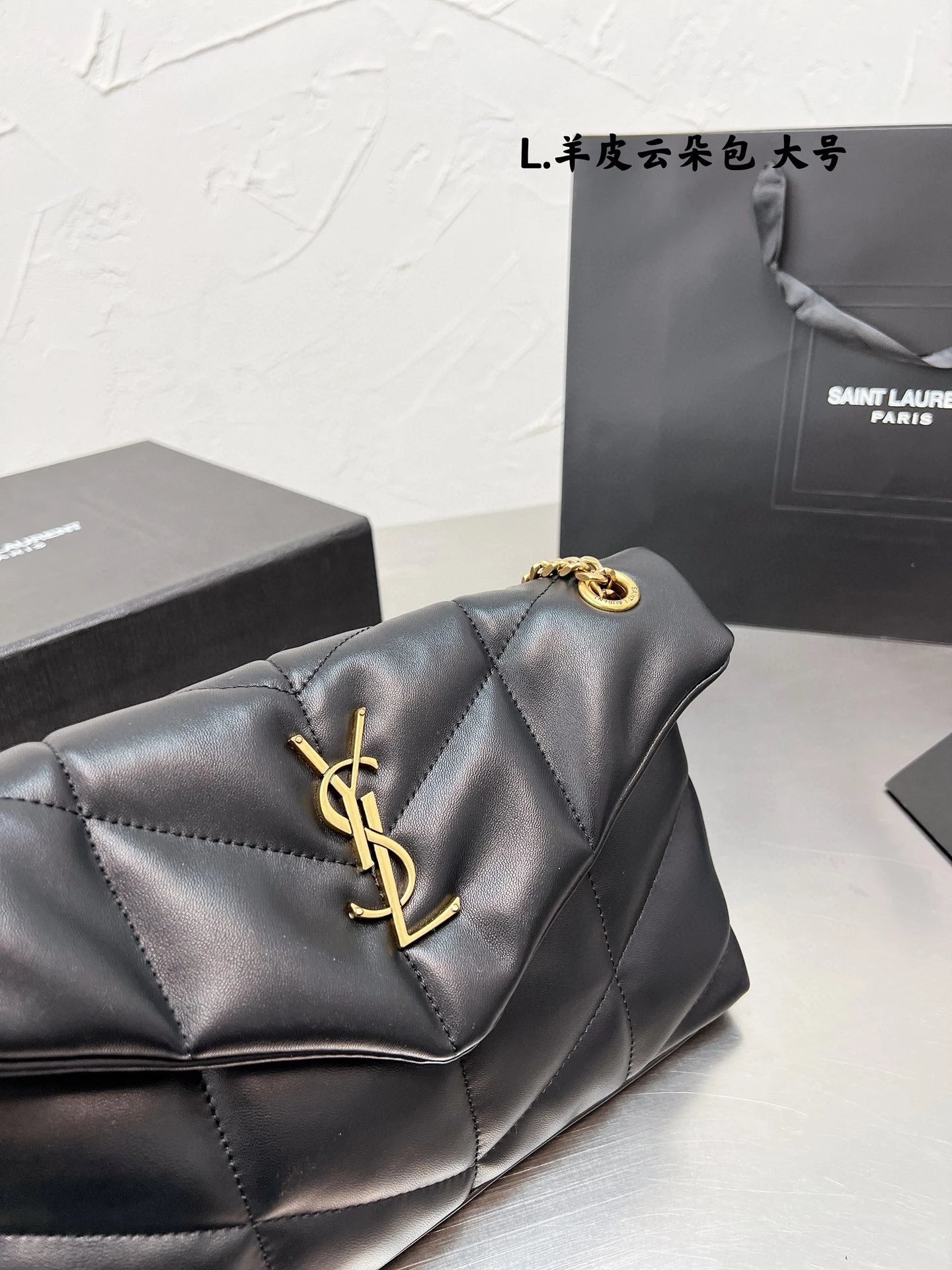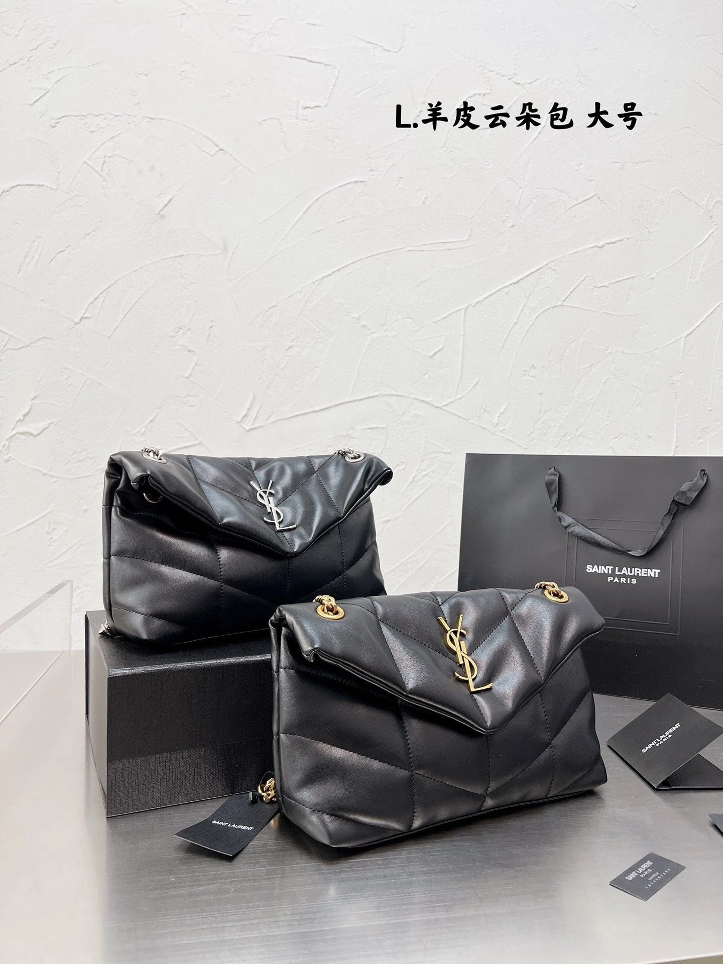 YS*1 lambskin cloud bag Saint Laurent loulou bag clamshell bag Xiaoxiang 19 flat puffer black gold black silver original leather capacity super large crossbody shoulder women's handbag weight light gift box packaging original hardware