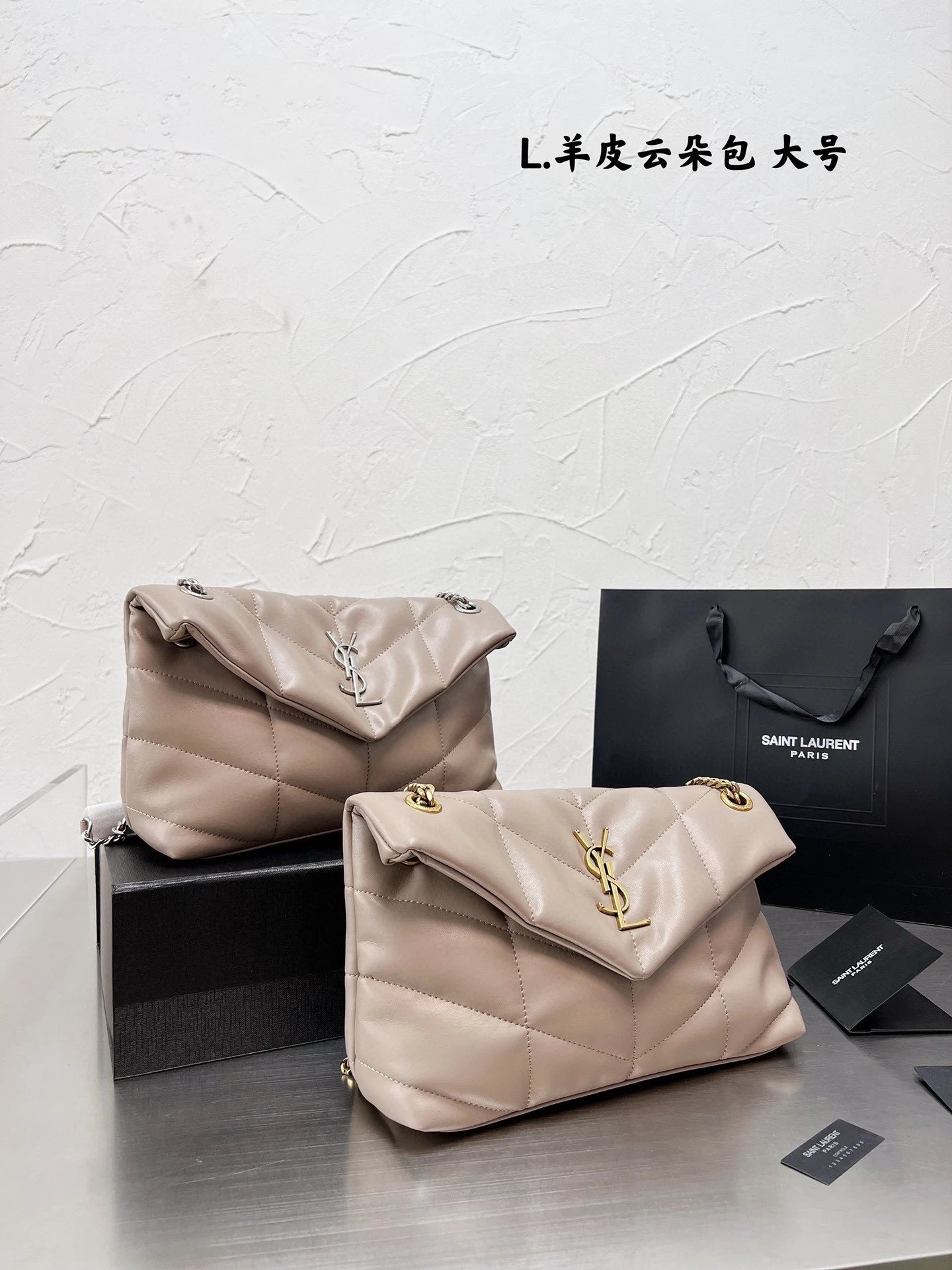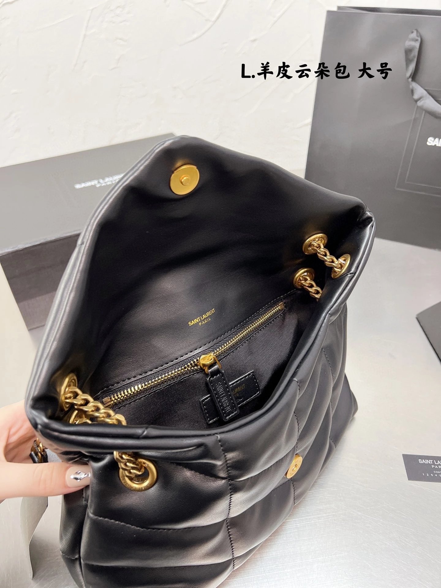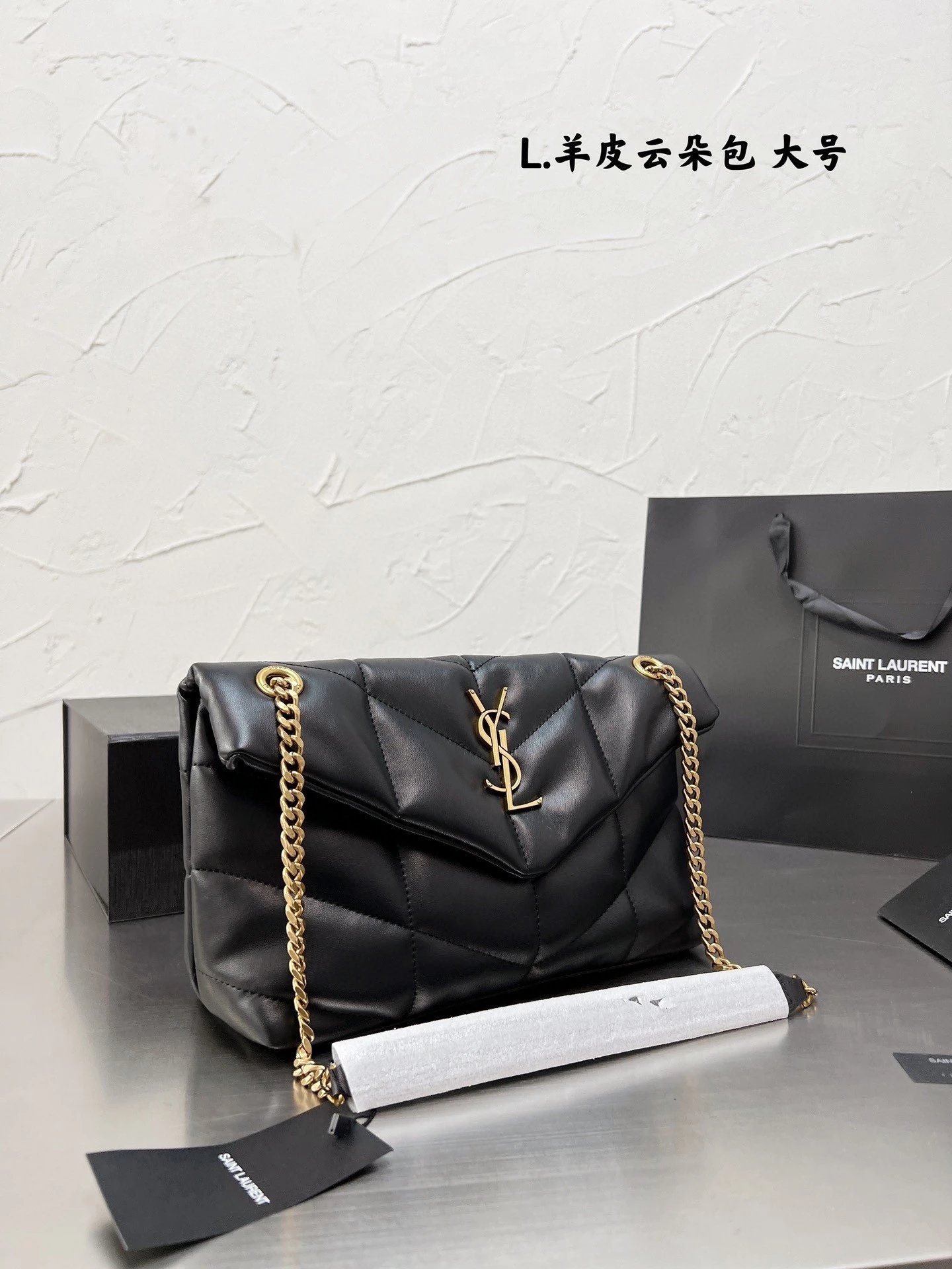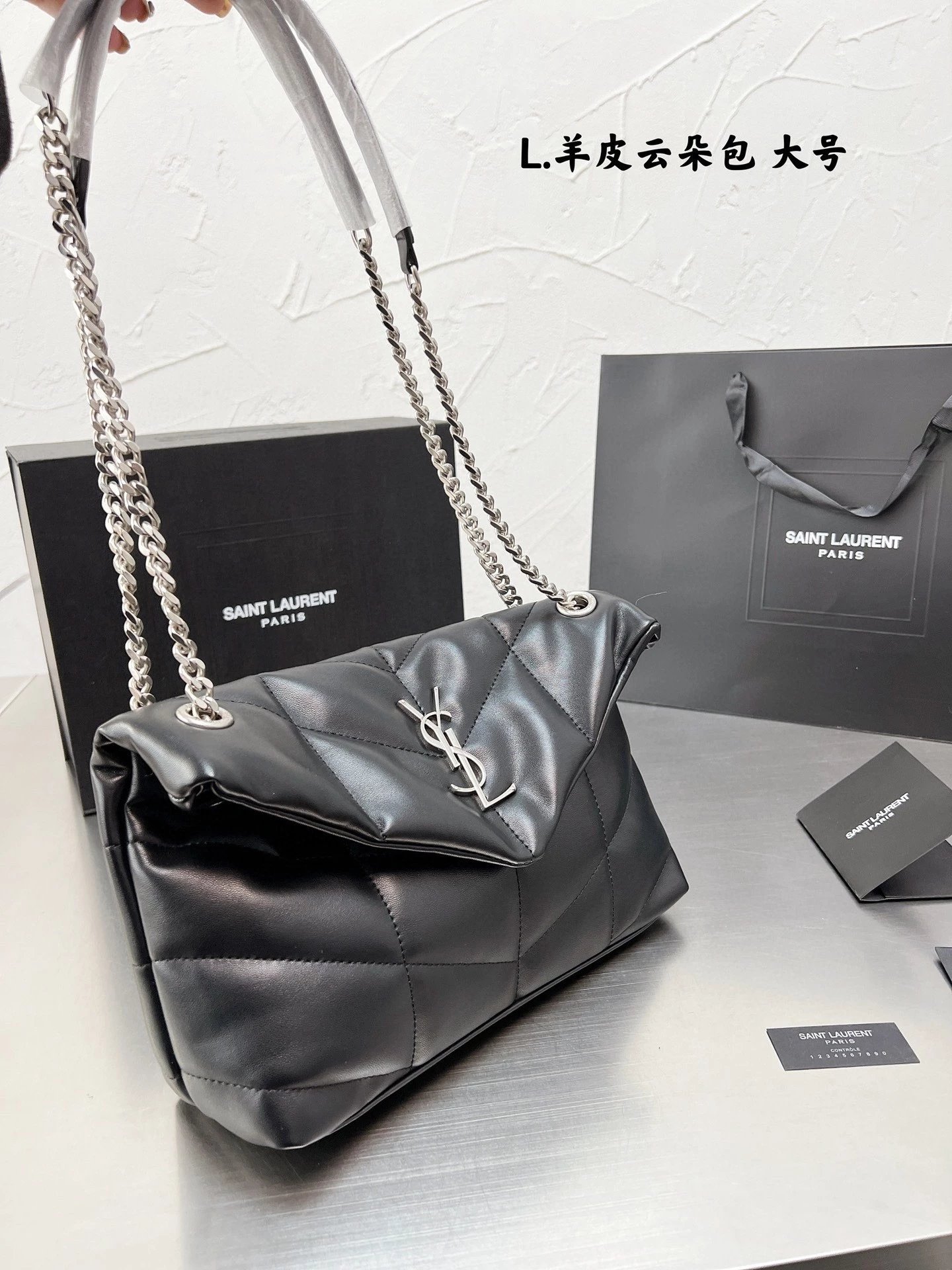 YS*1 lambskin cloud bag Saint Laurent loulou bag clamshell bag Xiaoxiang 19 flat puffer black gold black silver original leather capacity super large crossbody shoulder women's handbag weight light gift box packaging original hardware