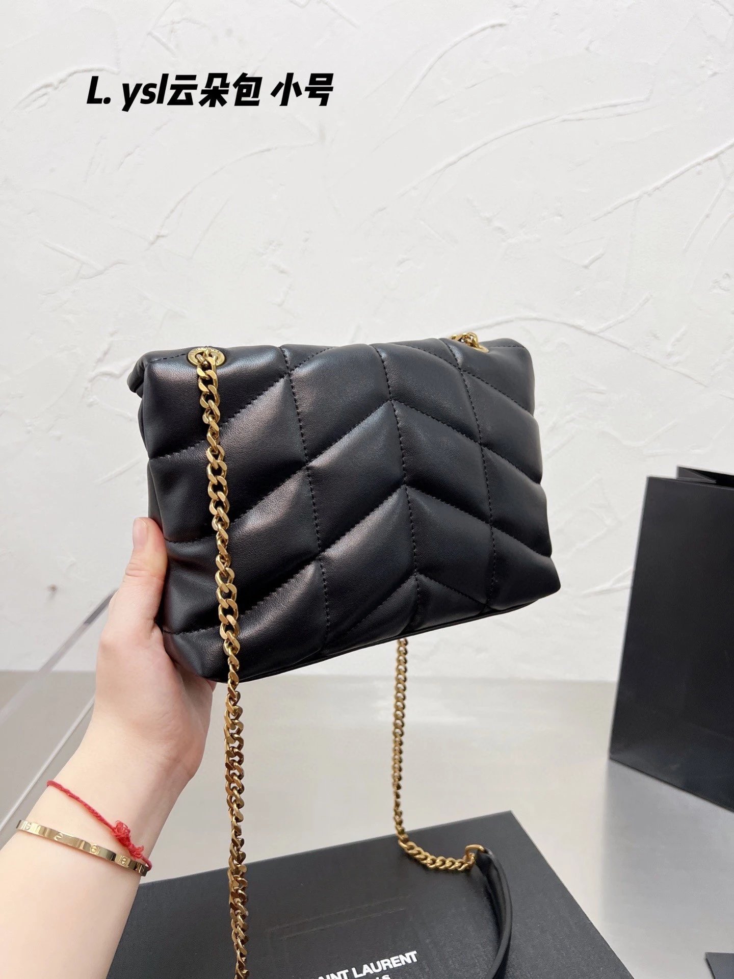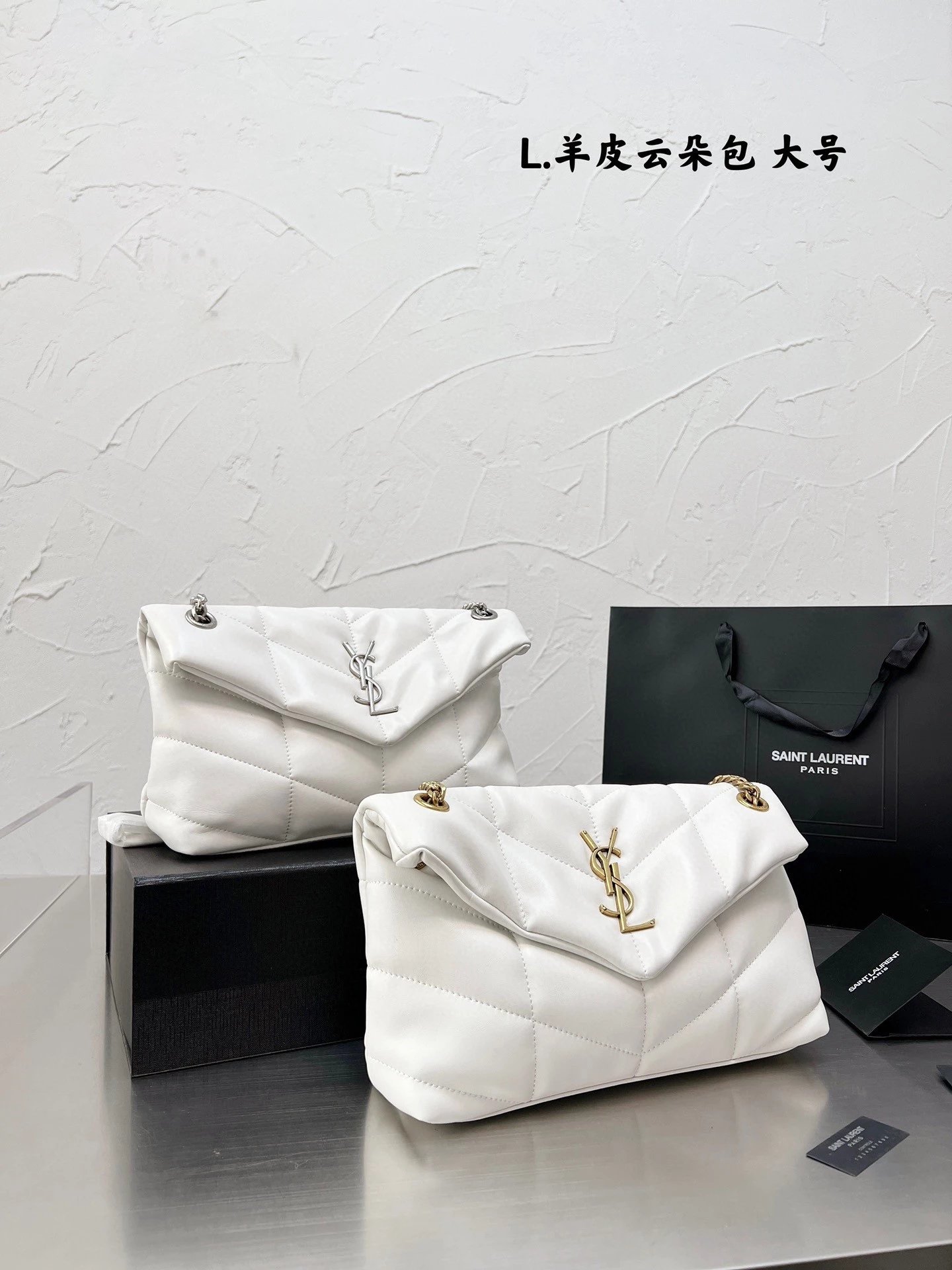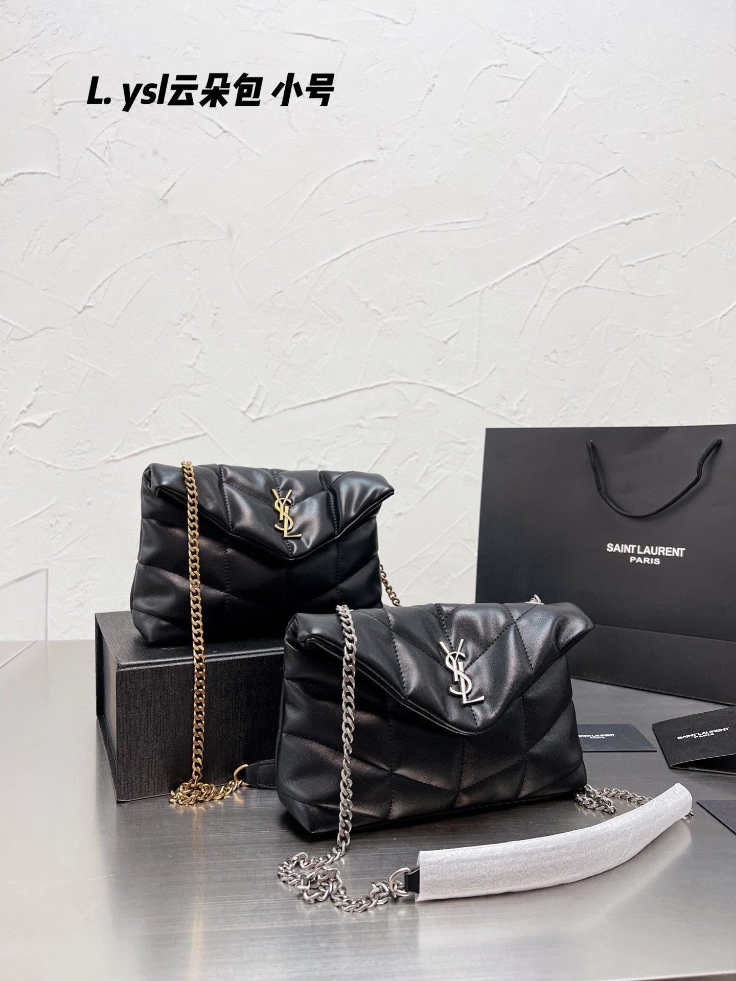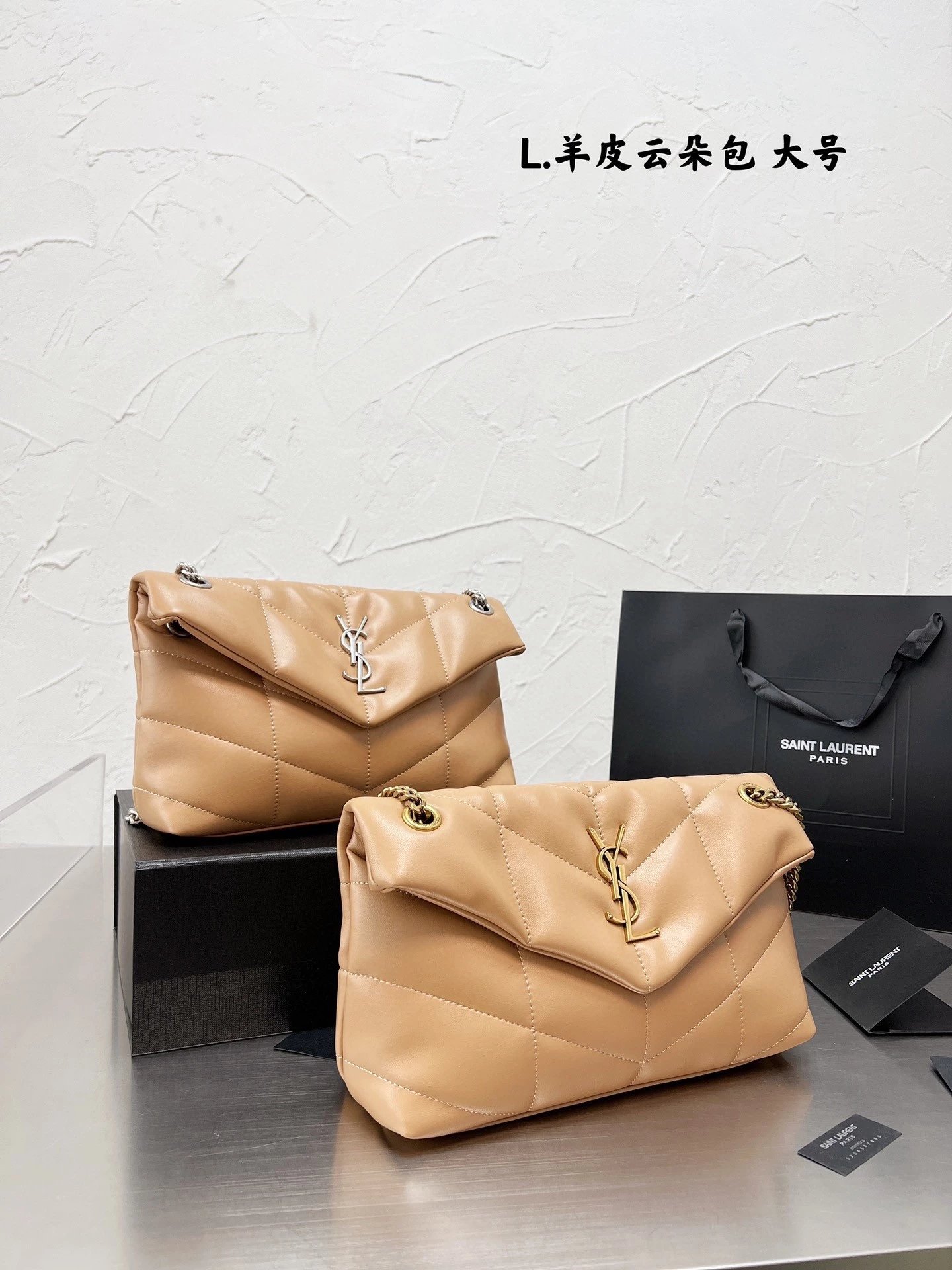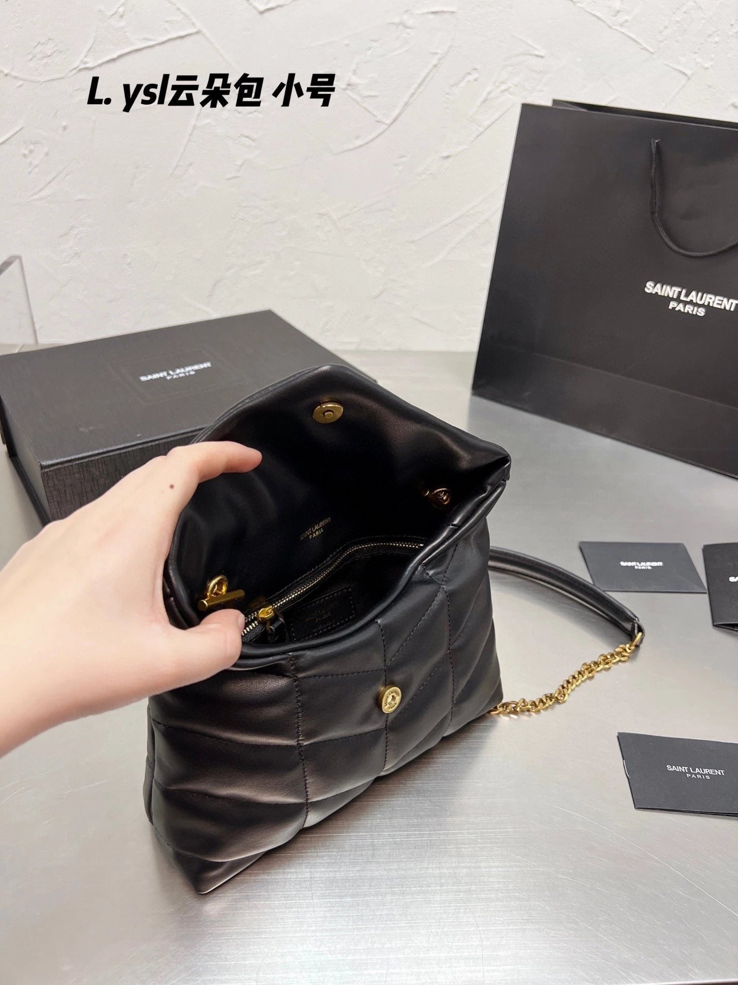 YS*1 lambskin cloud bag Saint Laurent loulou bag clamshell bag Xiaoxiang 19 flat puffer black gold black silver original leather capacity super large crossbody shoulder women's handbag weight light gift box packaging original hardware