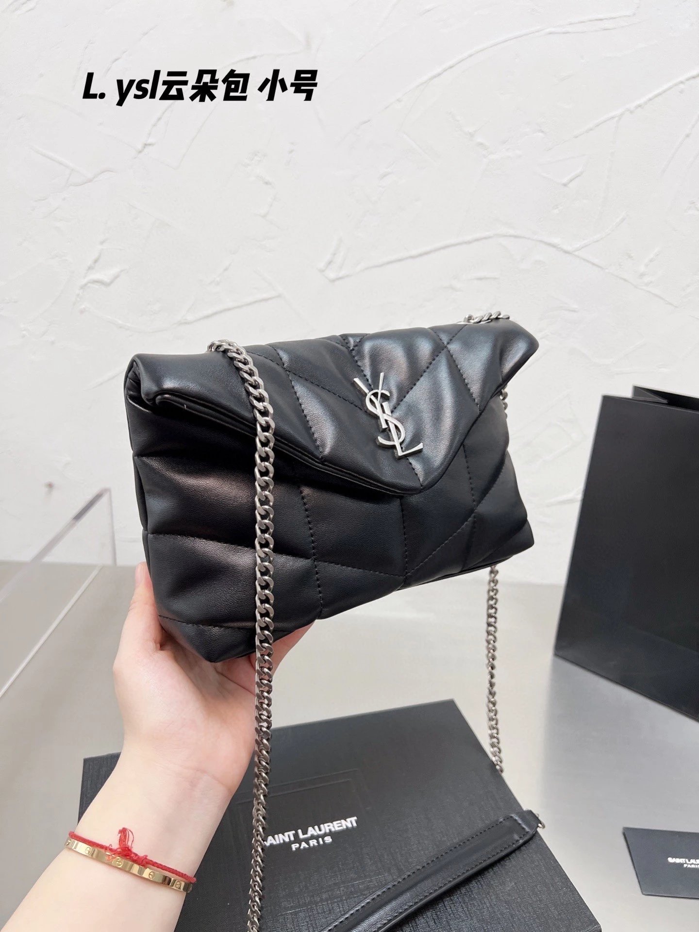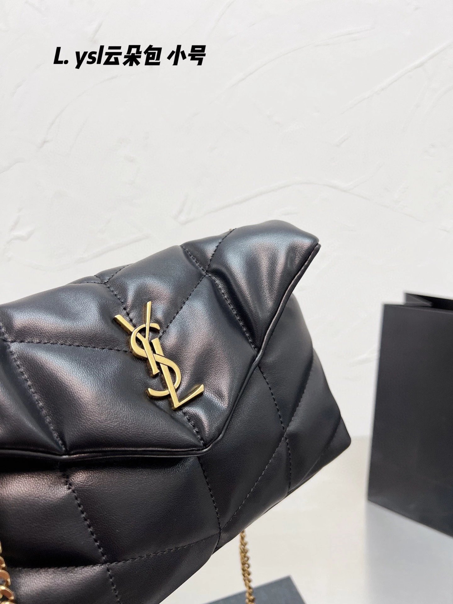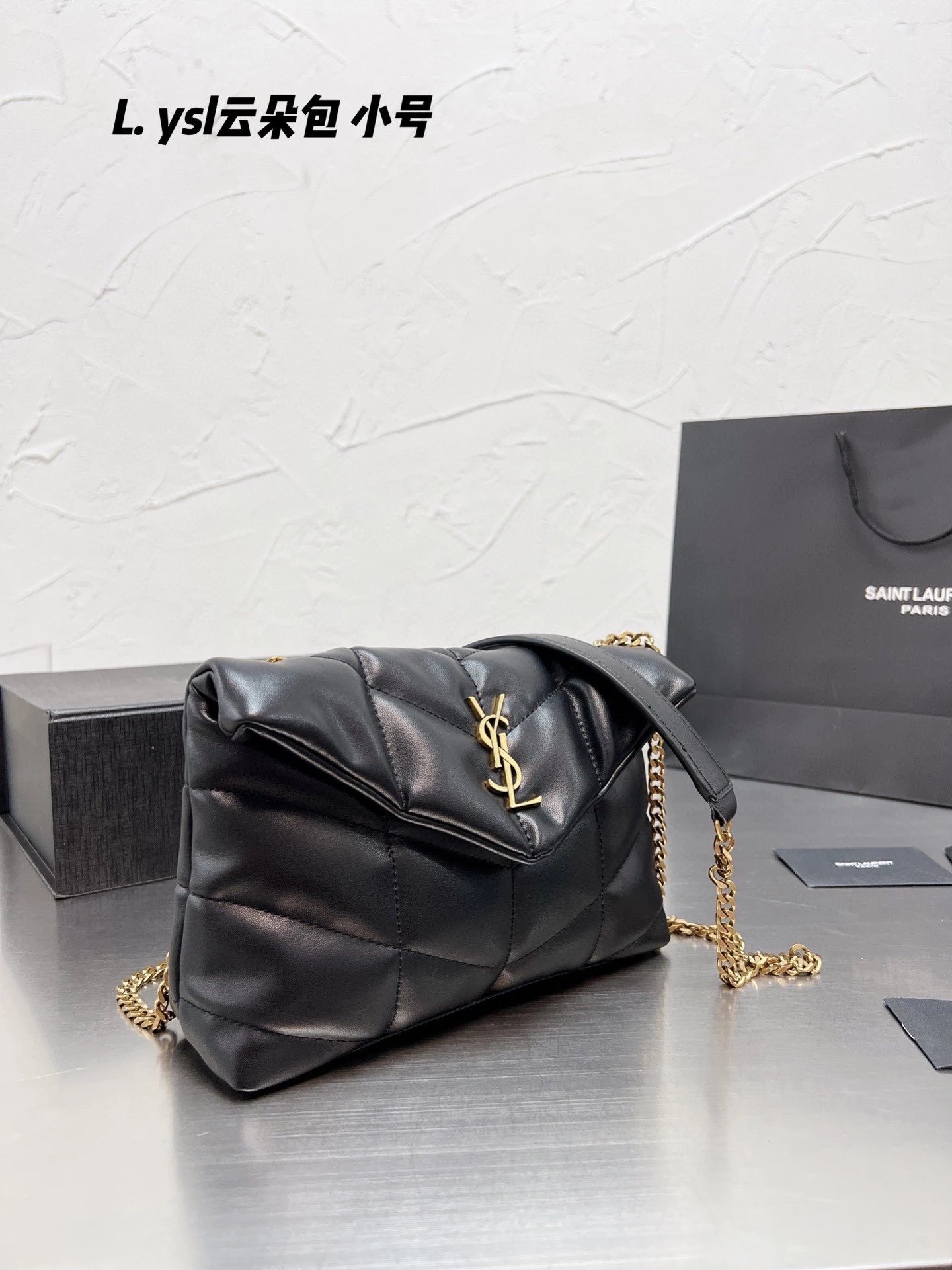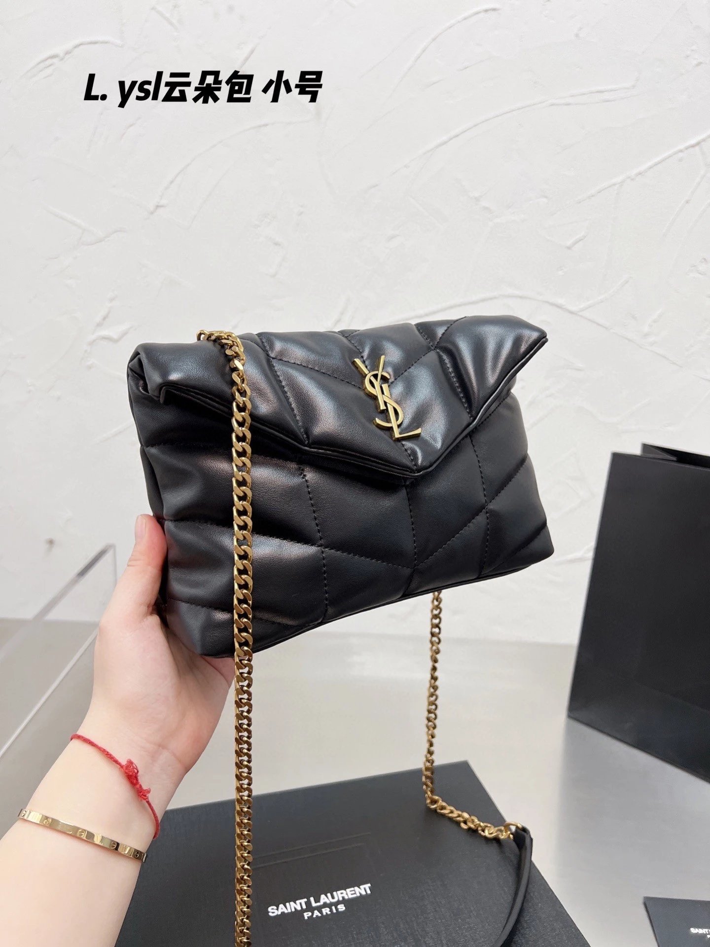 YS*1 lambskin cloud bag Saint Laurent loulou bag clamshell bag Xiaoxiang 19 flat puffer black gold black silver original leather capacity super large crossbody shoulder women's handbag weight light gift box packaging original hardware