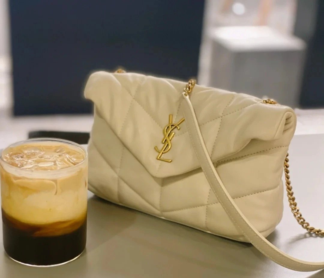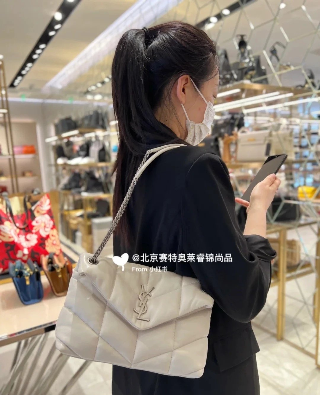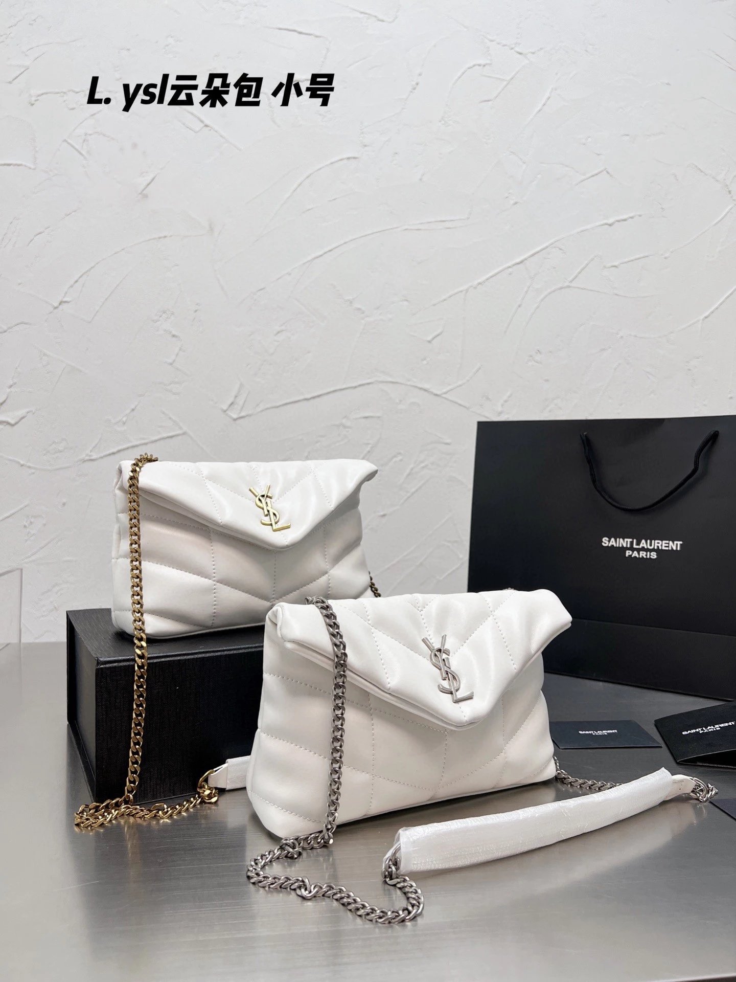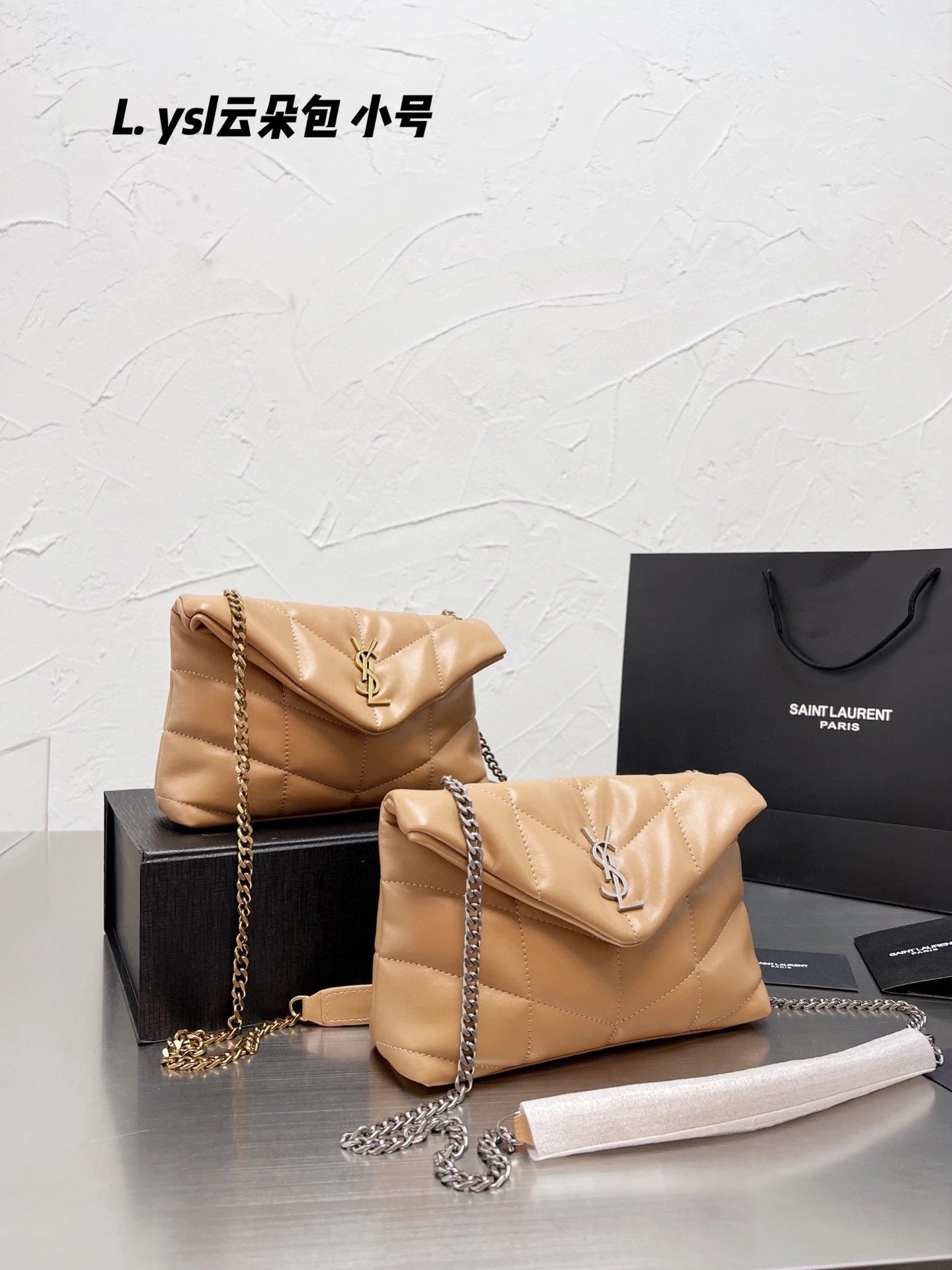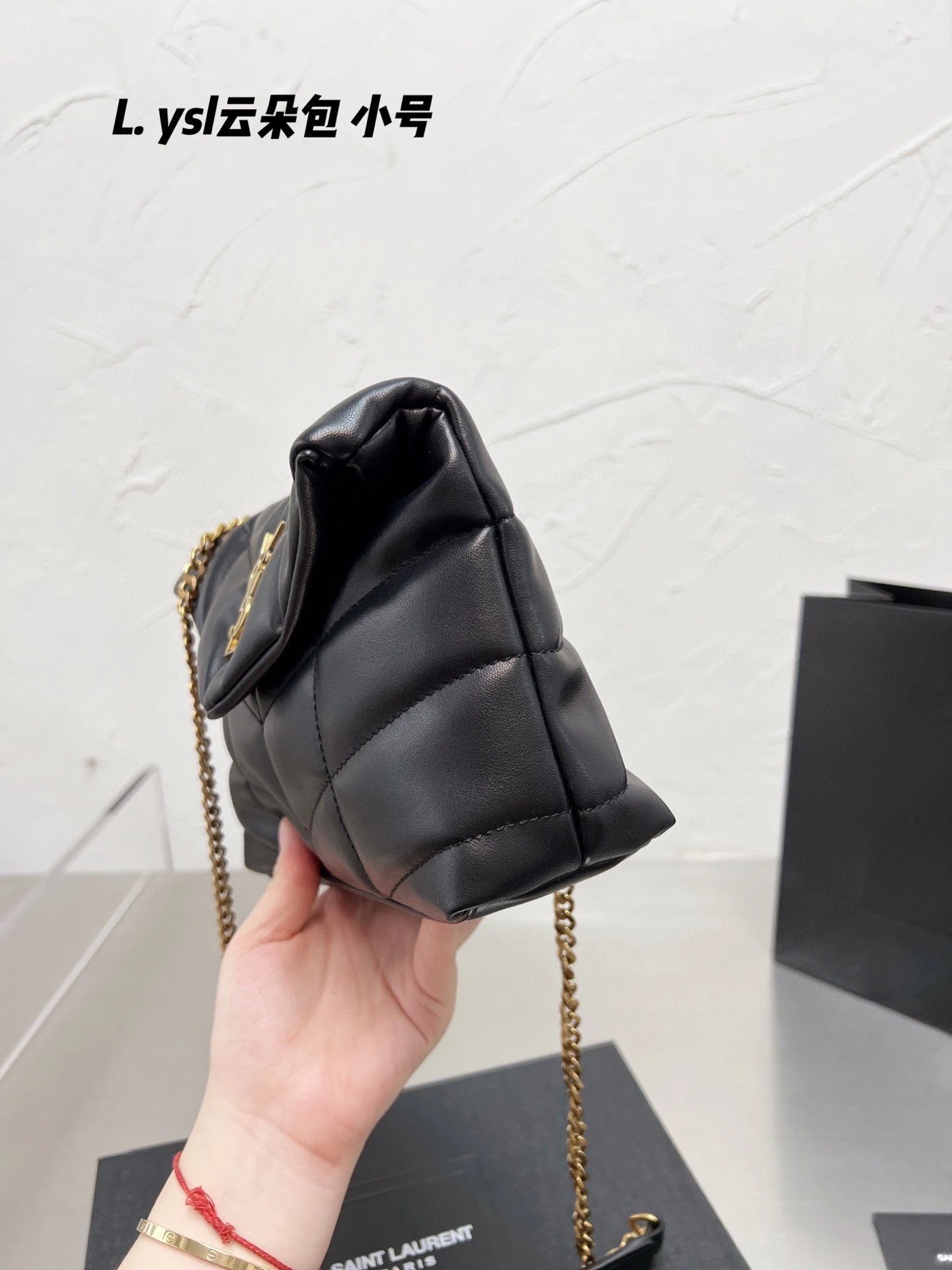 YS*1 lambskin cloud bag Saint Laurent loulou bag clamshell bag Xiaoxiang 19 flat puffer black gold black silver original leather capacity super large crossbody shoulder women's handbag weight light gift box packaging original hardware